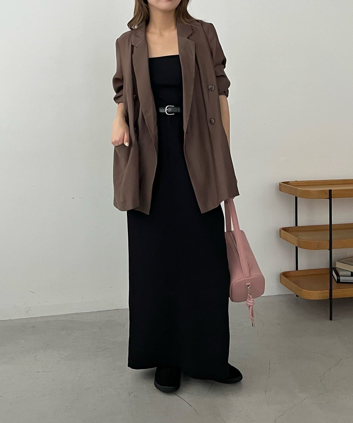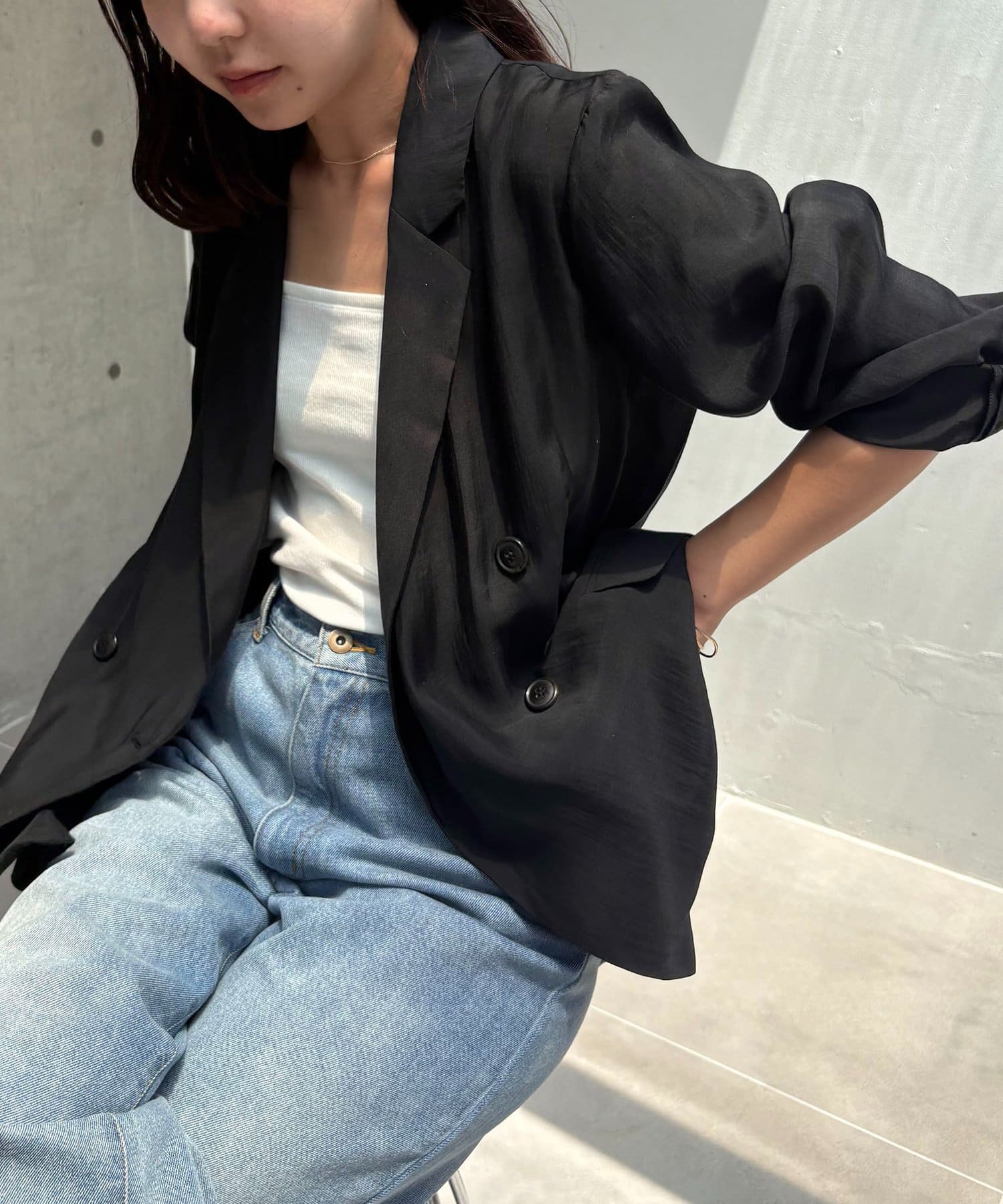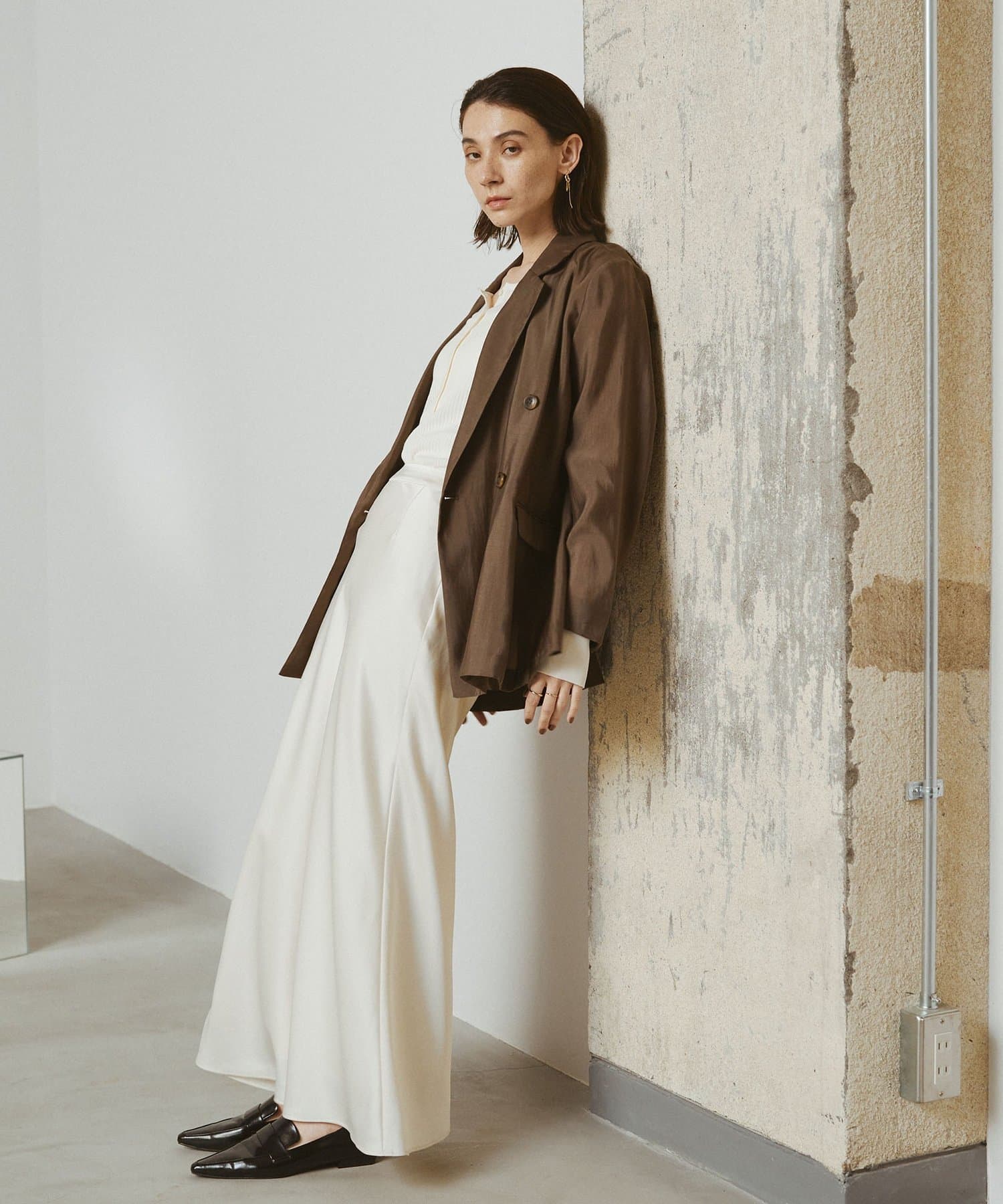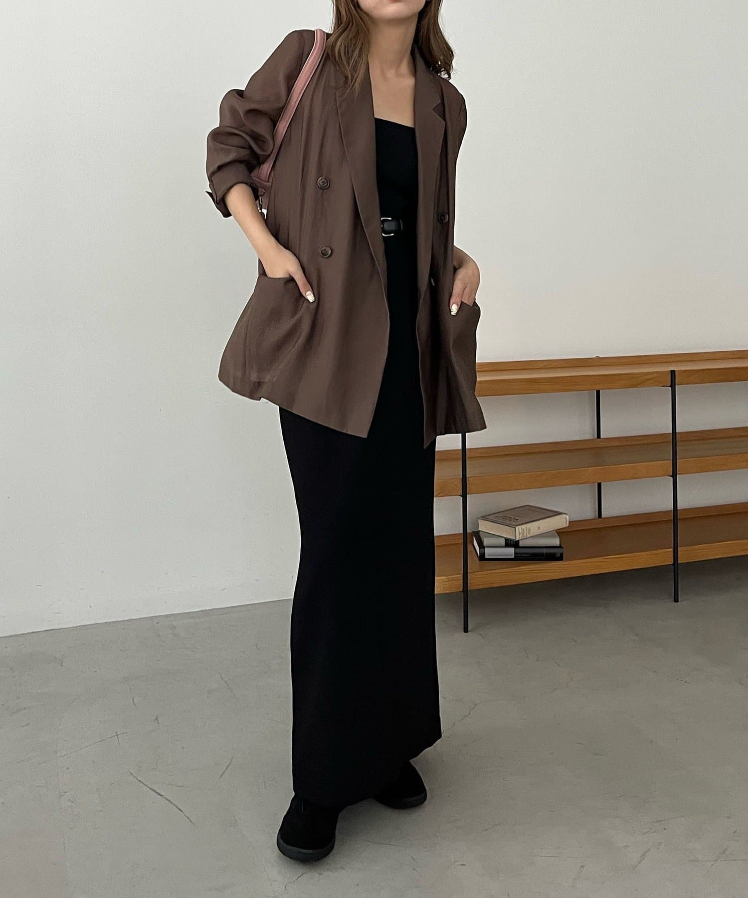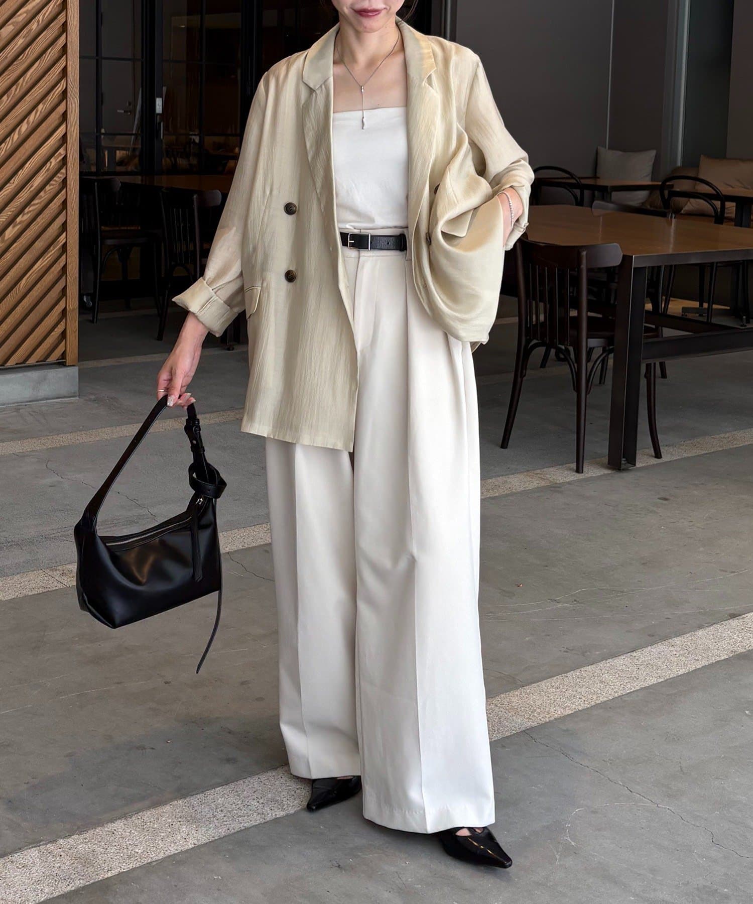 ・ダブルボタンでゆとりがありこなれた雰囲気に仕上がる1枚