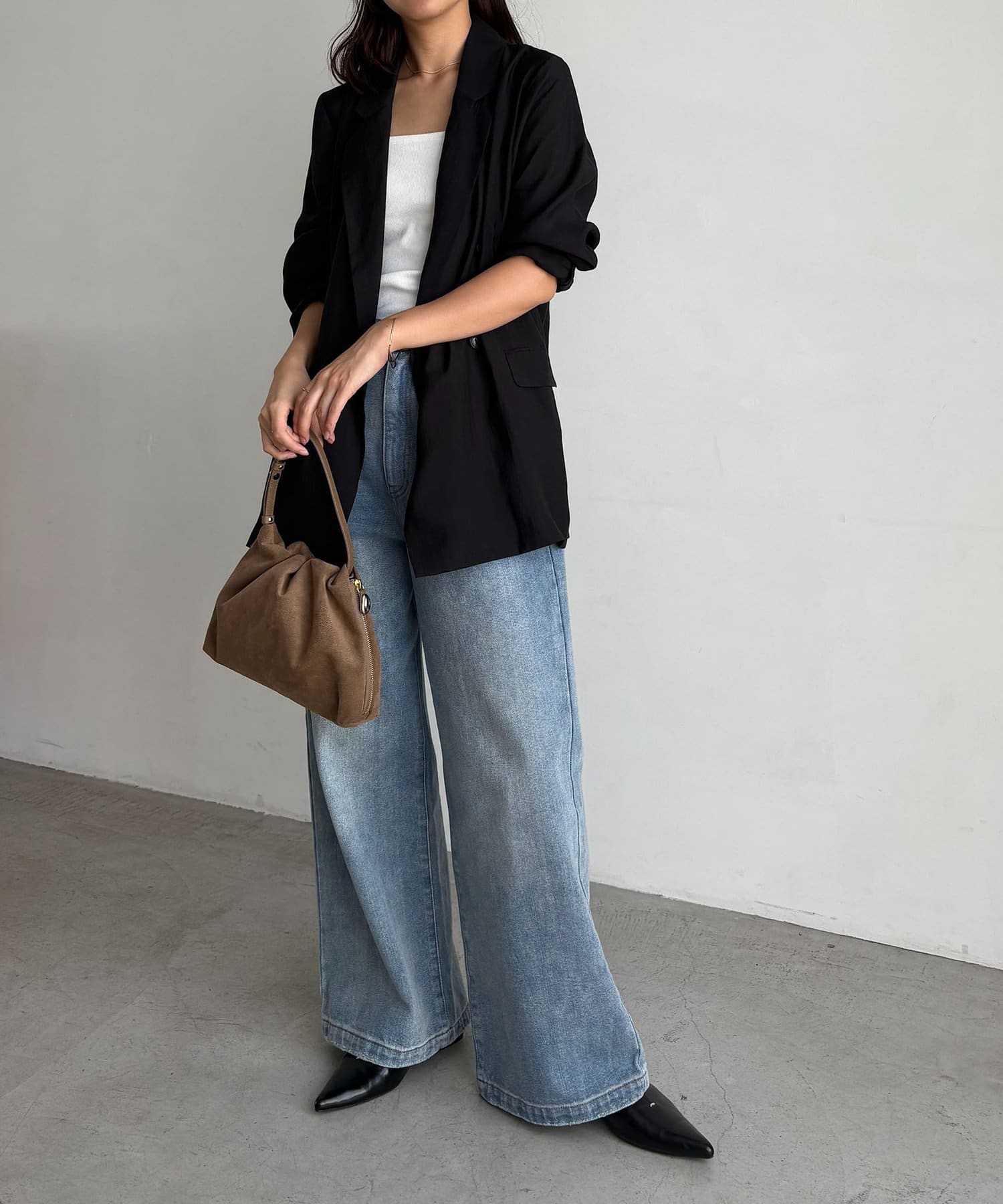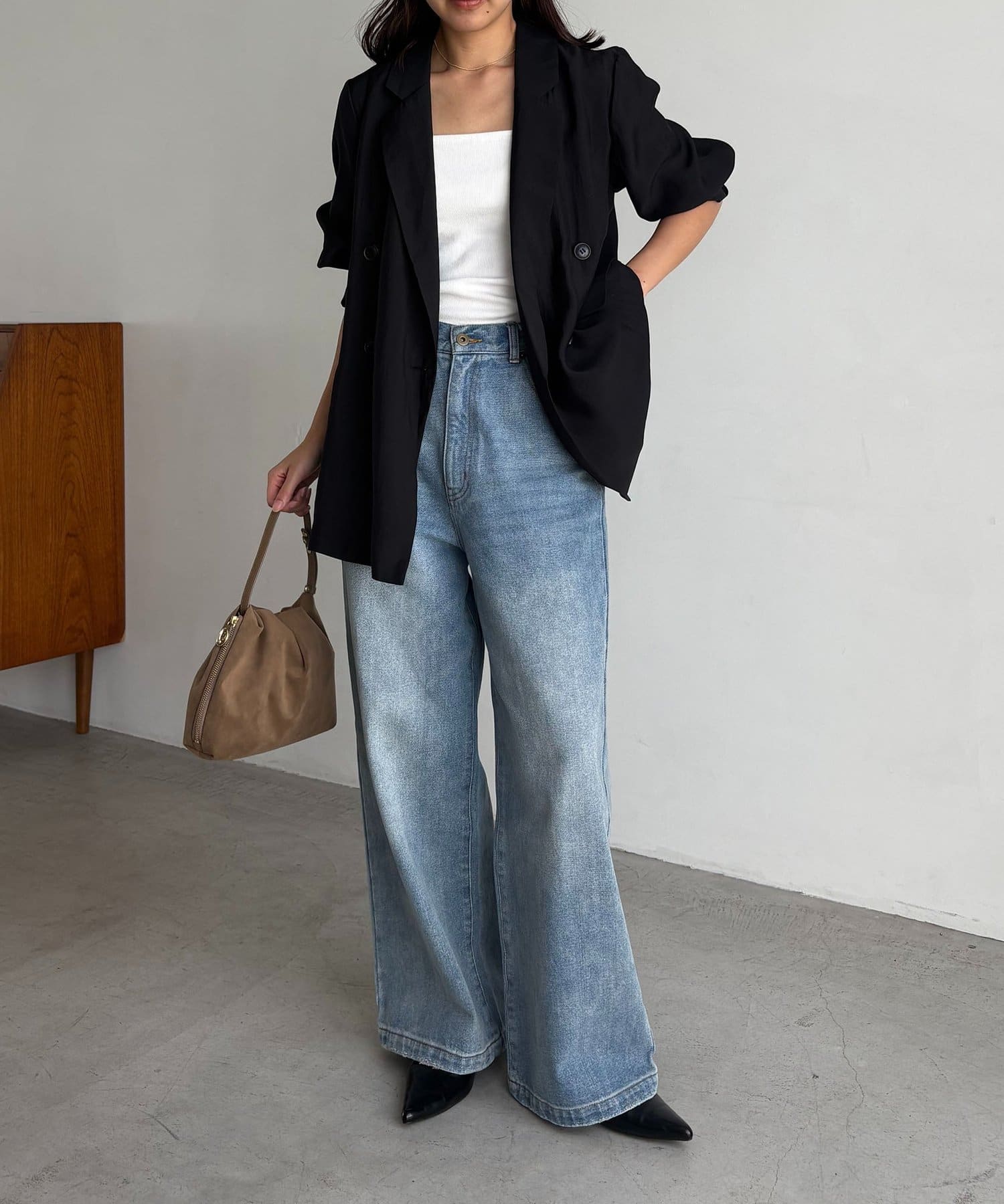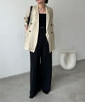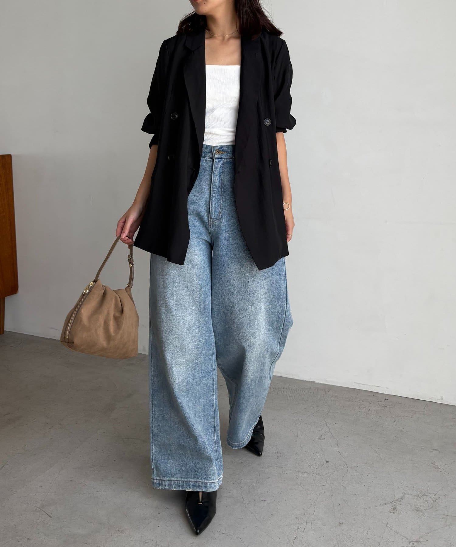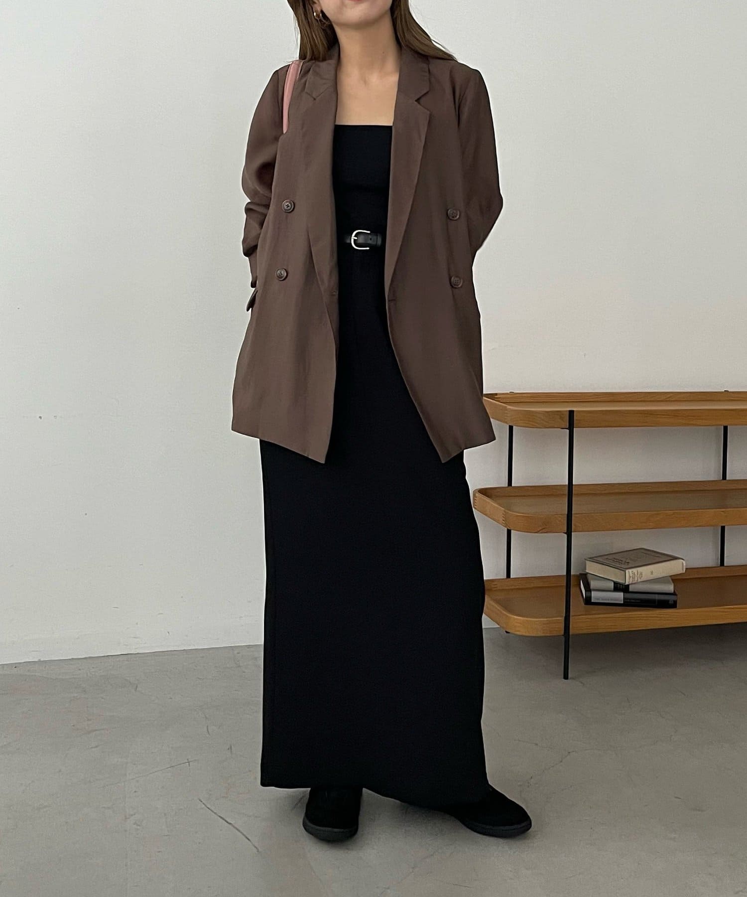 ・ダブルボタンでゆとりがありこなれた雰囲気に仕上がる1枚