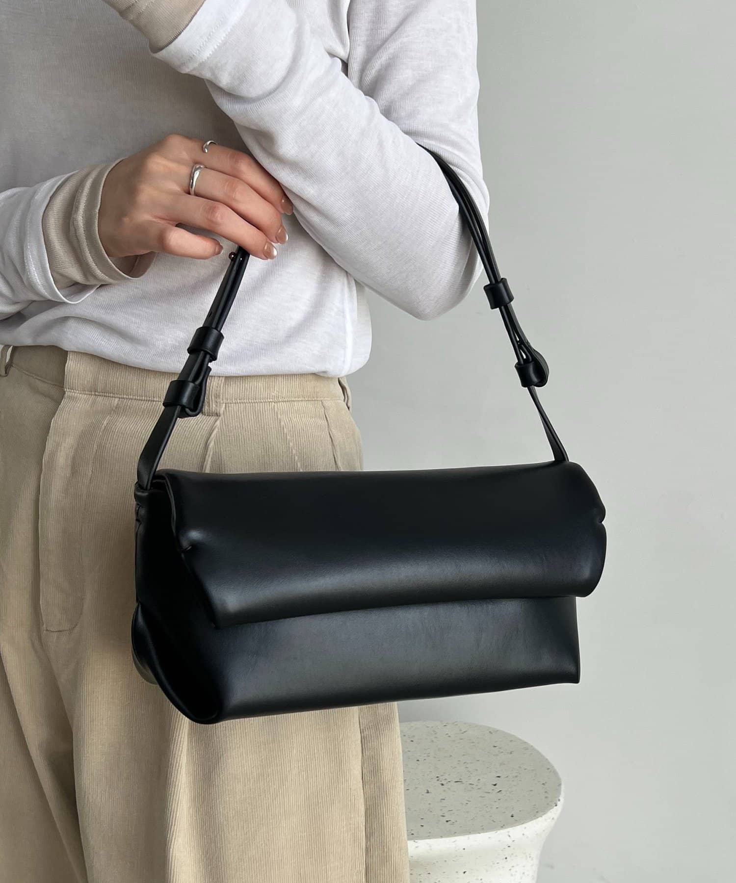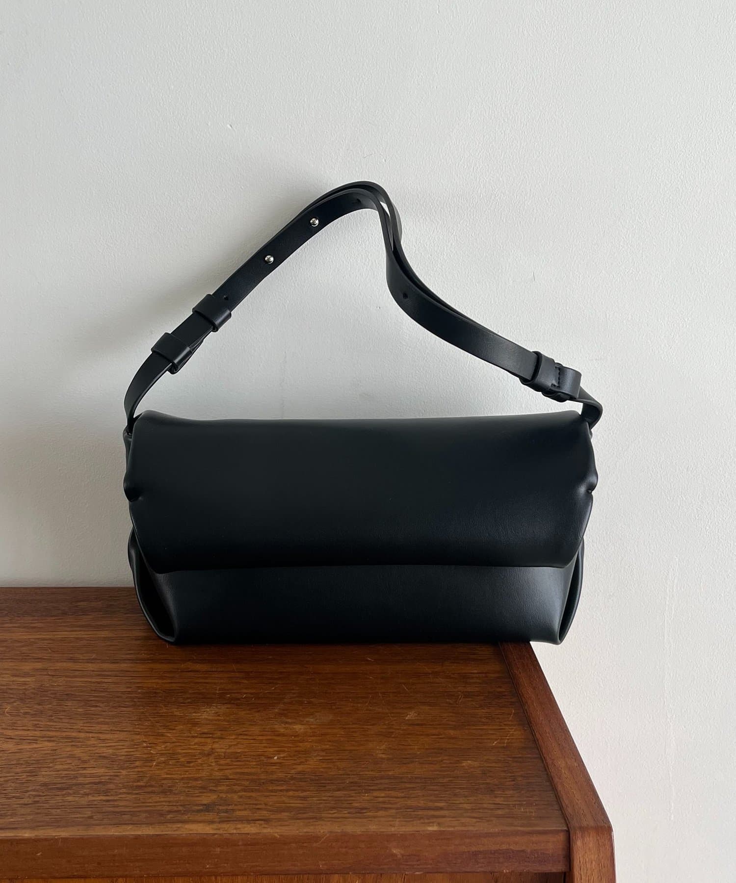 ・フラップのロールやサイドのタックでぷっくりした立体感がコーデに映えるデザイン