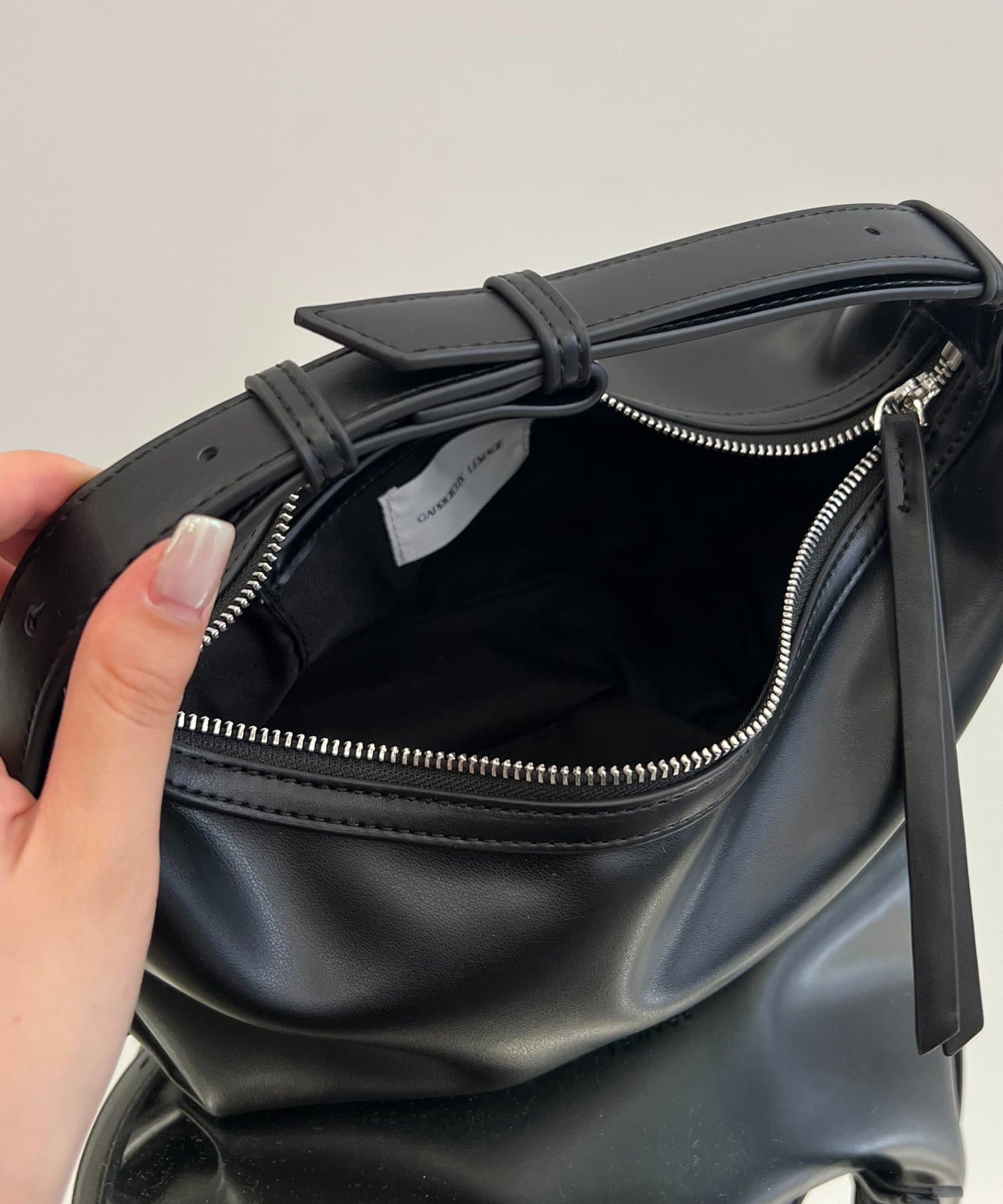 ・横長シルエットで500mlのペットボトルや長財布も収納可能