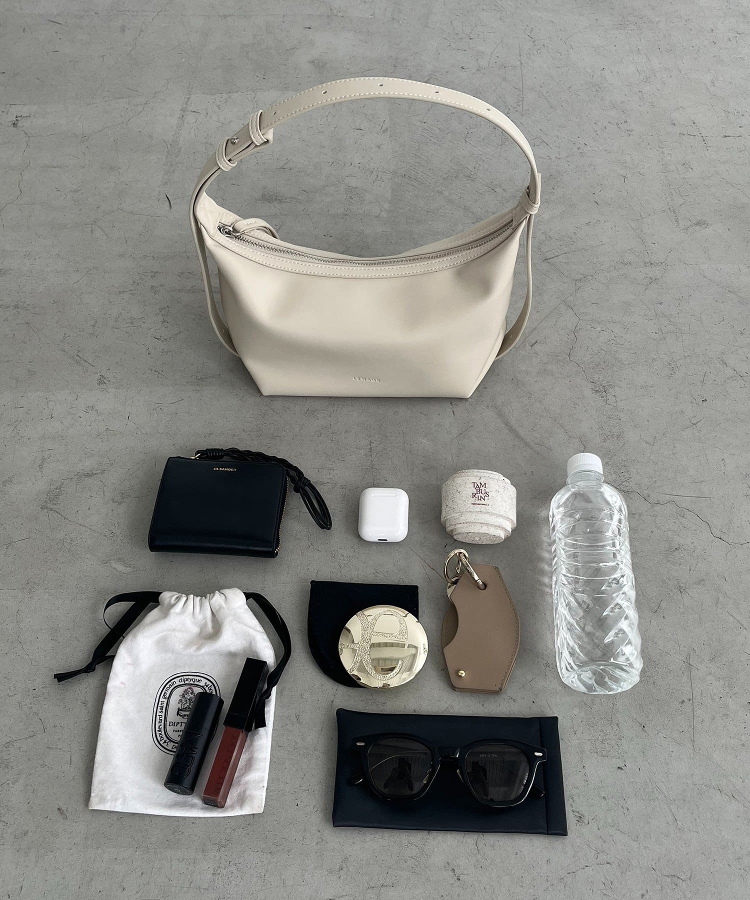 ・横長シルエットで500mlのペットボトルや長財布も収納可能