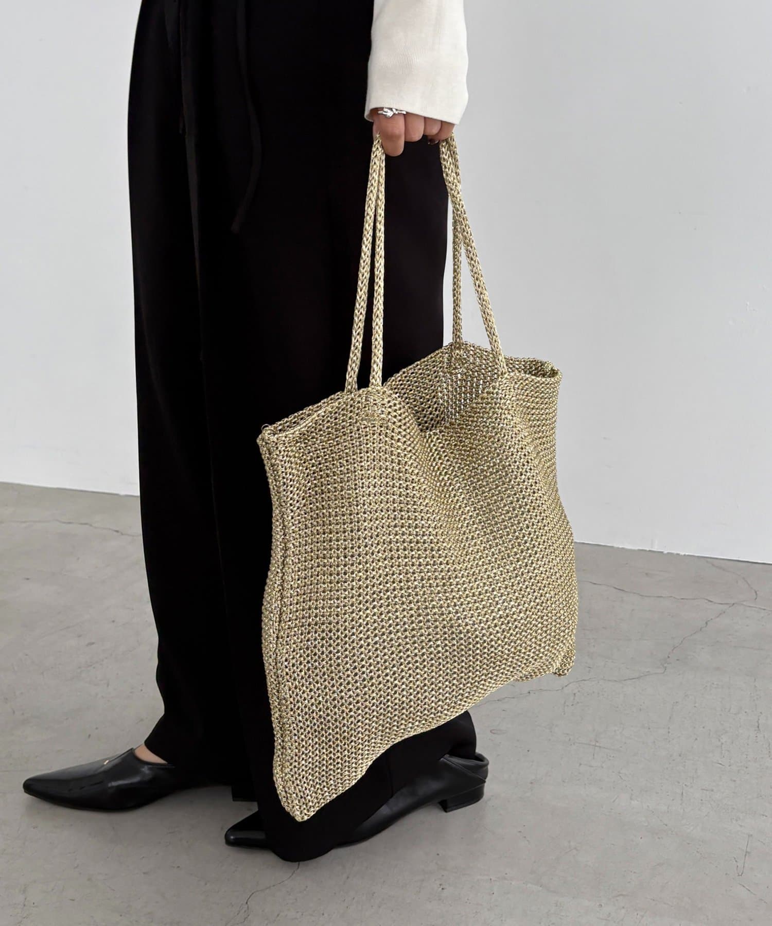 ・ラメ糸を編み込んだメタリックカラーで、上品なきらきら感が大人可愛いクロッシェトートバッグ