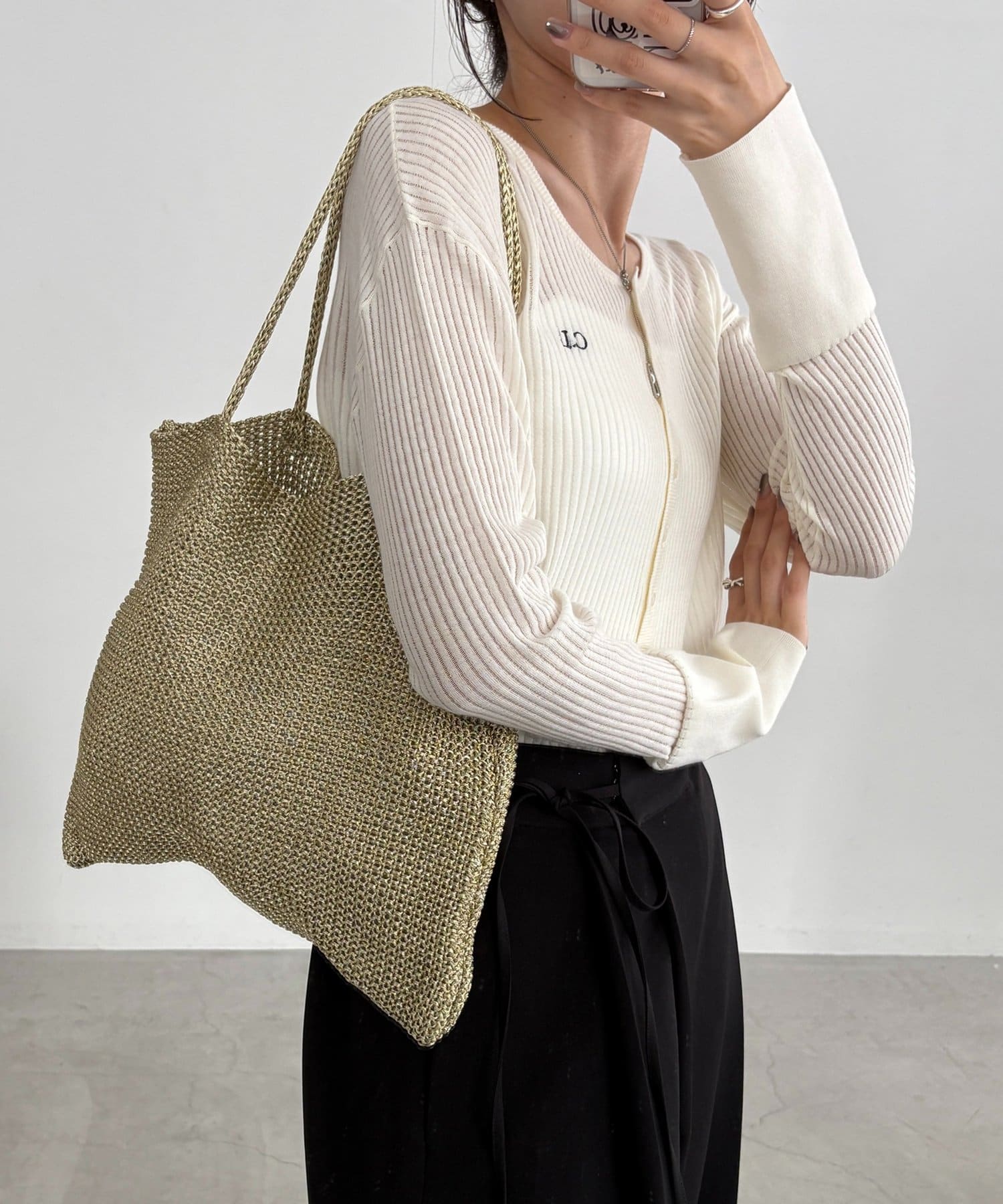 ・物を入れるとバッグが縦に伸び落ち感が出るので、リラックス感のあるこなれた雰囲気に