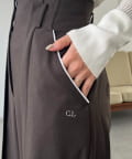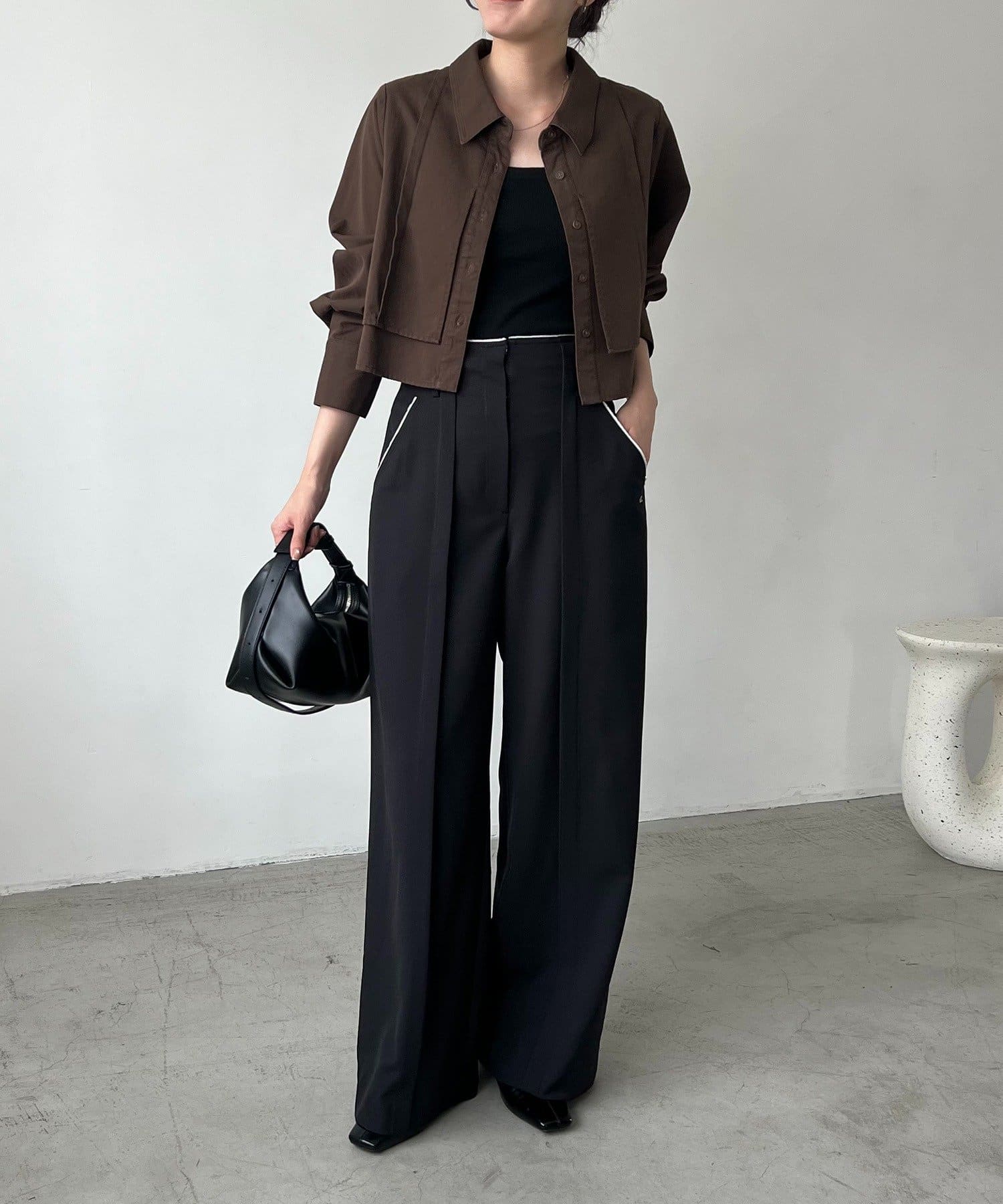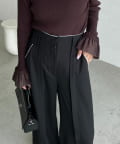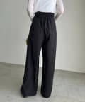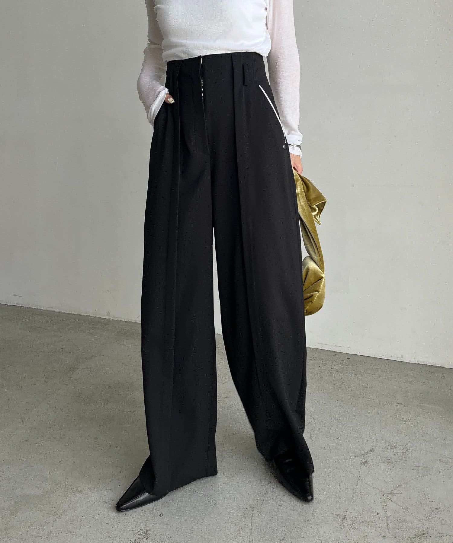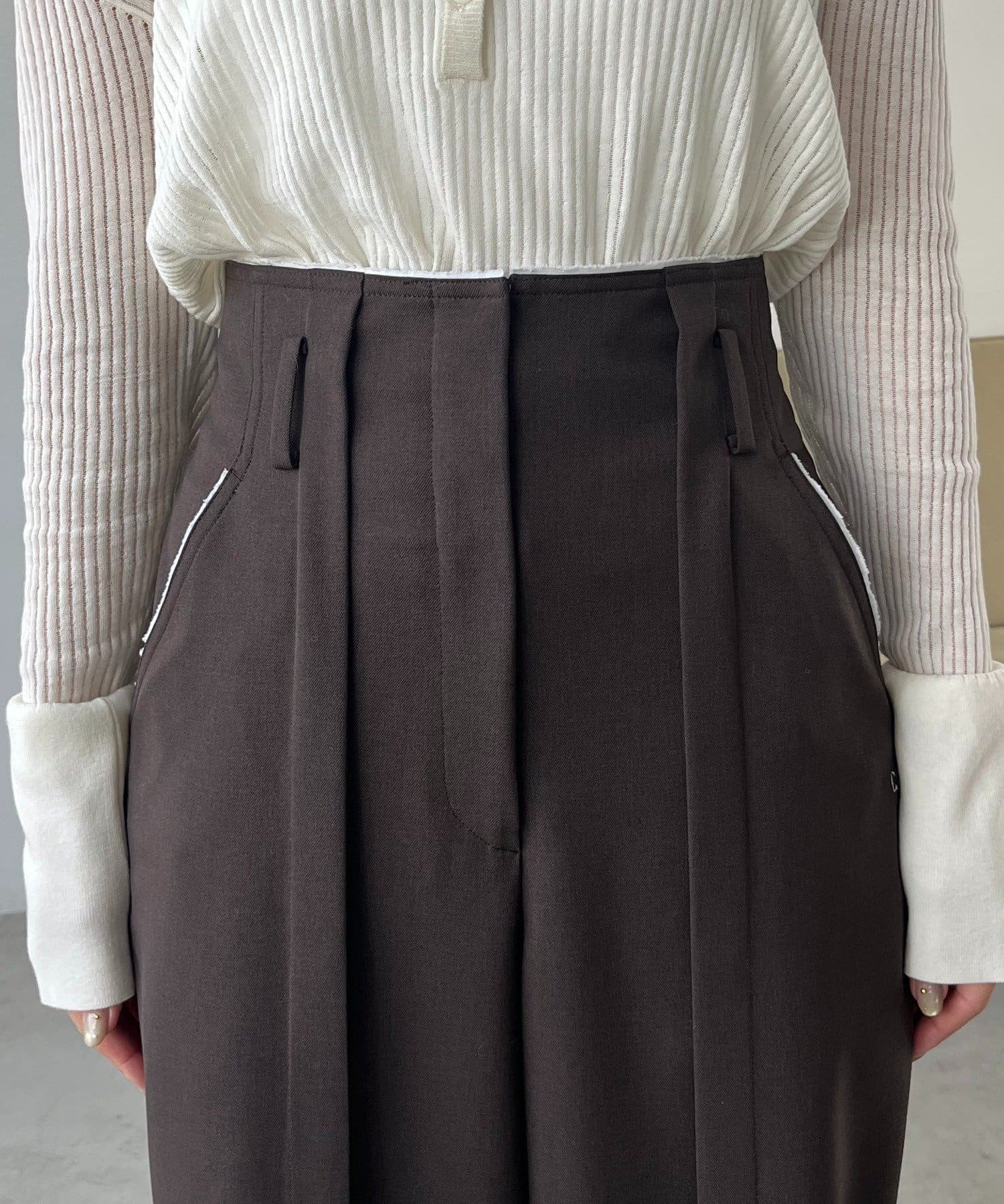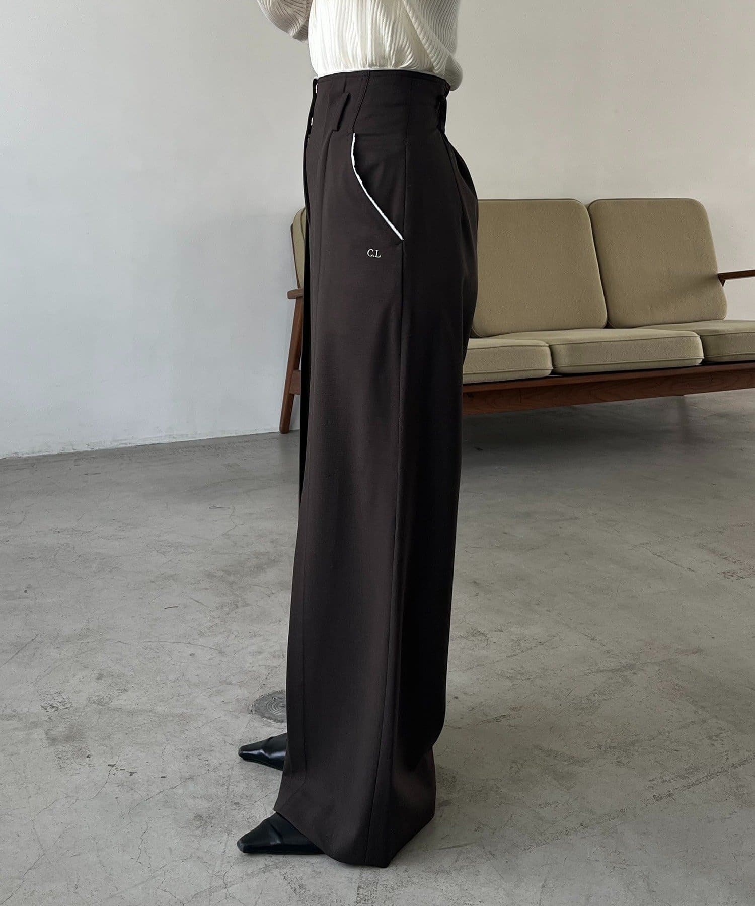 バイカラーの細いラインで縁取ったデザインがポイントのワイドパンツ