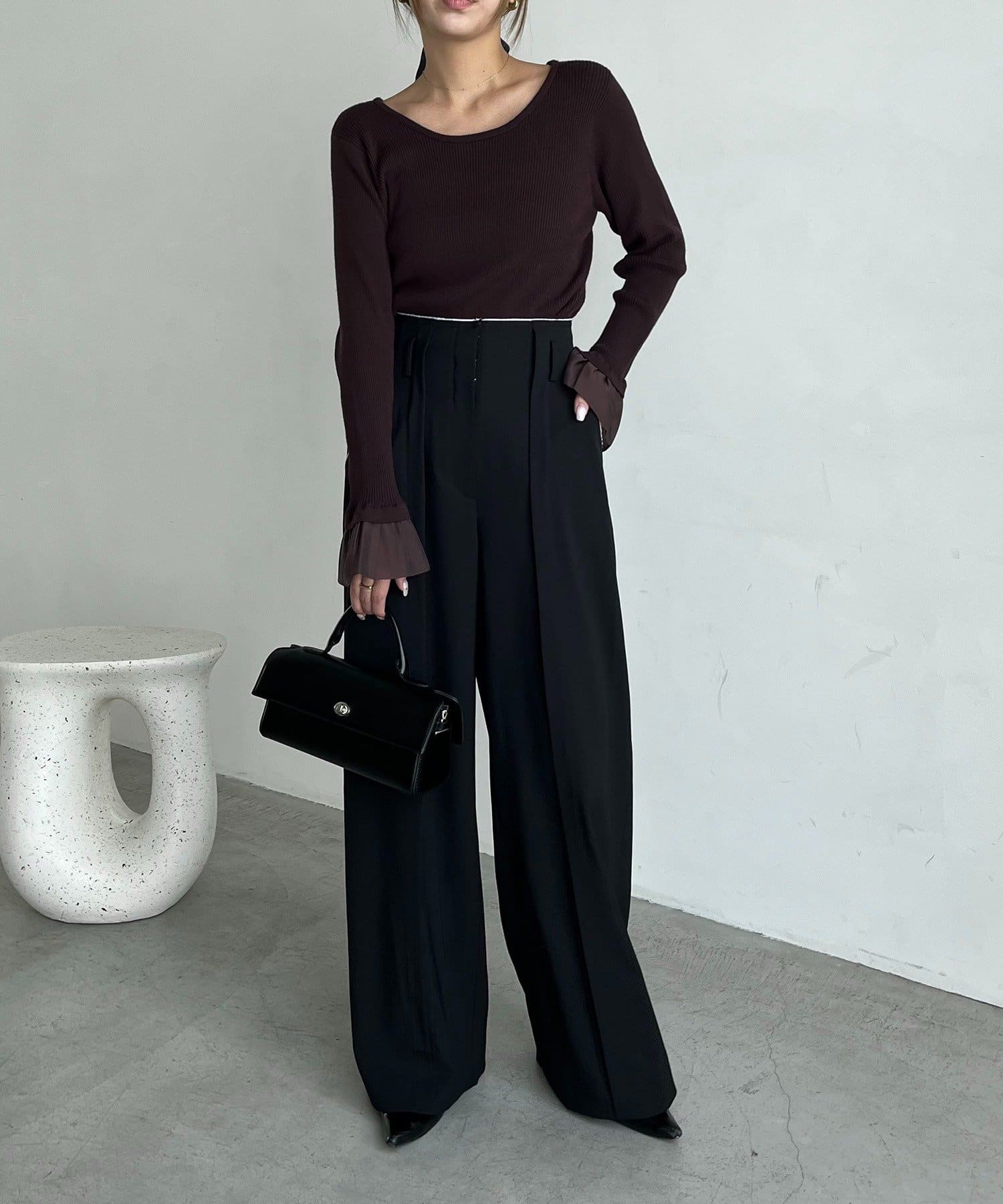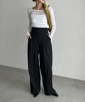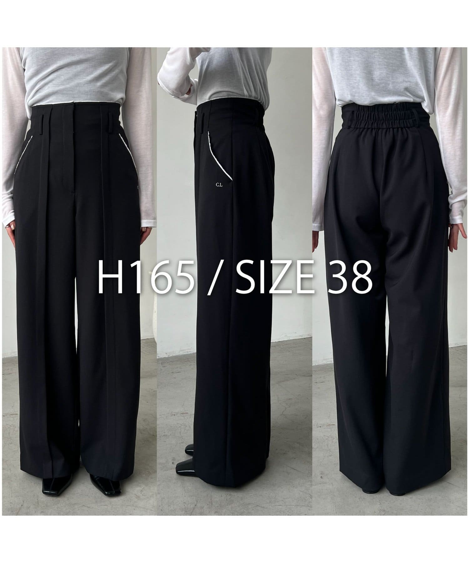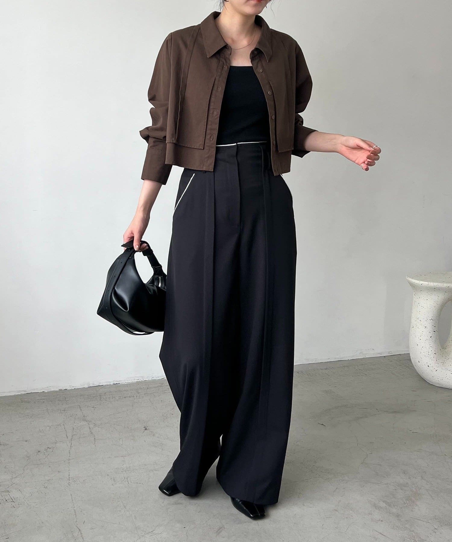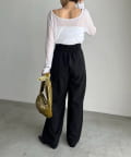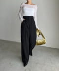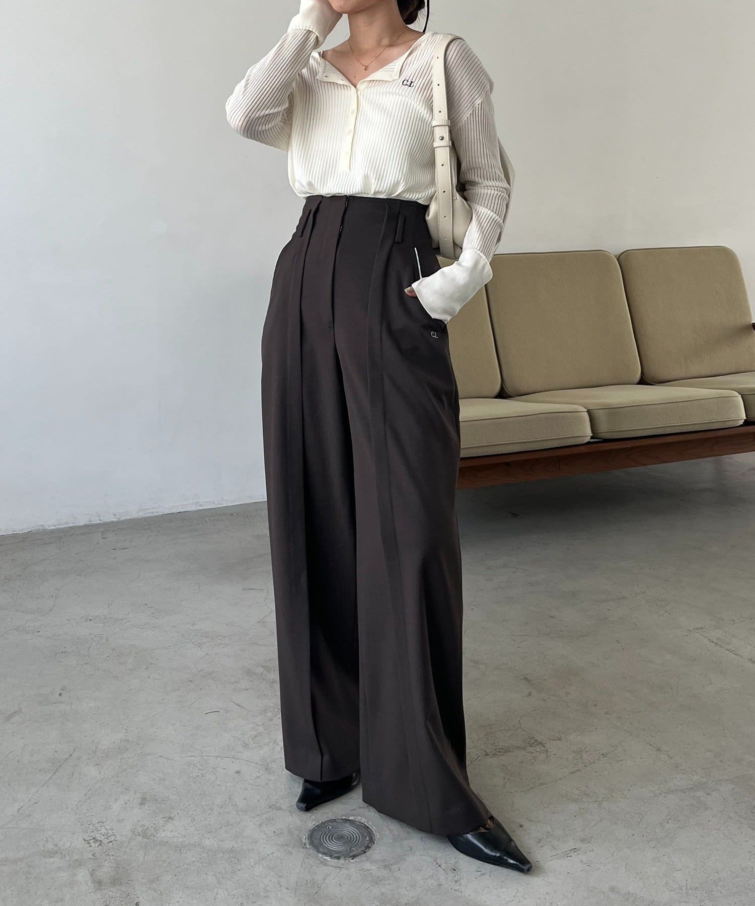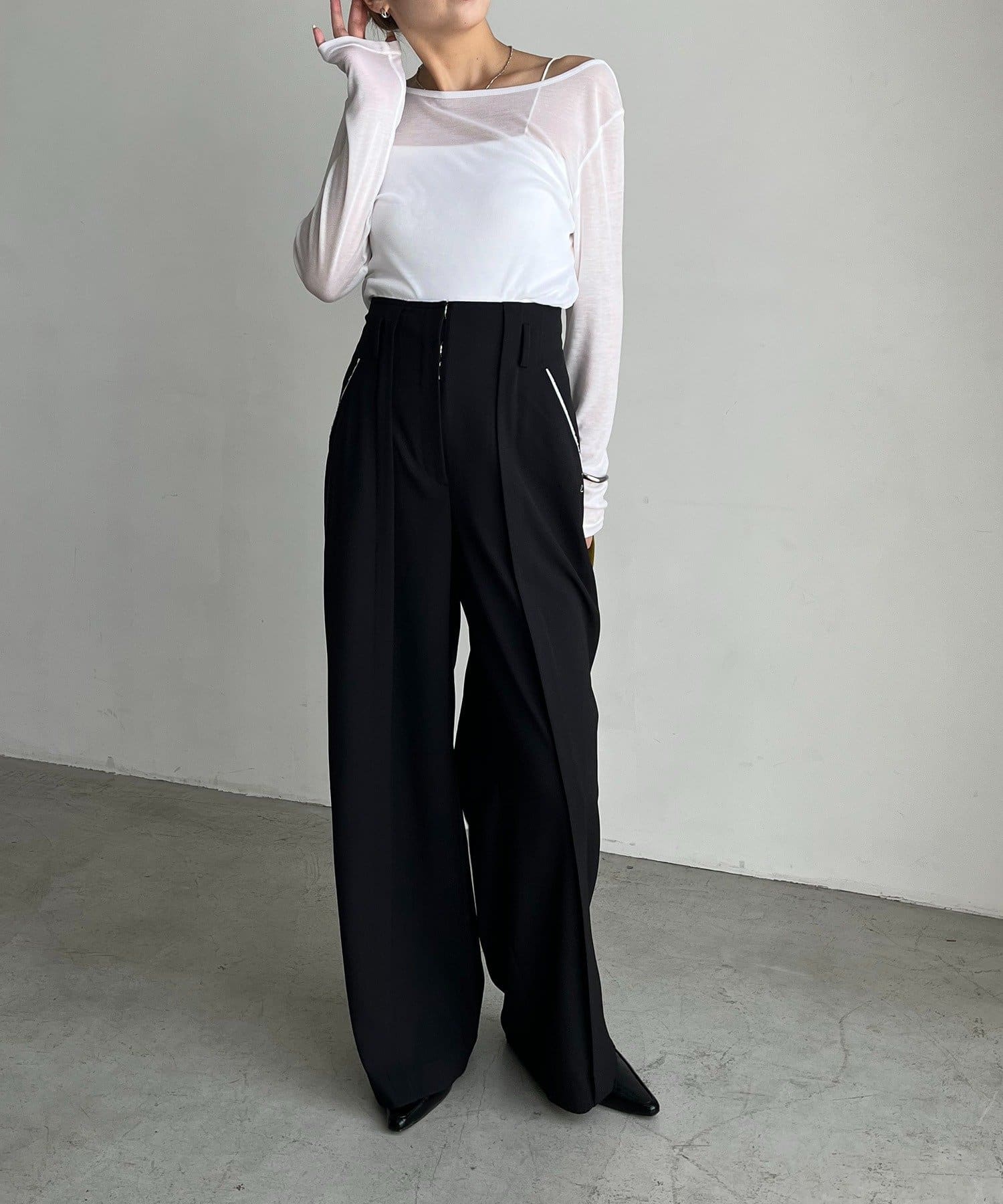 バイカラーの細いラインで縁取ったデザインがポイントのワイドパンツ