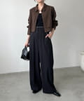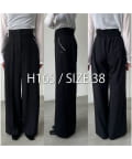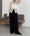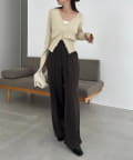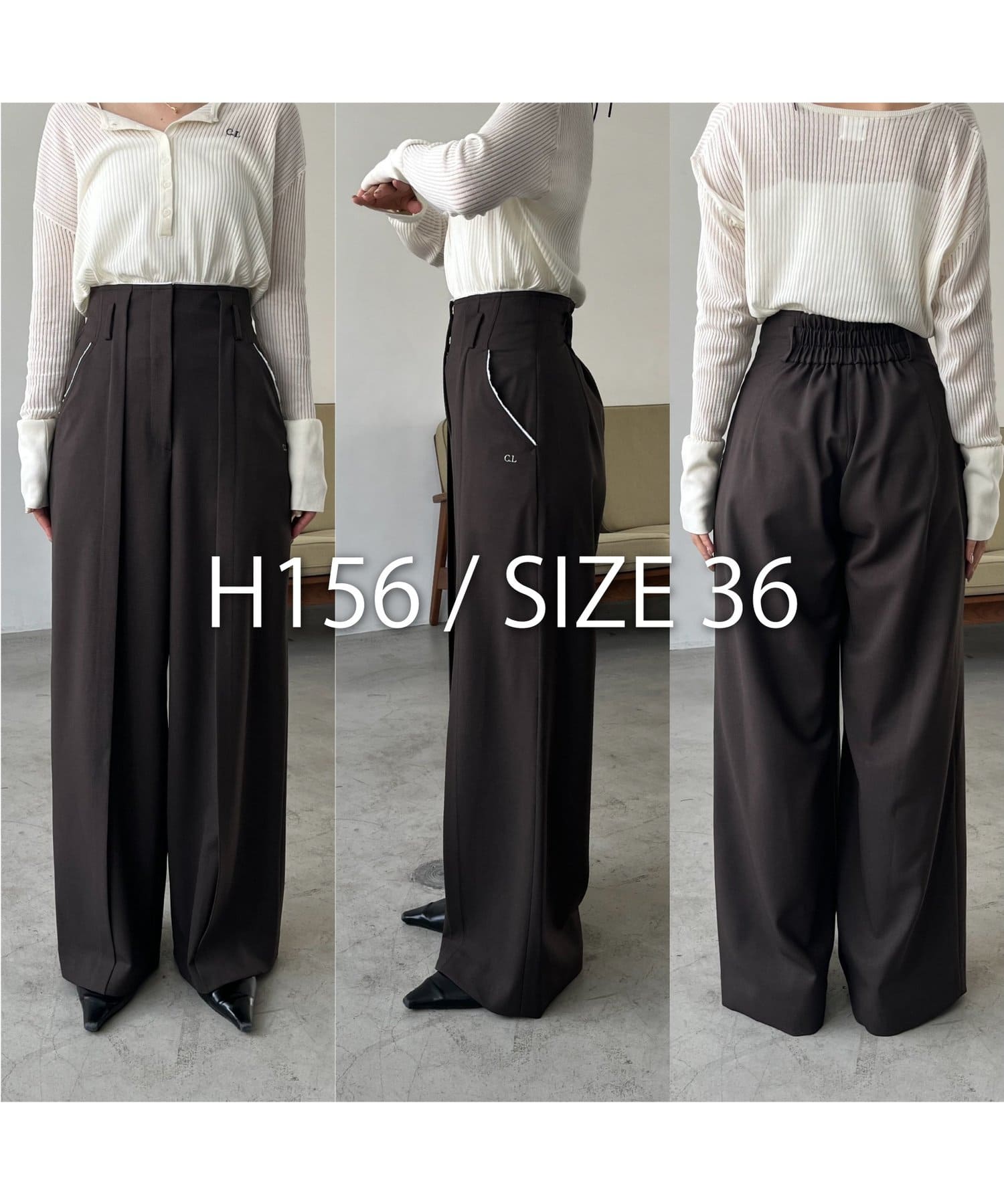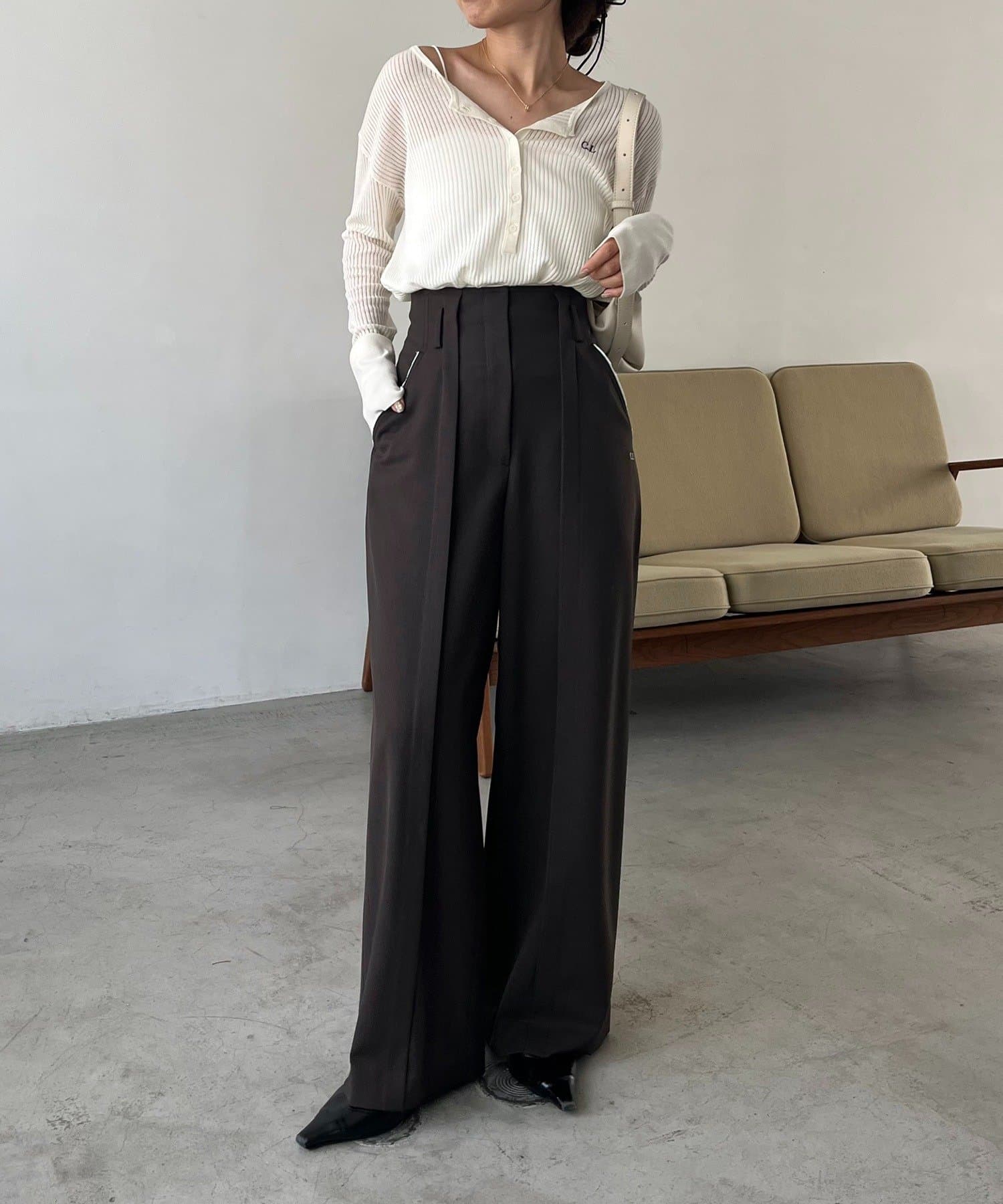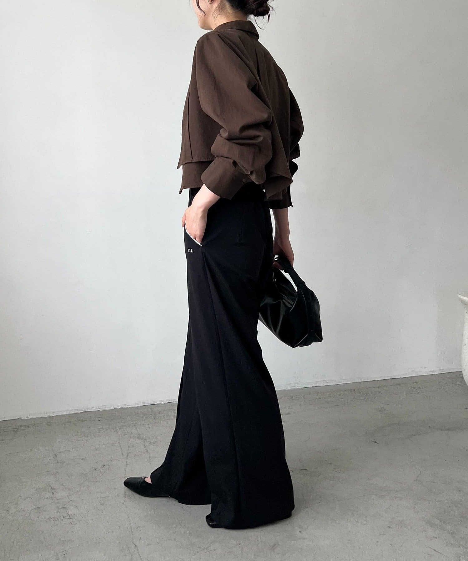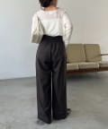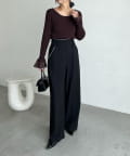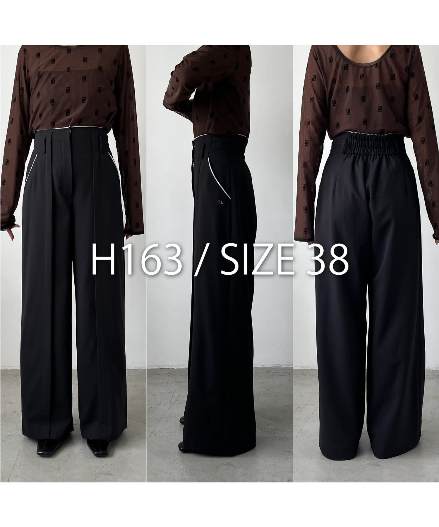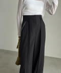 バイカラーの細いラインで縁取ったデザインがポイントのワイドパンツ