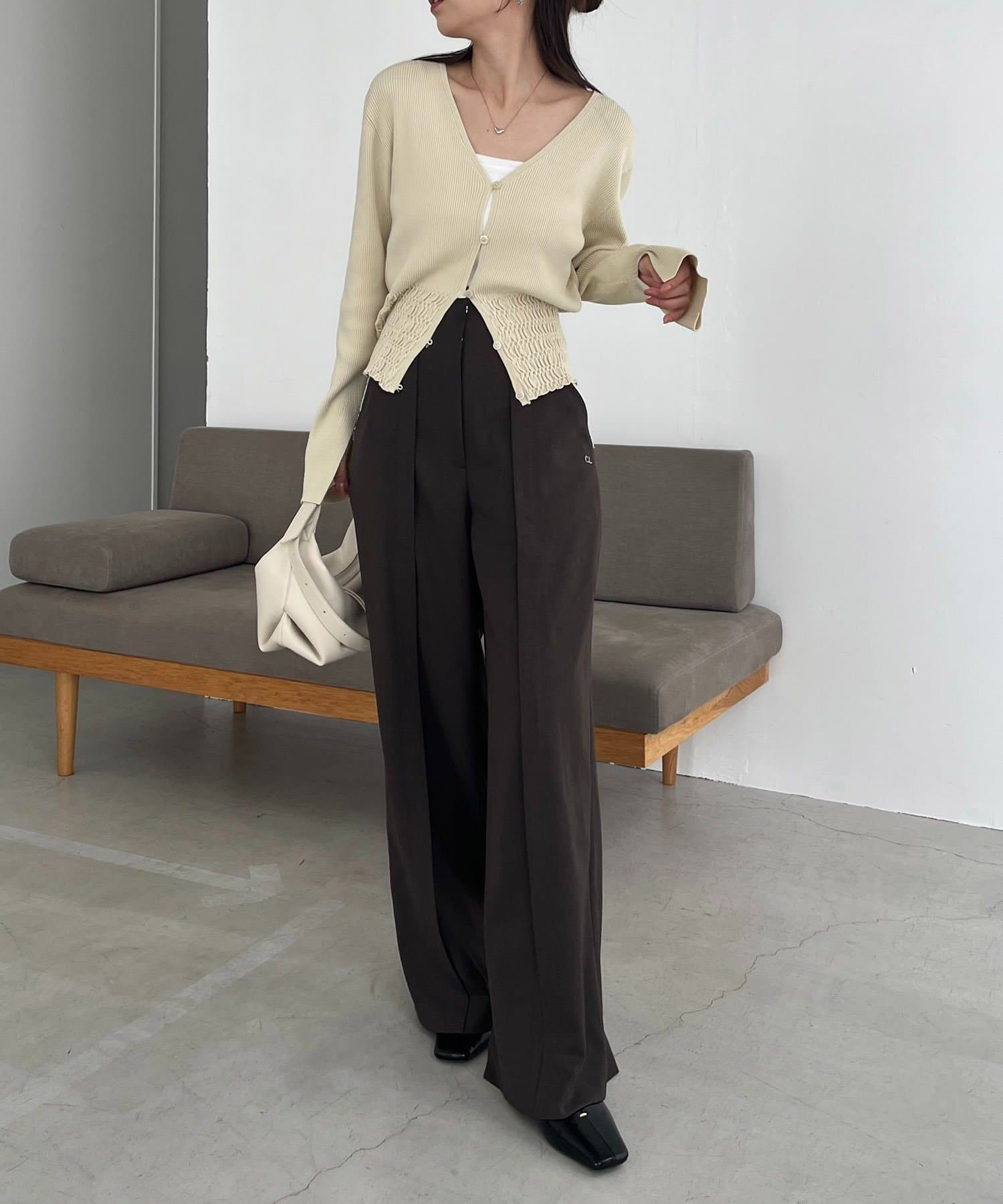 【ブラウン着用アイテム】裾シャーリングリブカーディガン