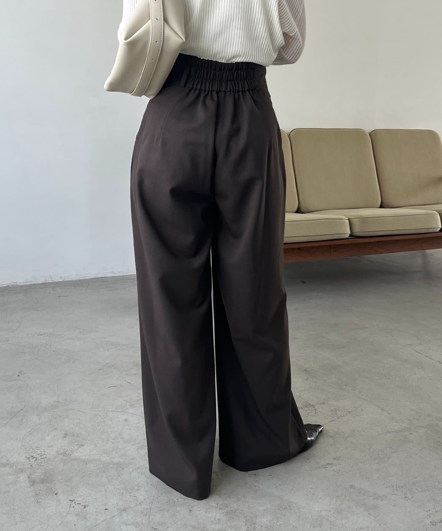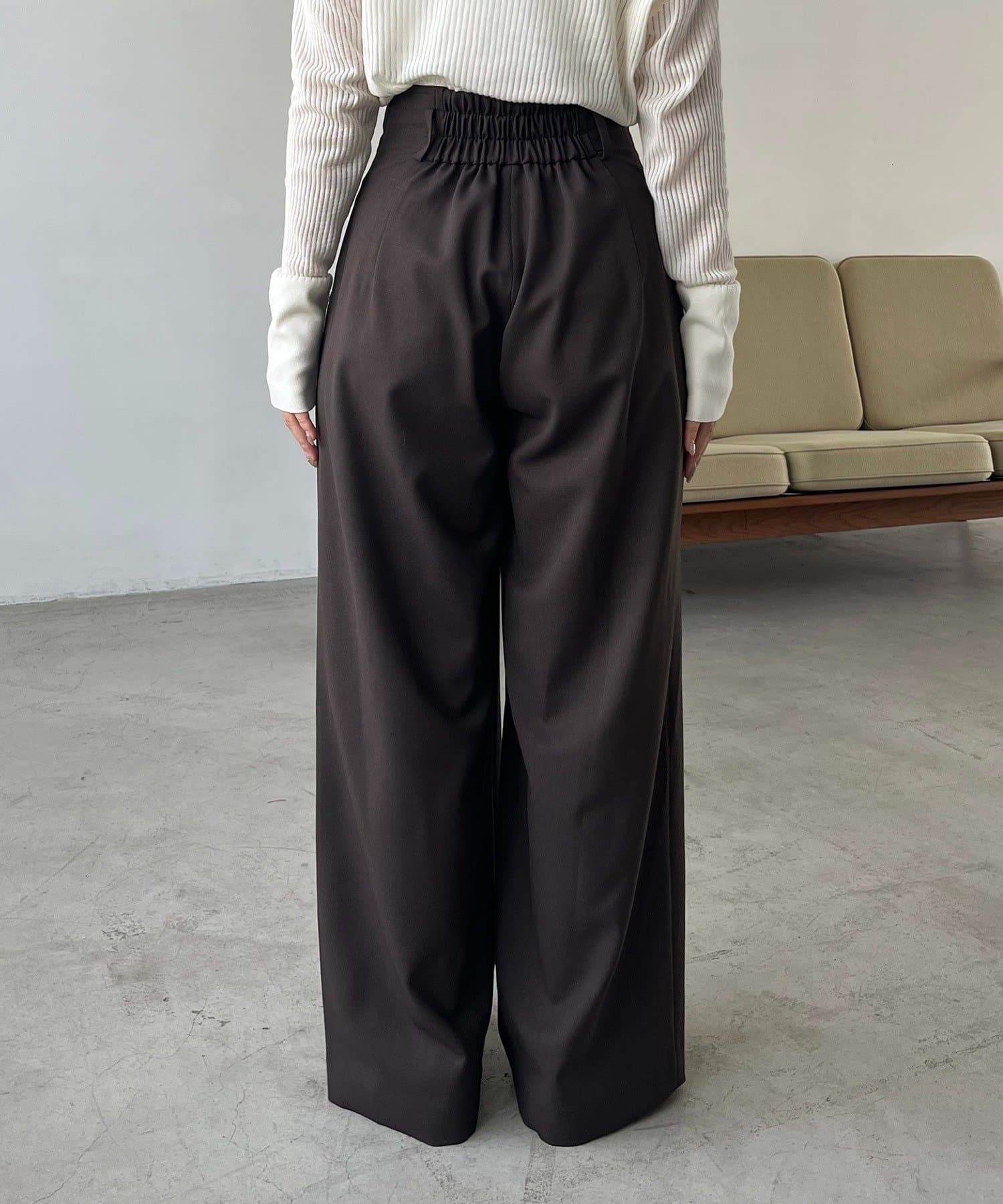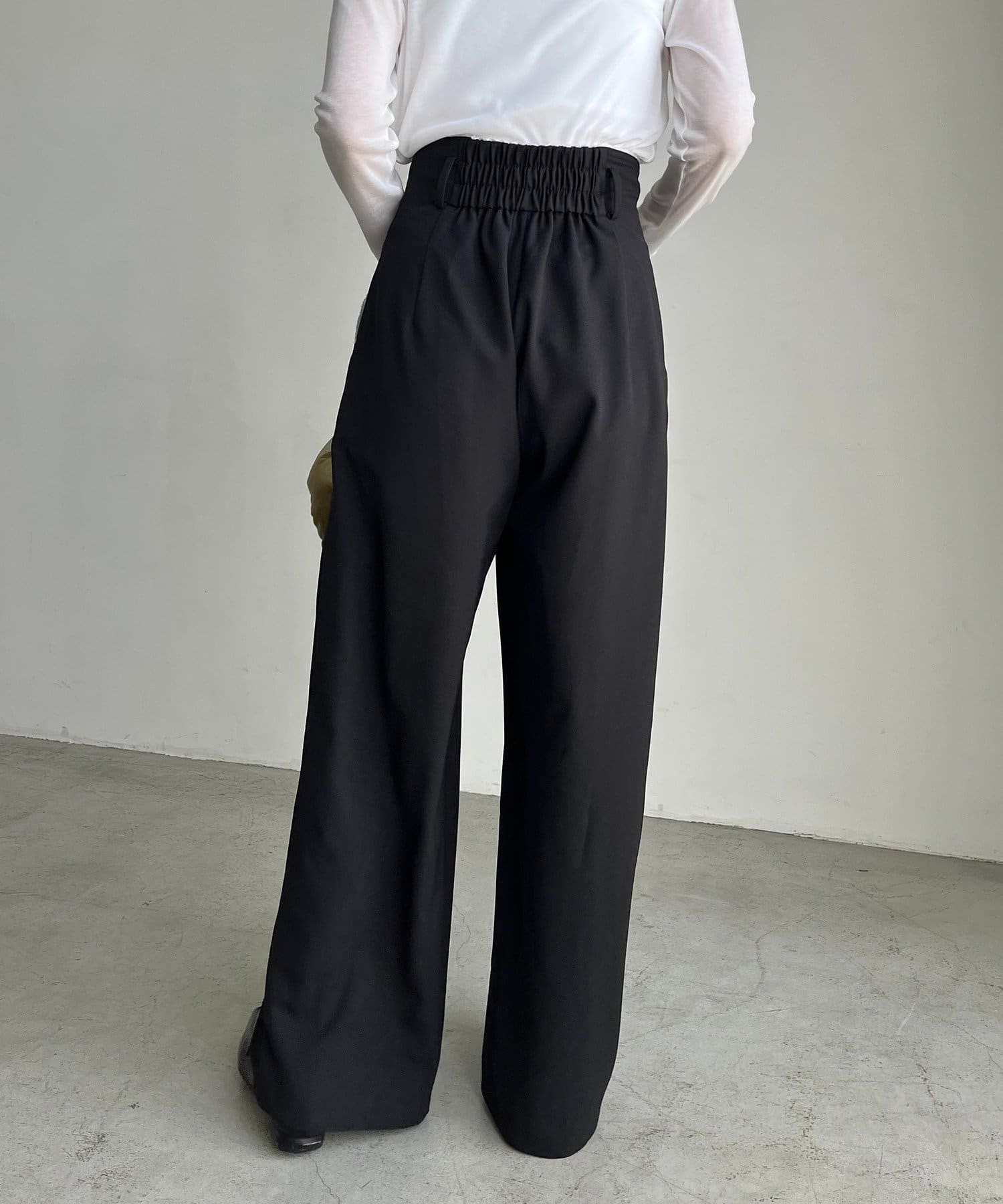・ベルトの切替がないハイウエストで腰位置が高くすっきり見え