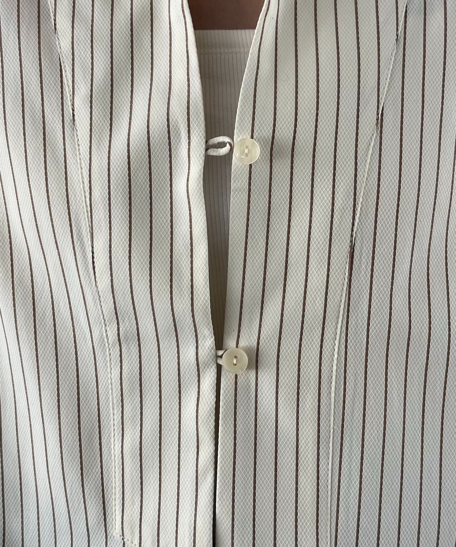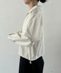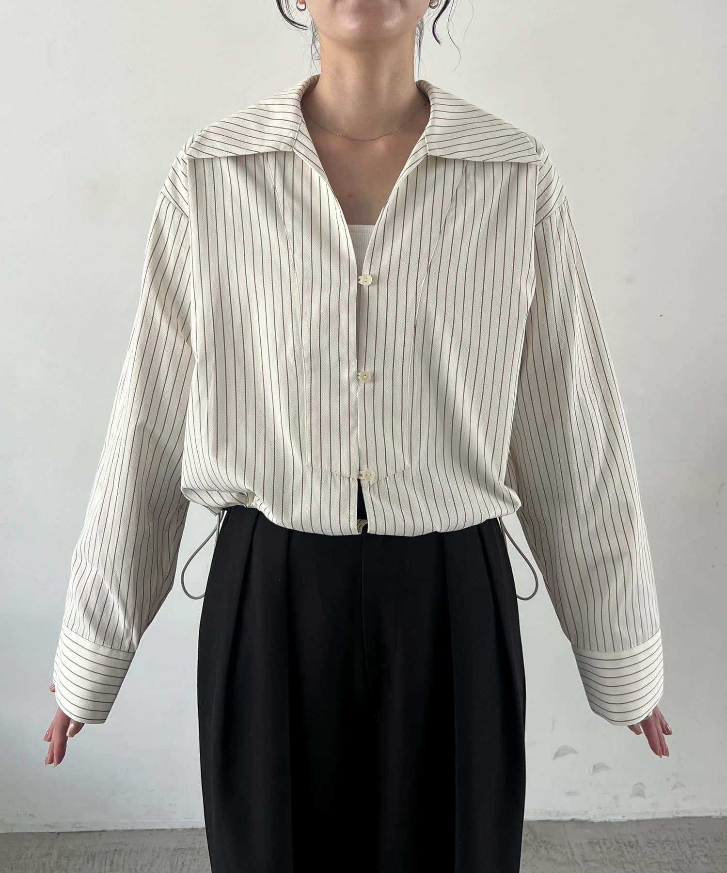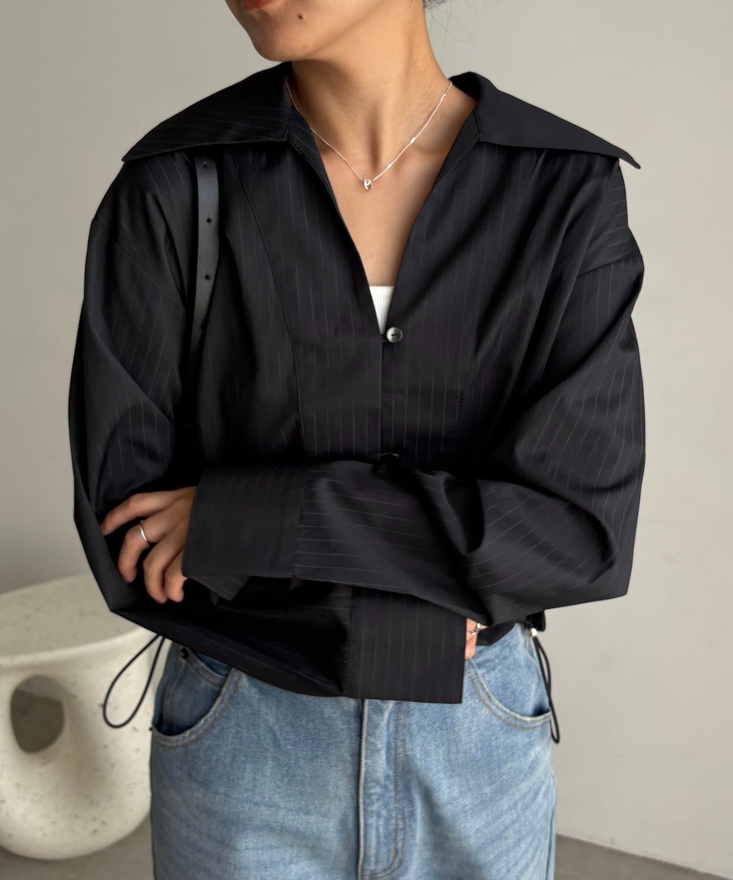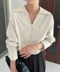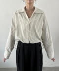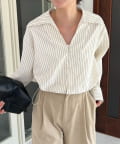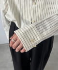 ・前下がりがVネックに開いていて抜け感たっぷりのストライプシャツ