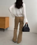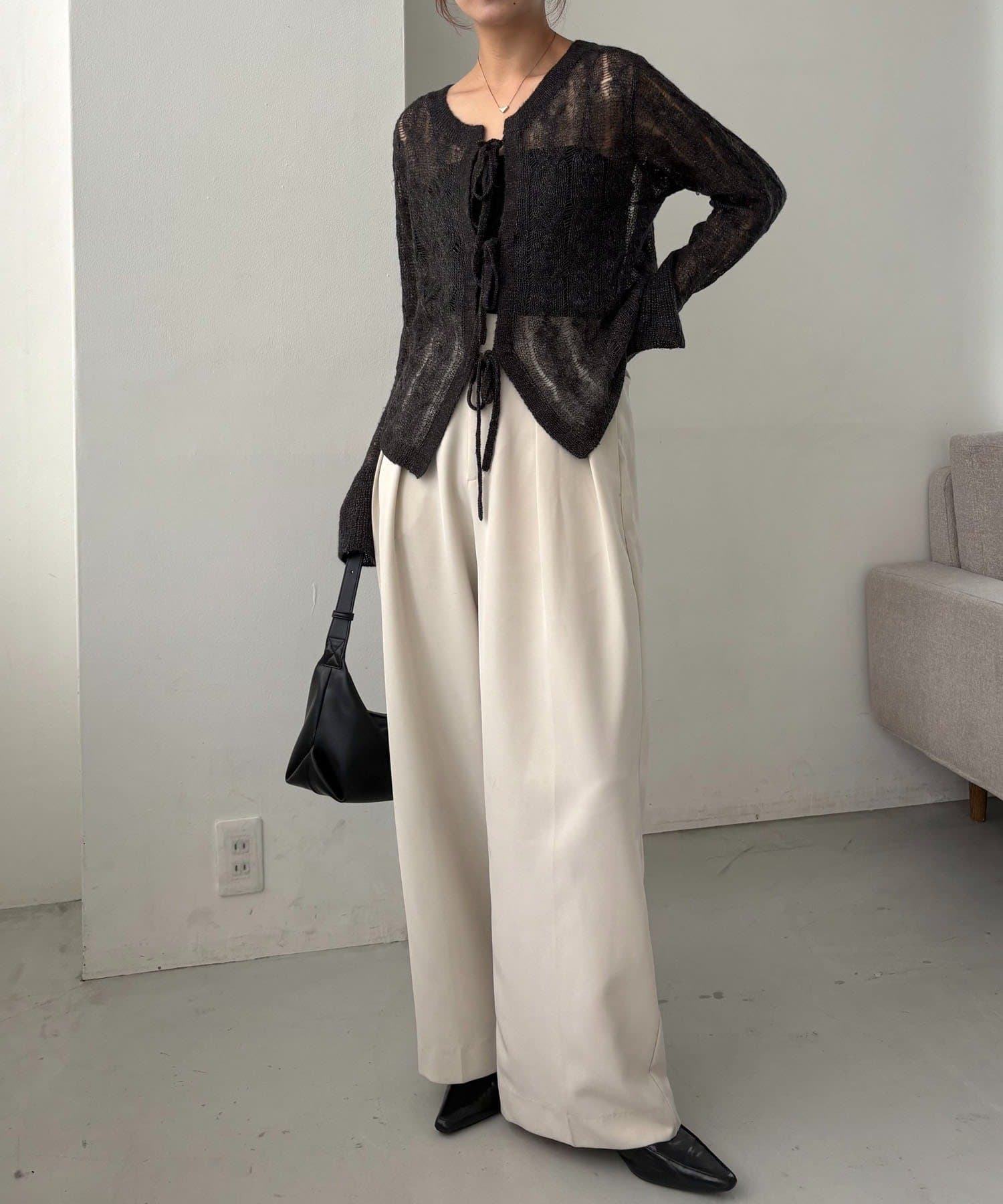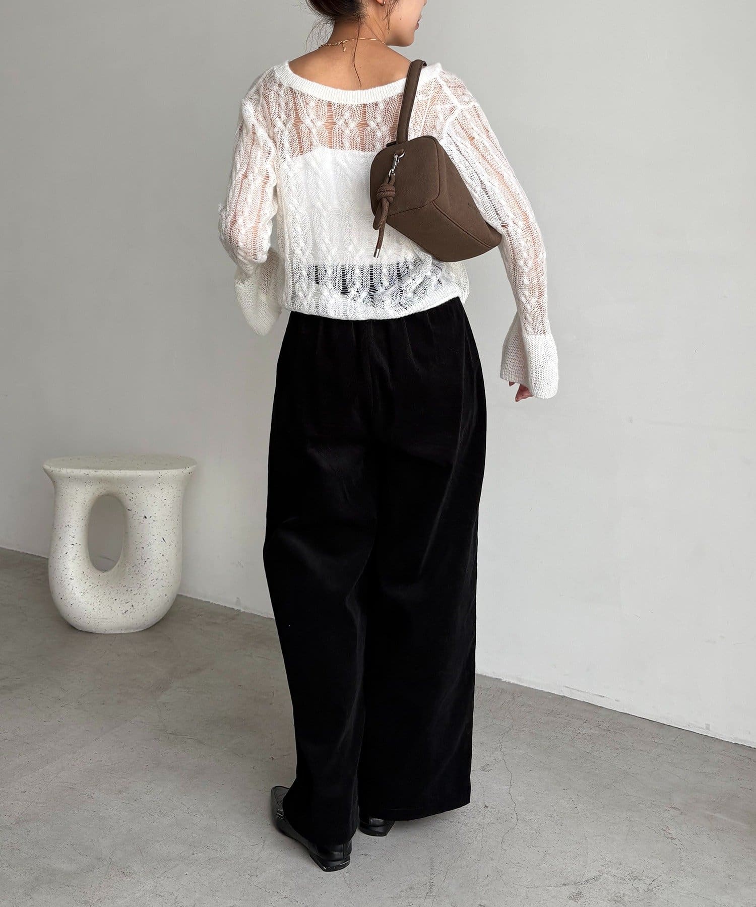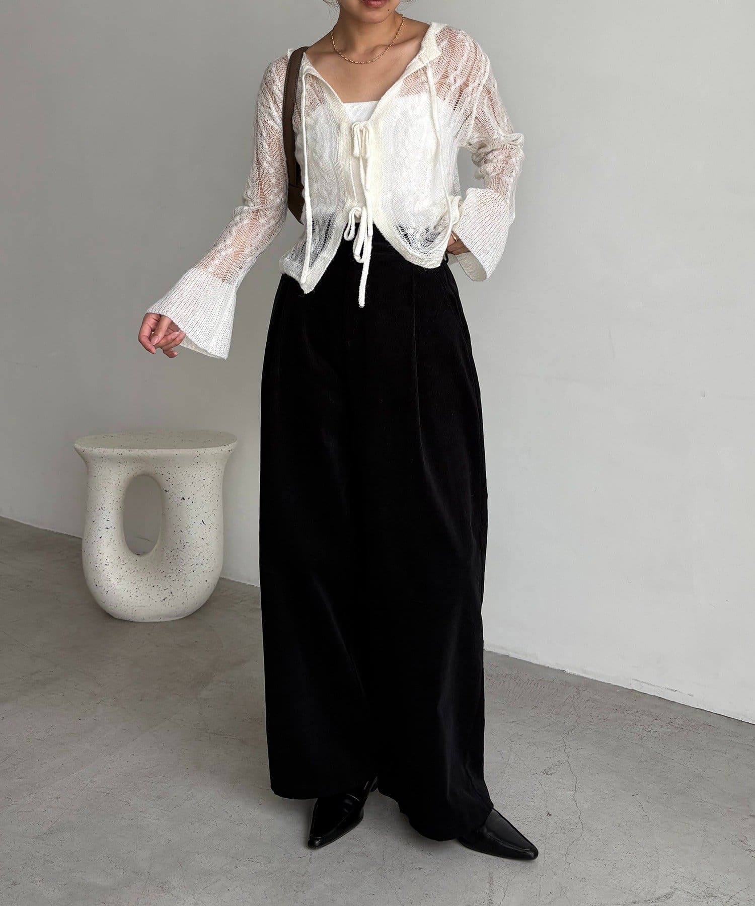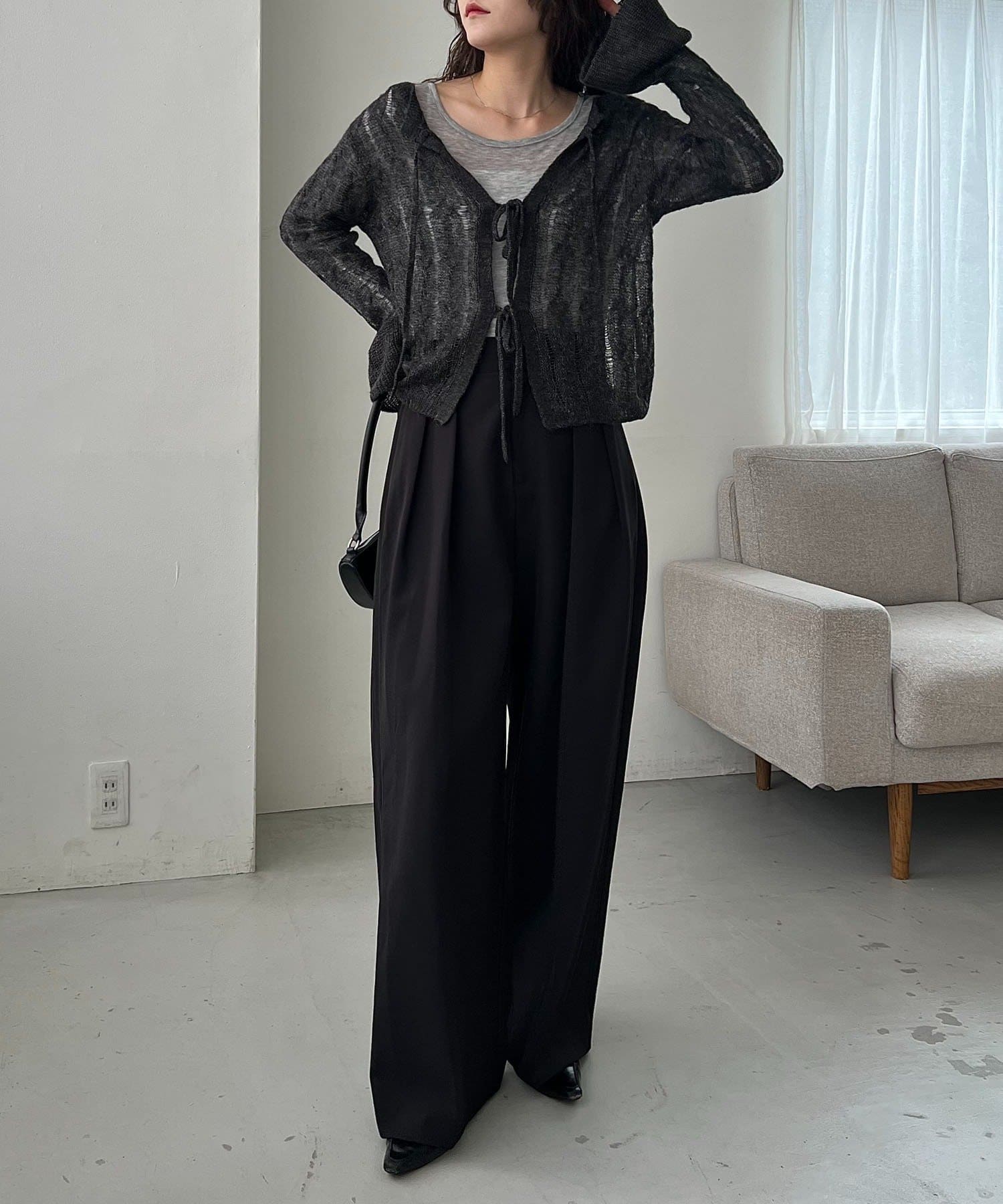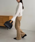 ・スラックス合わせで甘さを抑えたスタイリングに