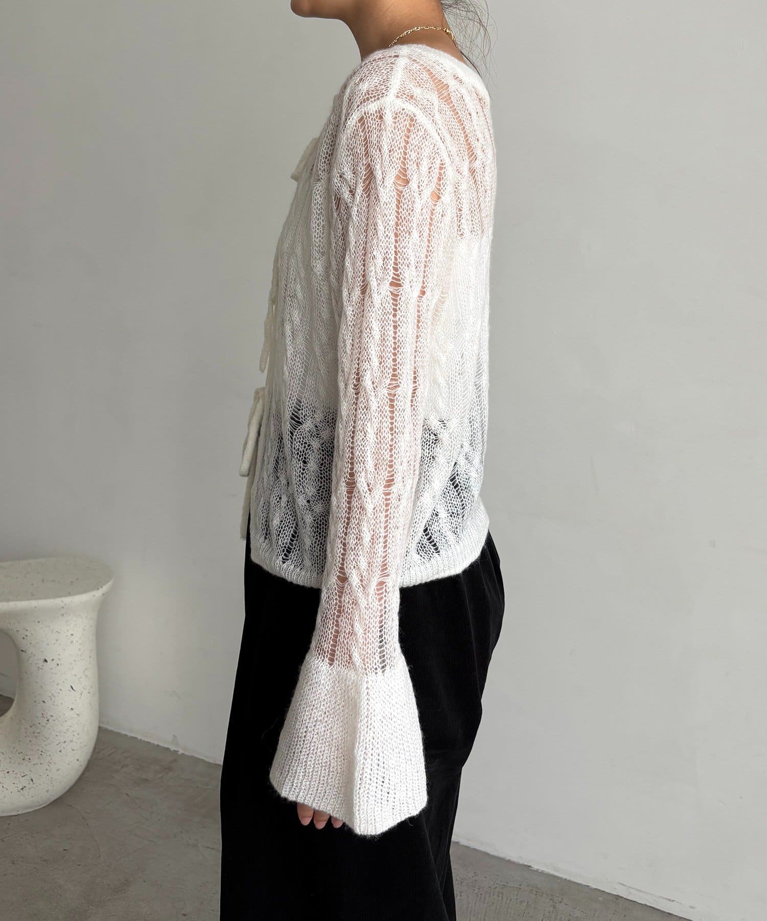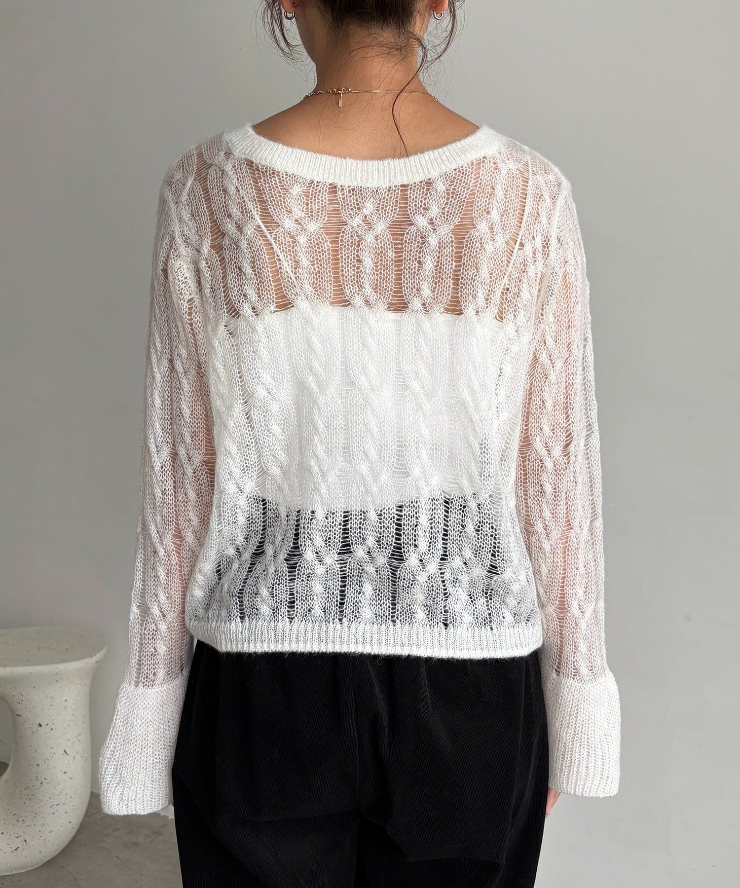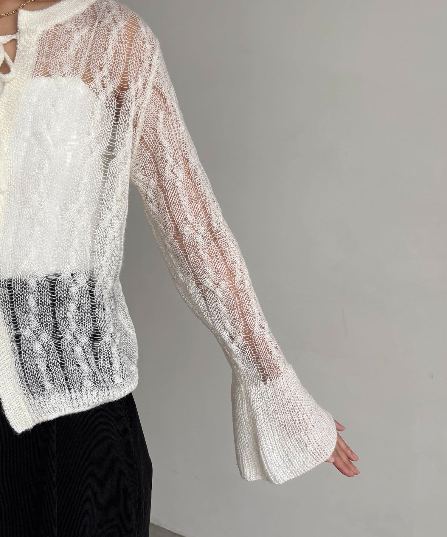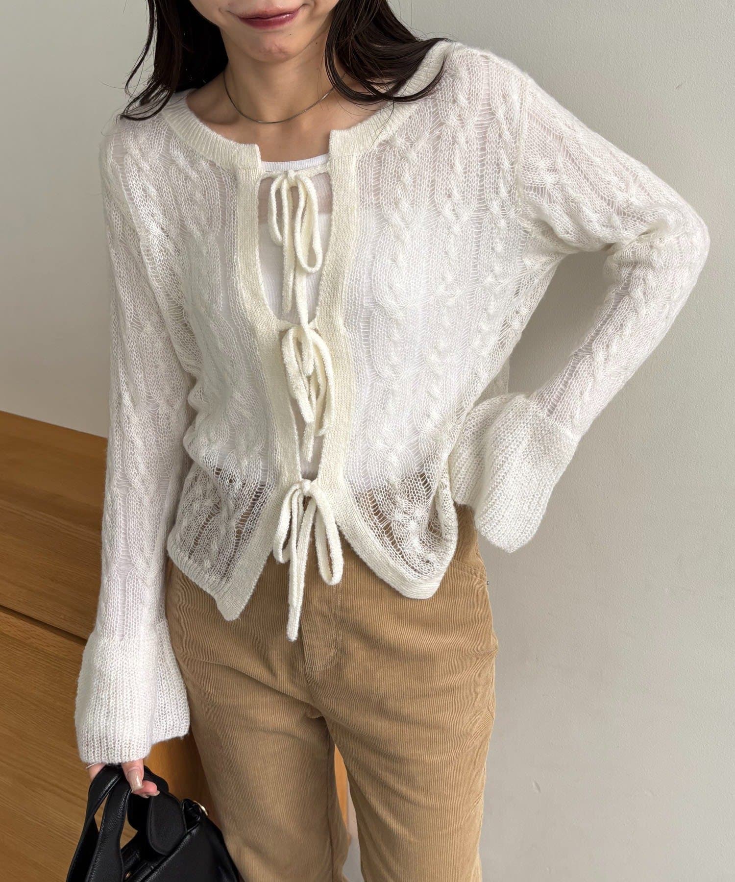 ・透かし編みが女性らしく季節の変わり目におすすめの1枚