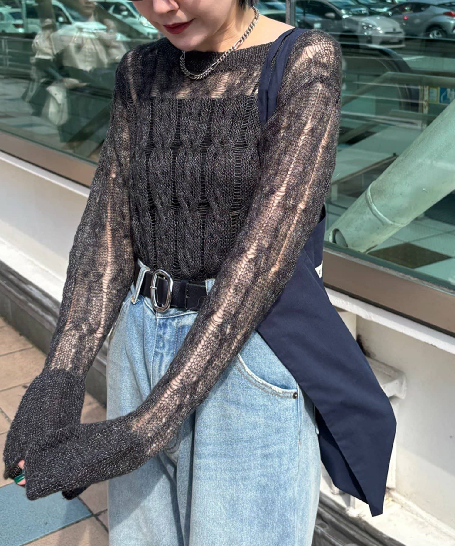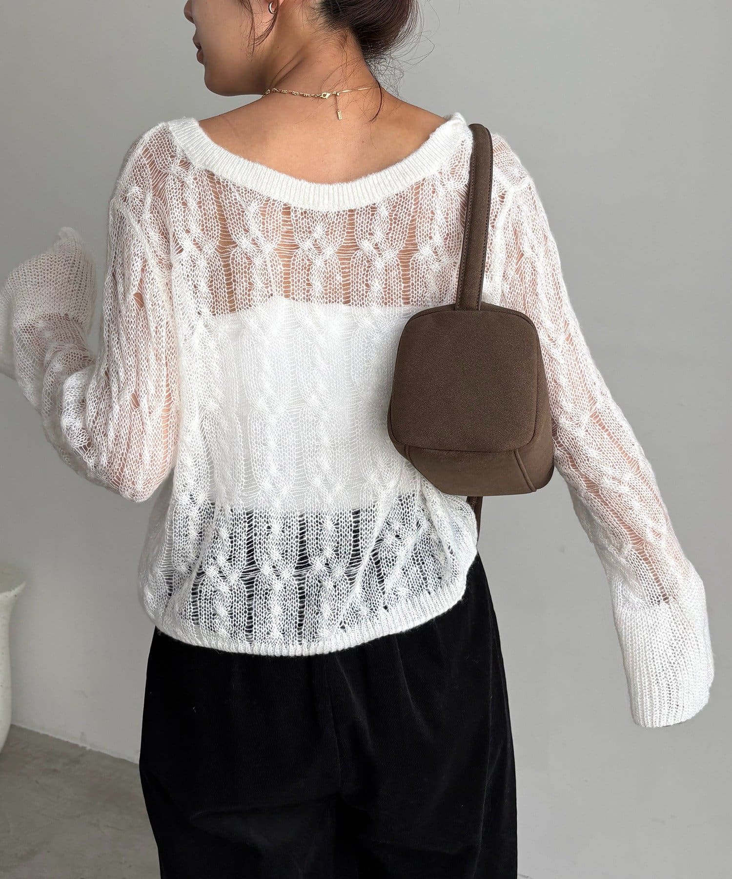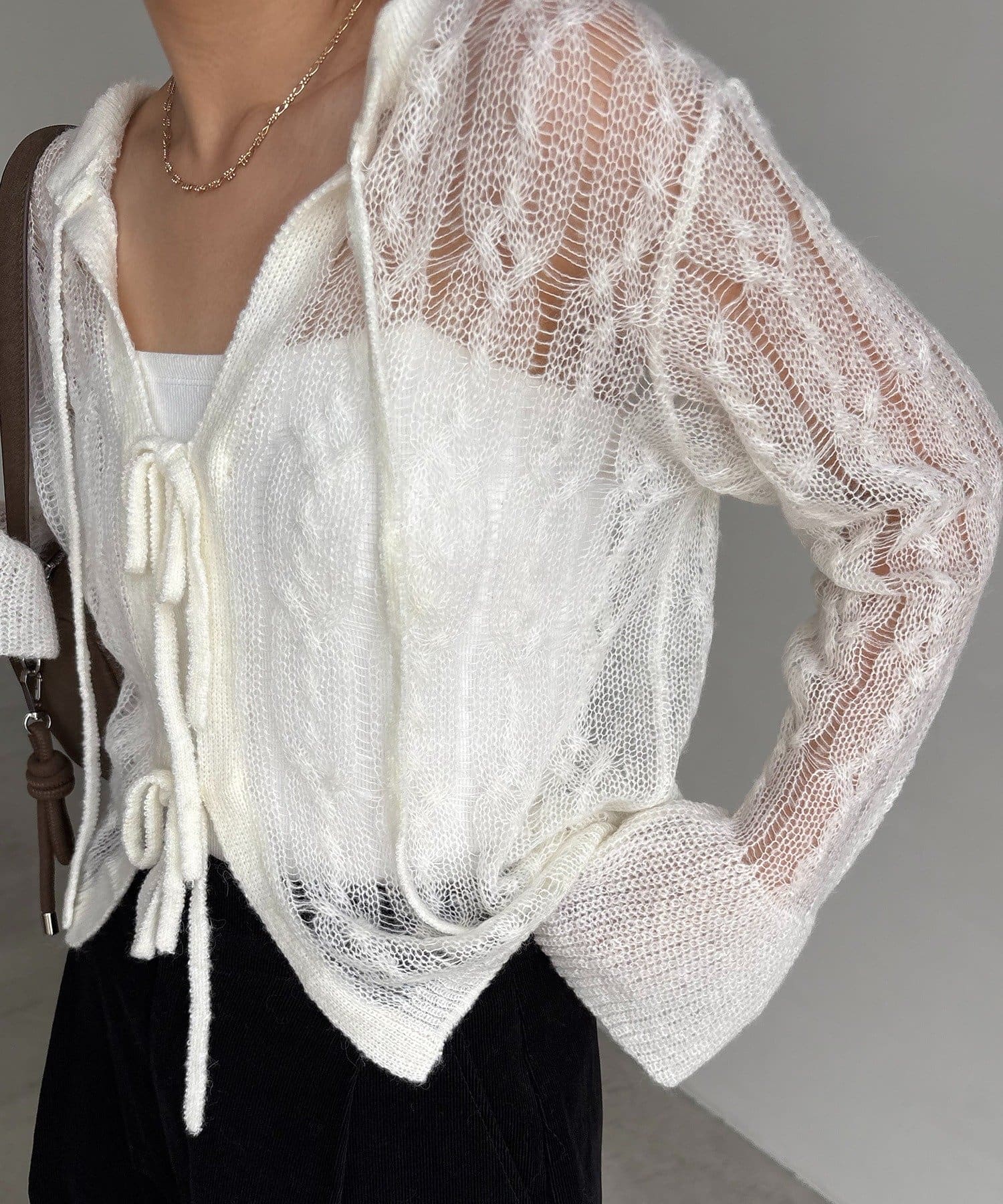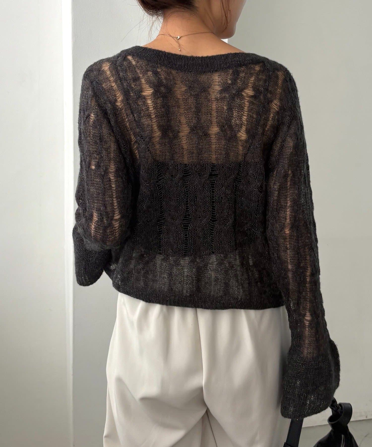 ・透かし編みが女性らしく季節の変わり目におすすめの1枚