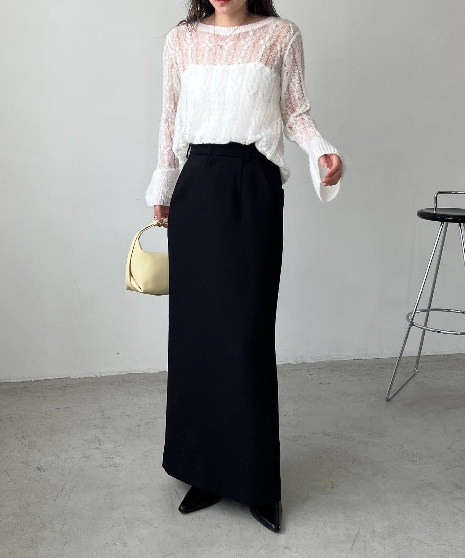 【オフホワイト着用アイテム②】マキシIラインスカート