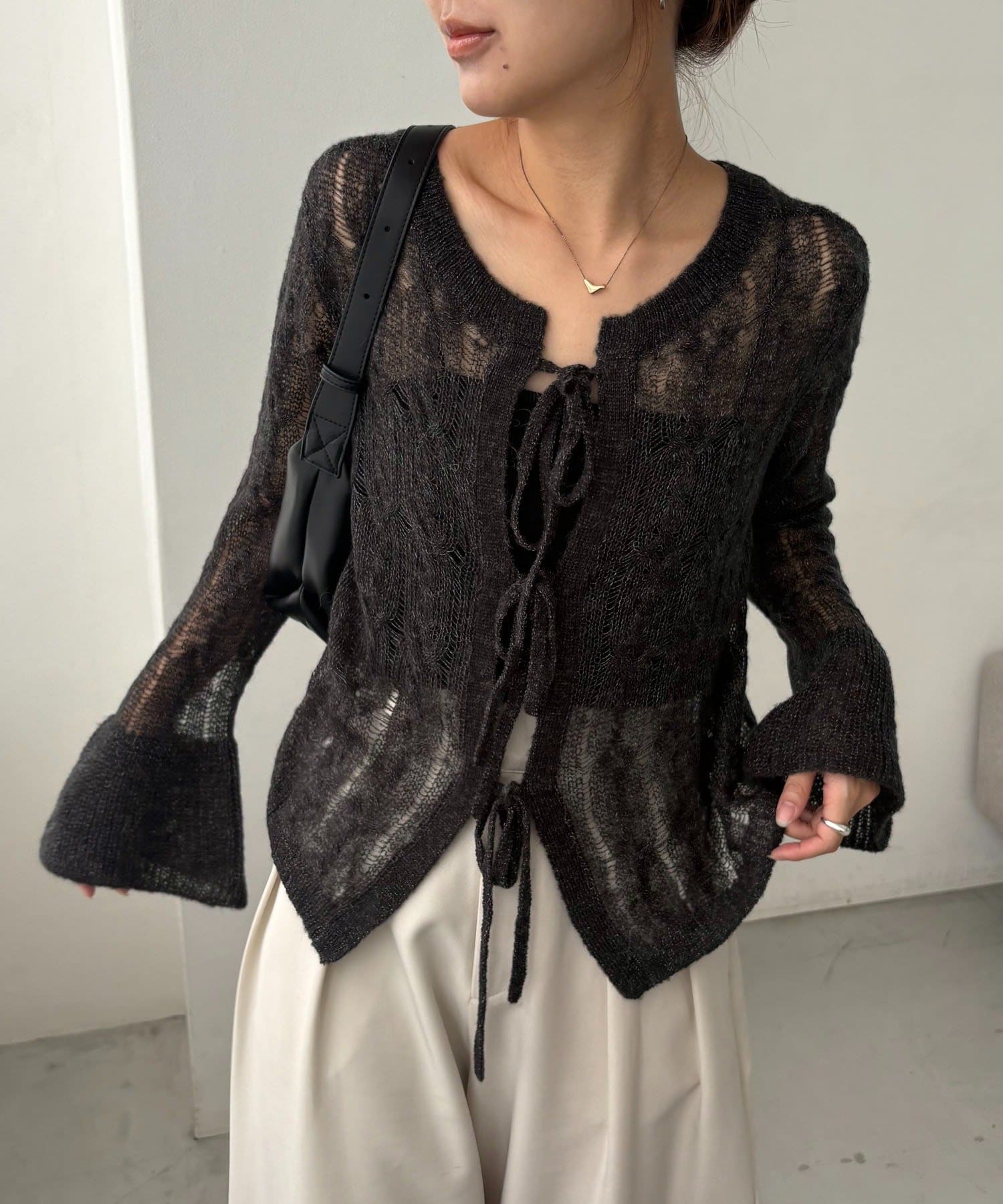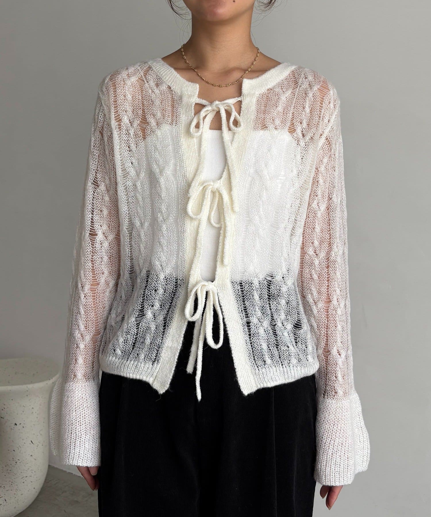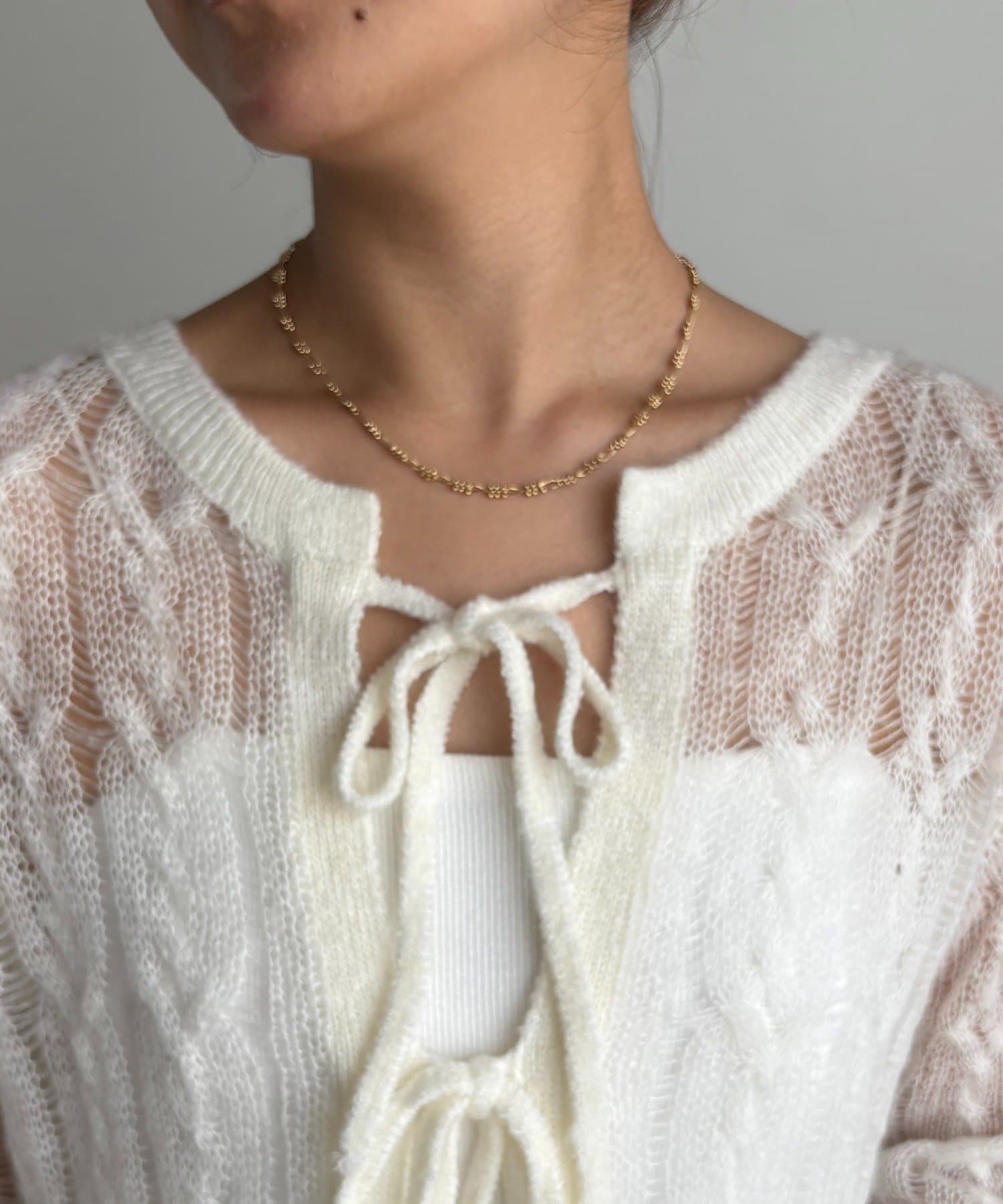 ・一番上のリボンを開けるとすっきりとしたVネックで着られる
