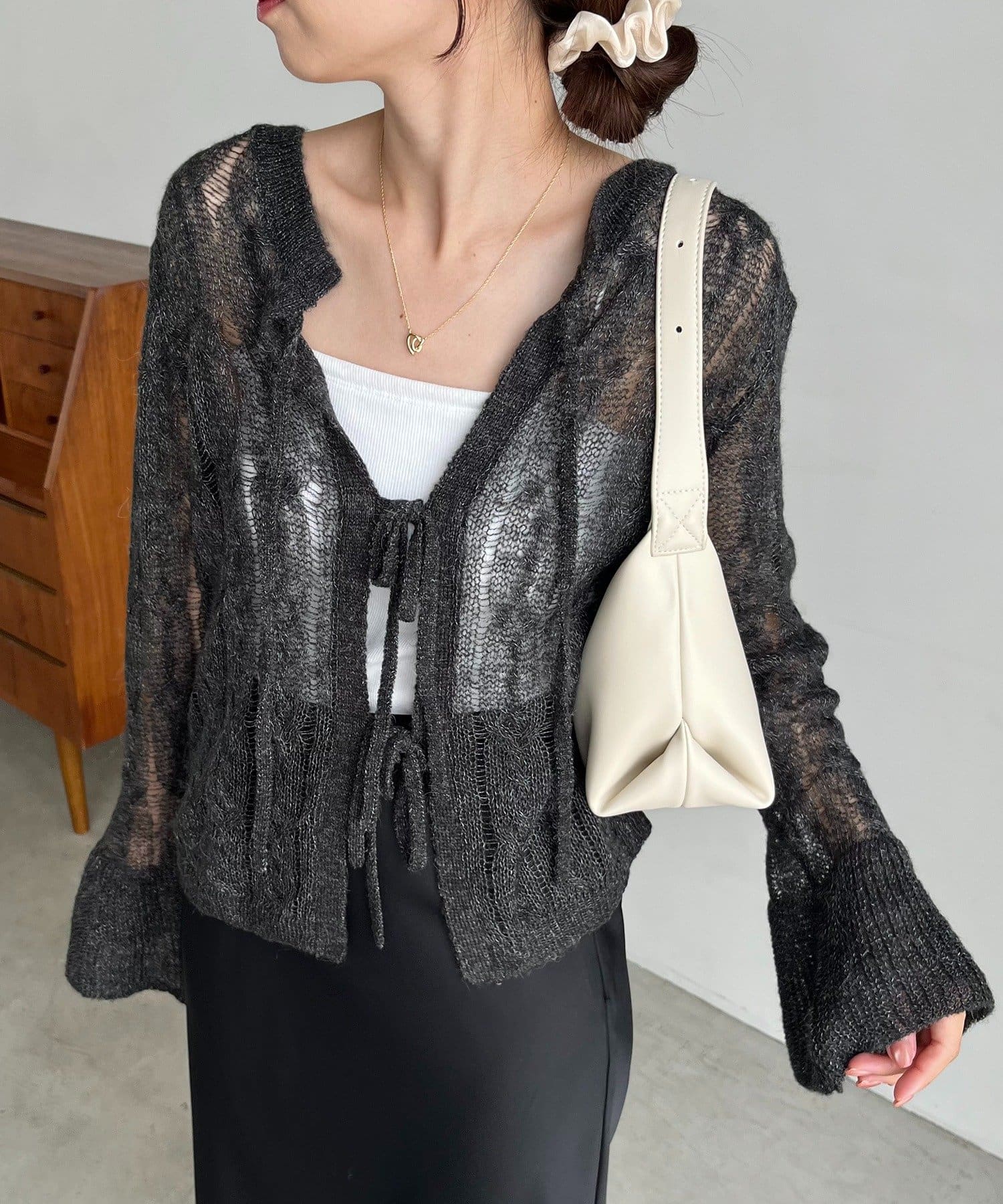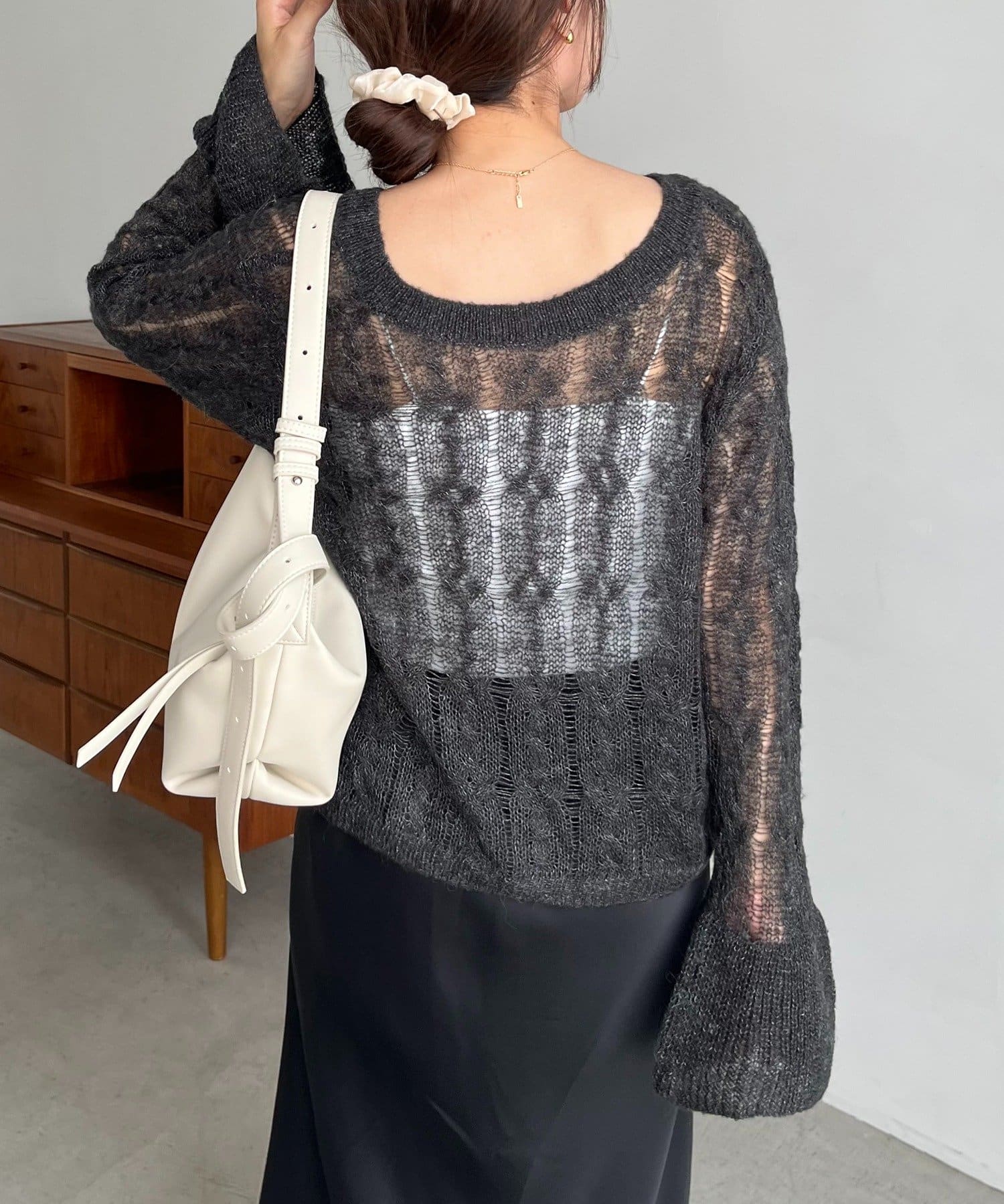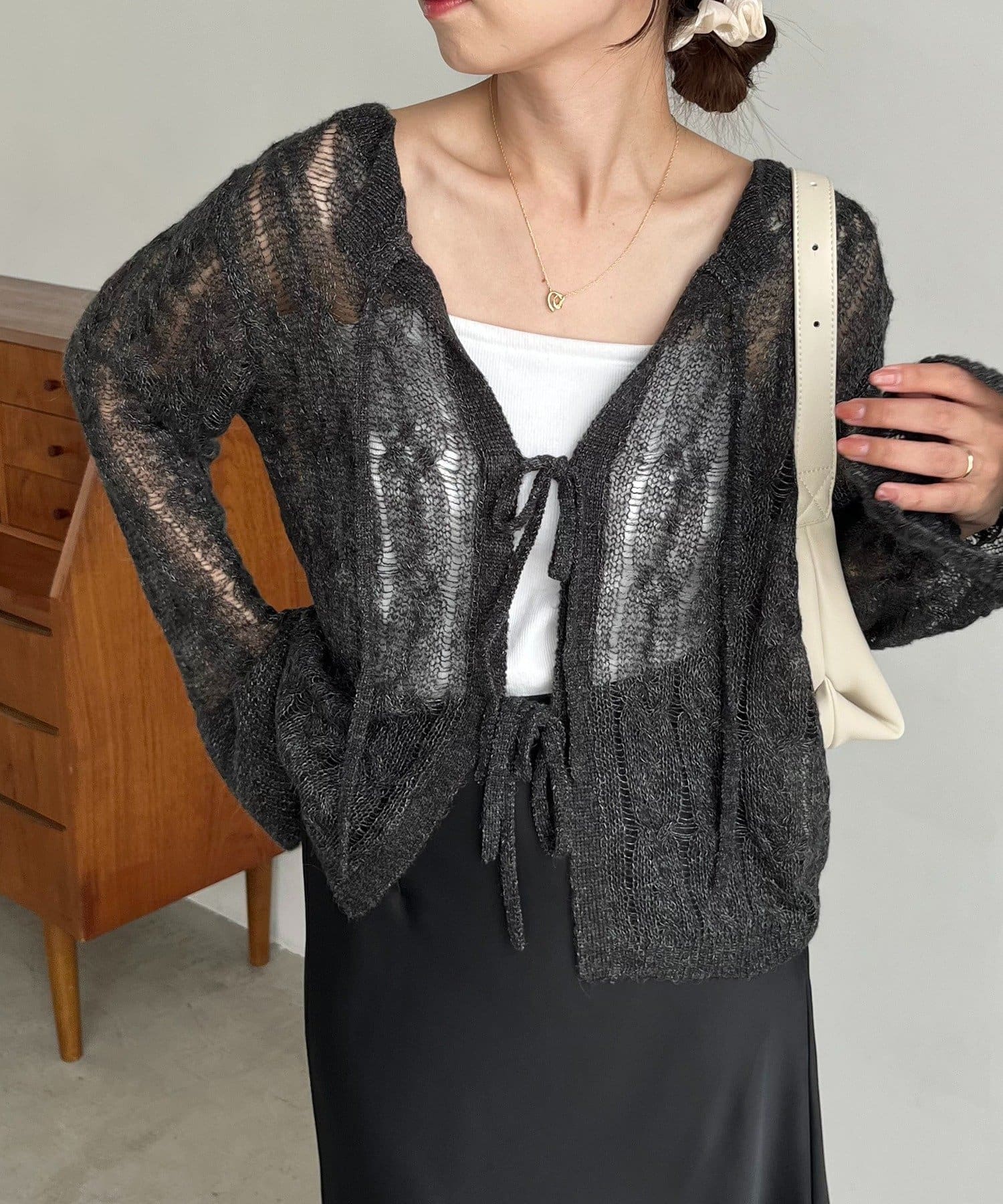 ・一番上のリボンを開けるとすっきりとしたVネックで着られる