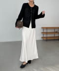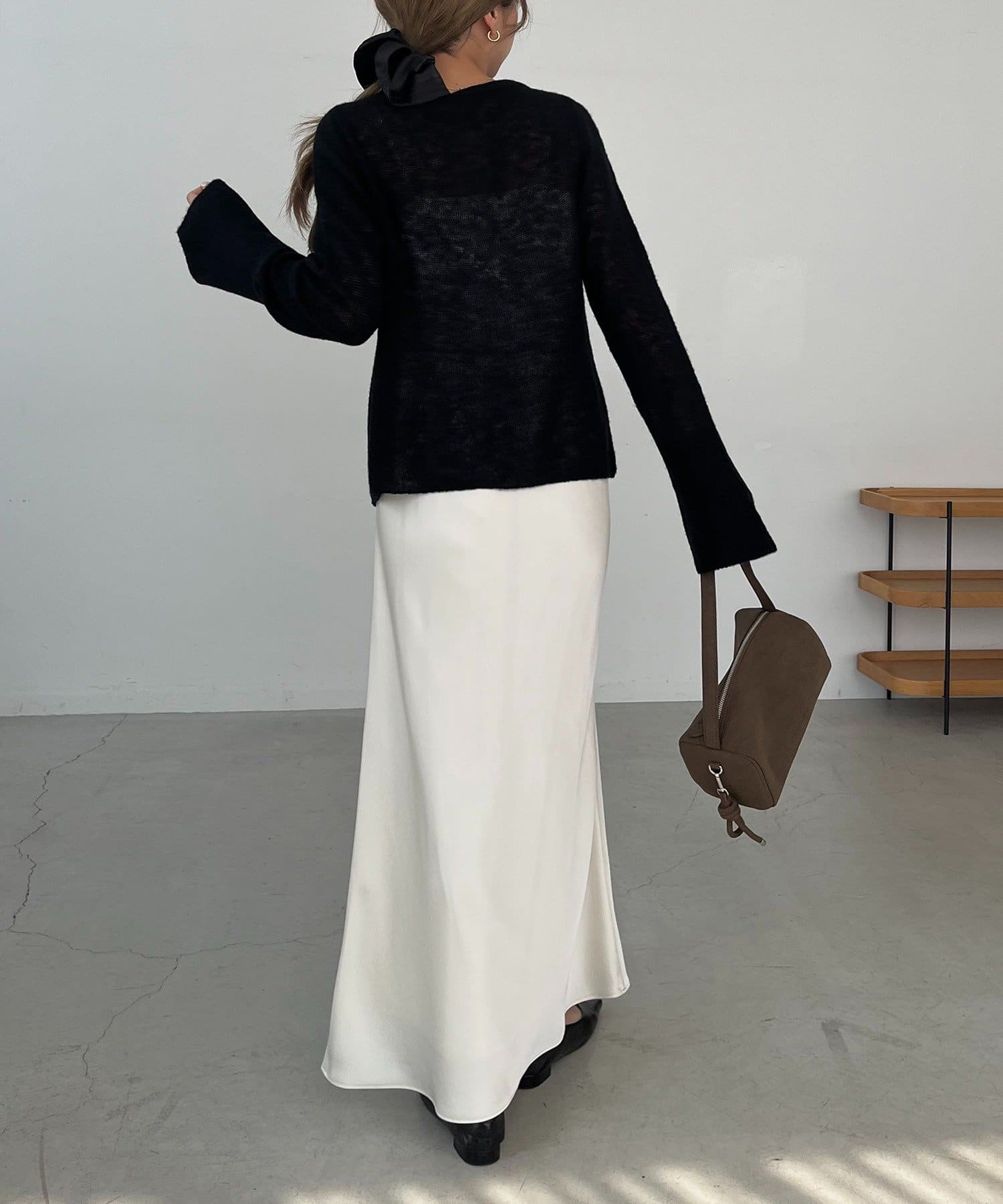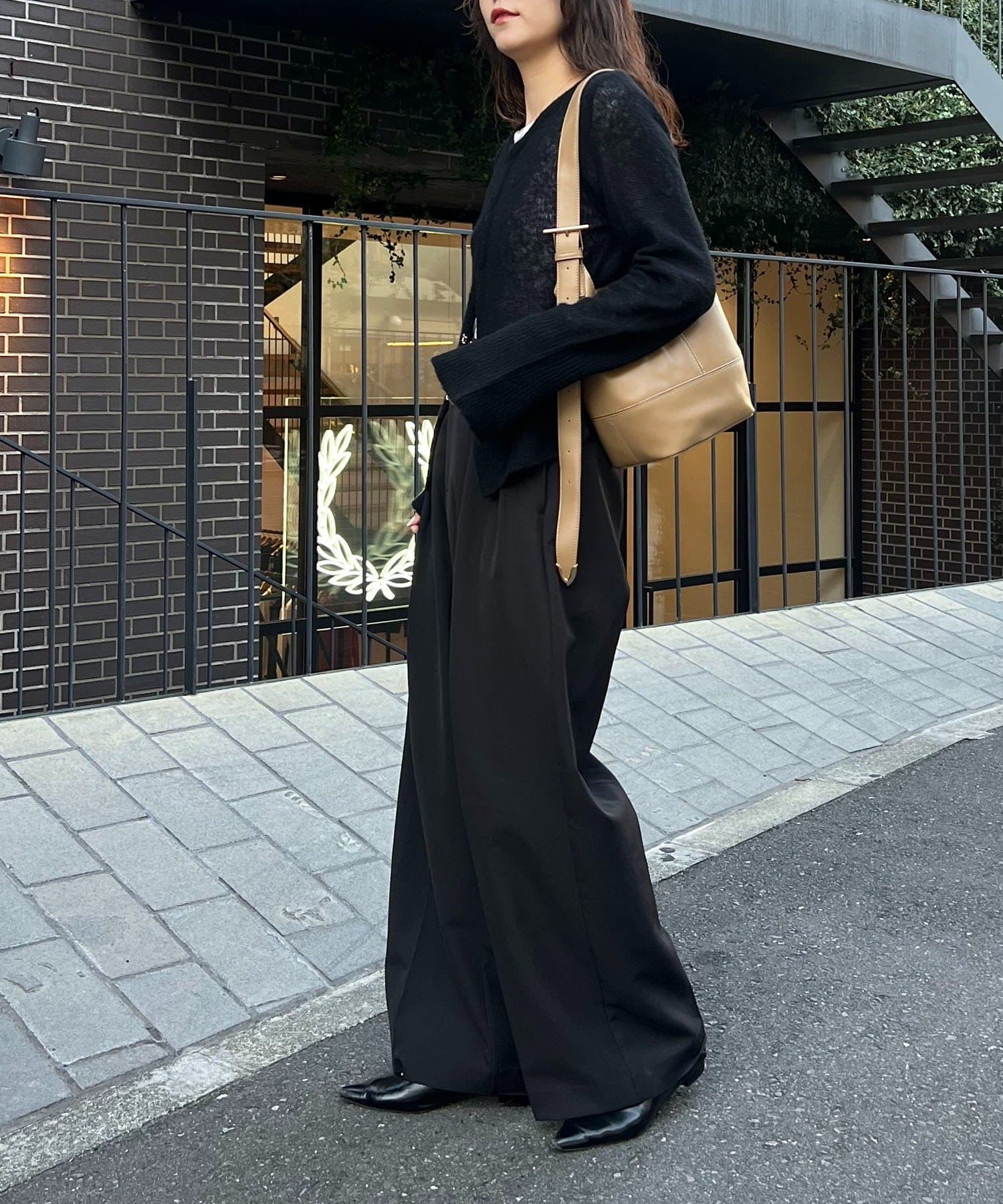 ・同素材のテンセルウールマキシワンピースに肩掛けや腰に巻いてスタイリング可能