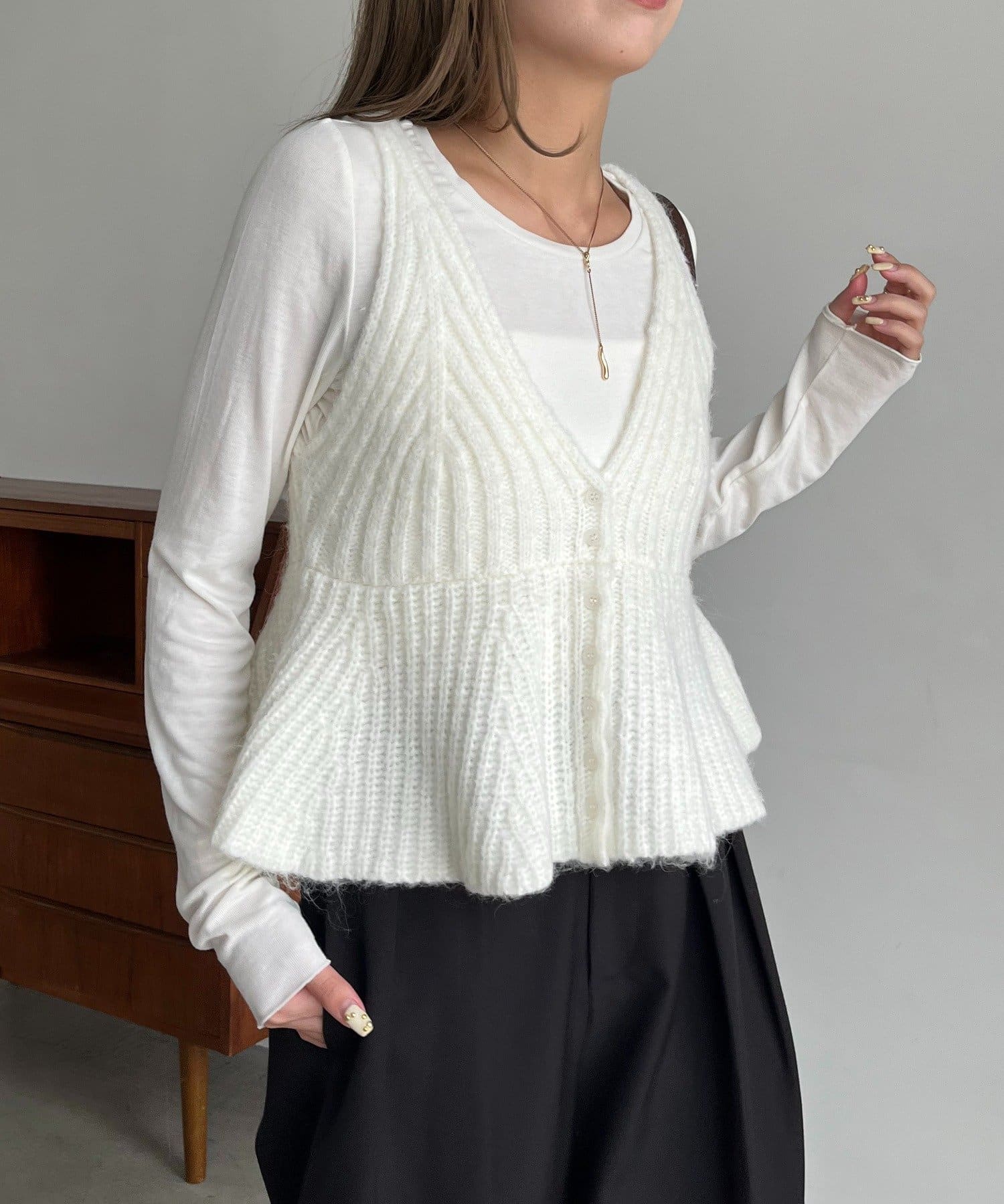 ・毛足のあるミドルゲージのニットで季節感のある1枚