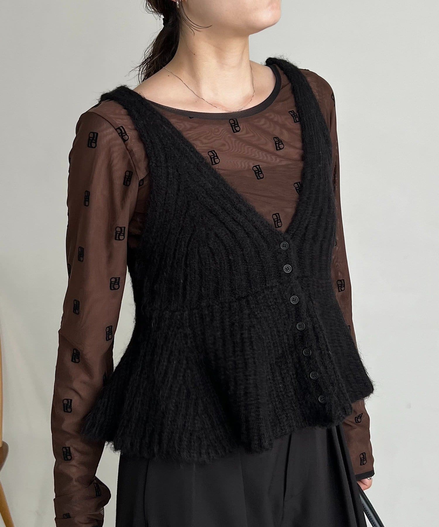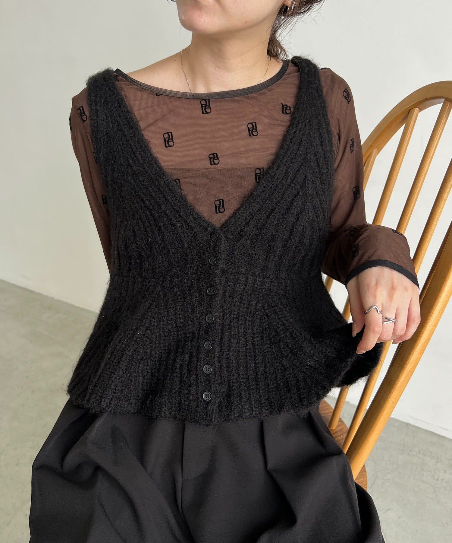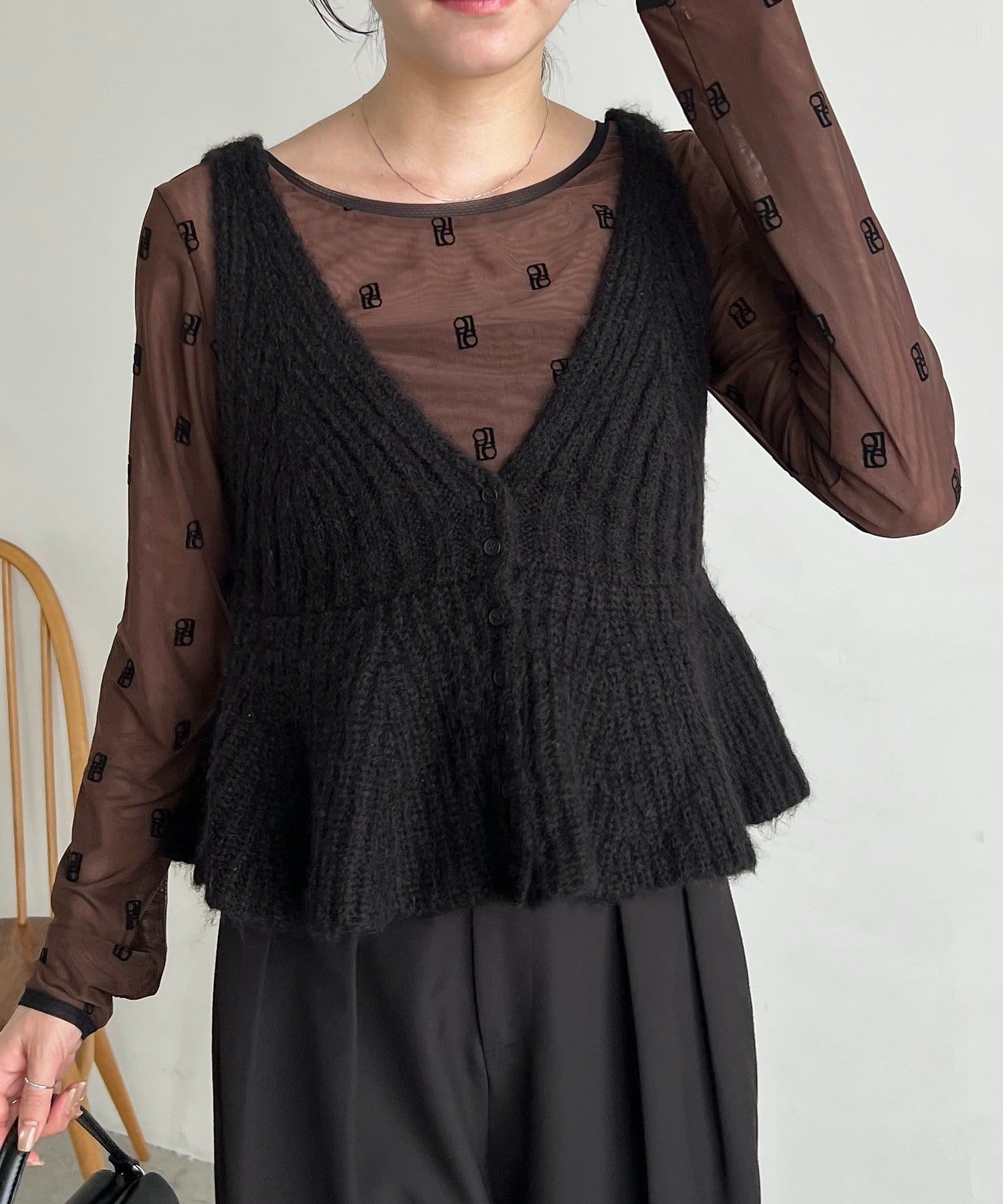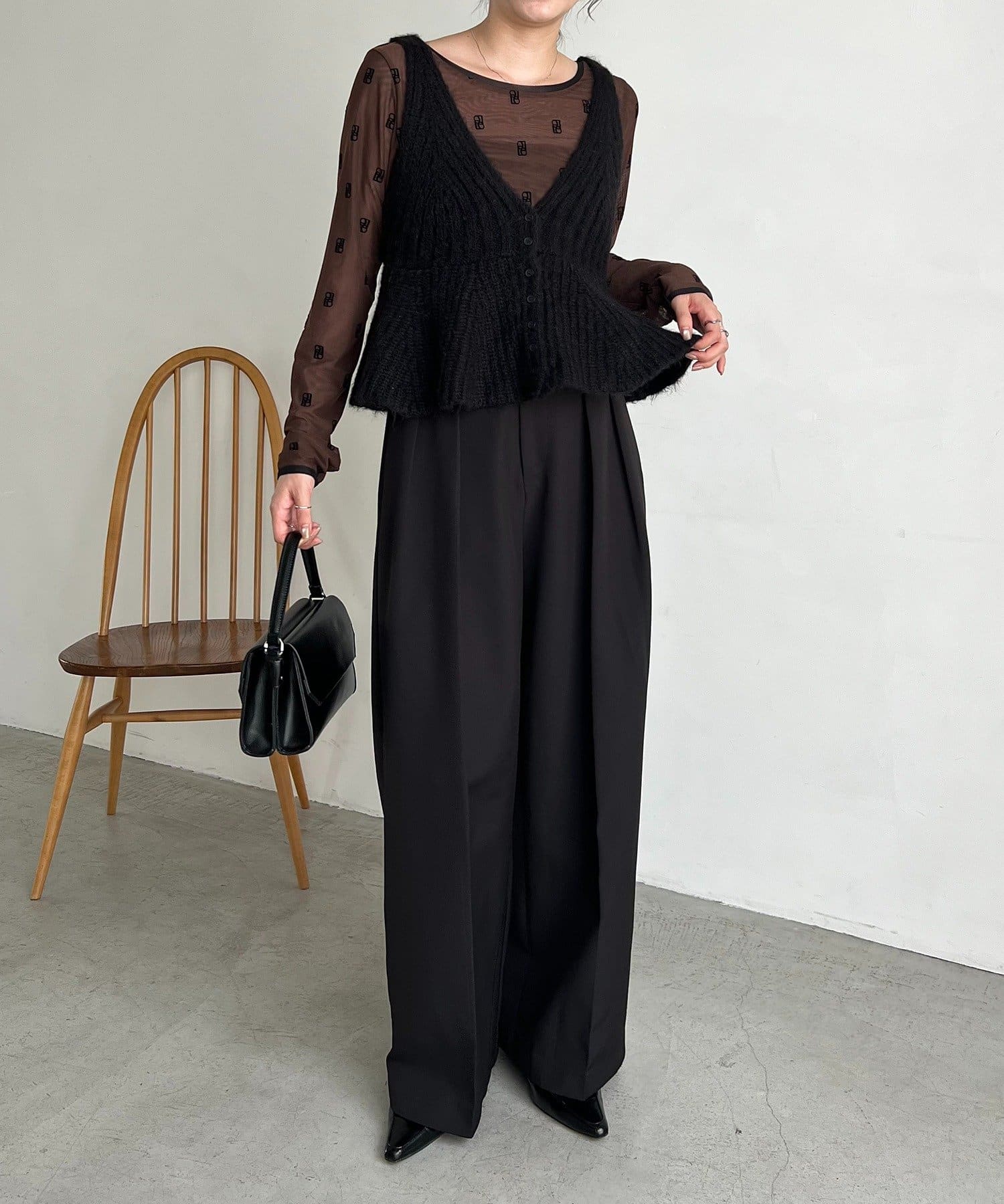 【ブラック着用アイテム①】2WAYモノグラムシアーT・2タックワイドパンツ