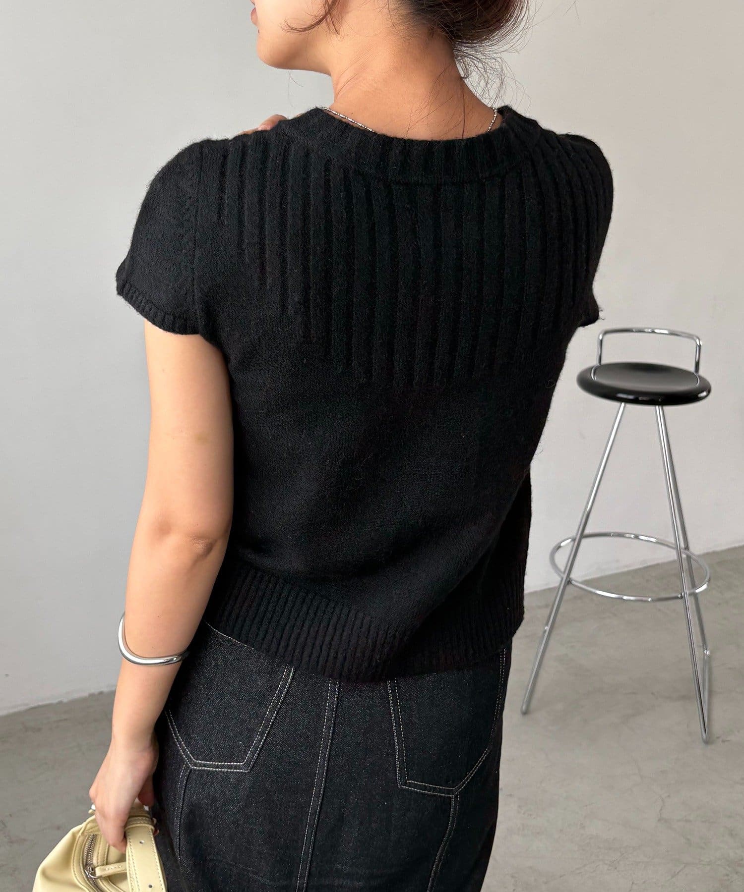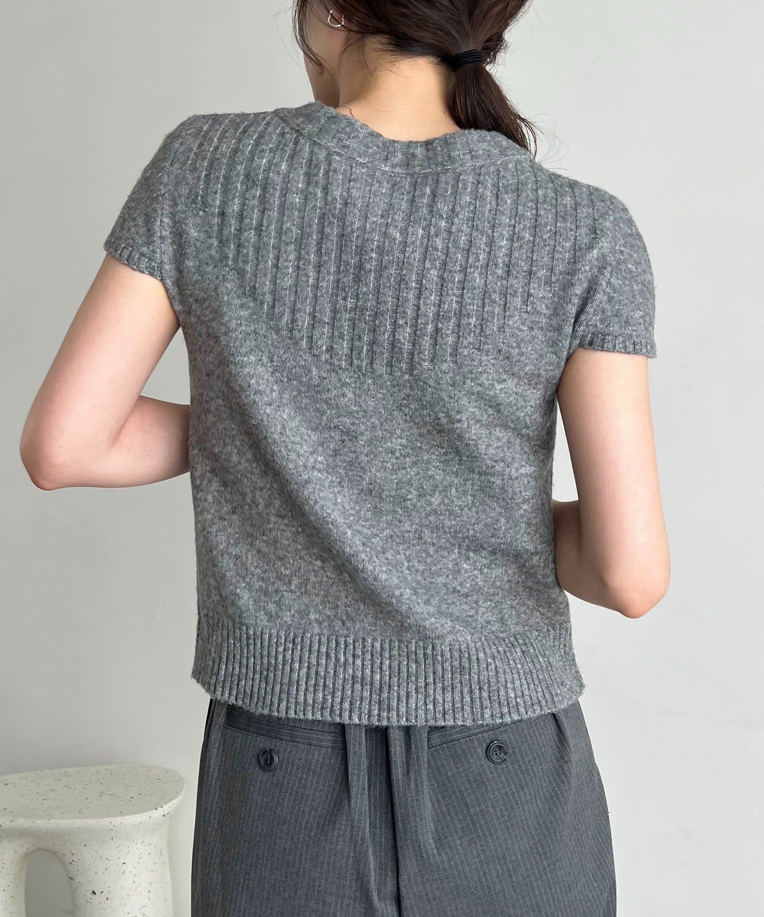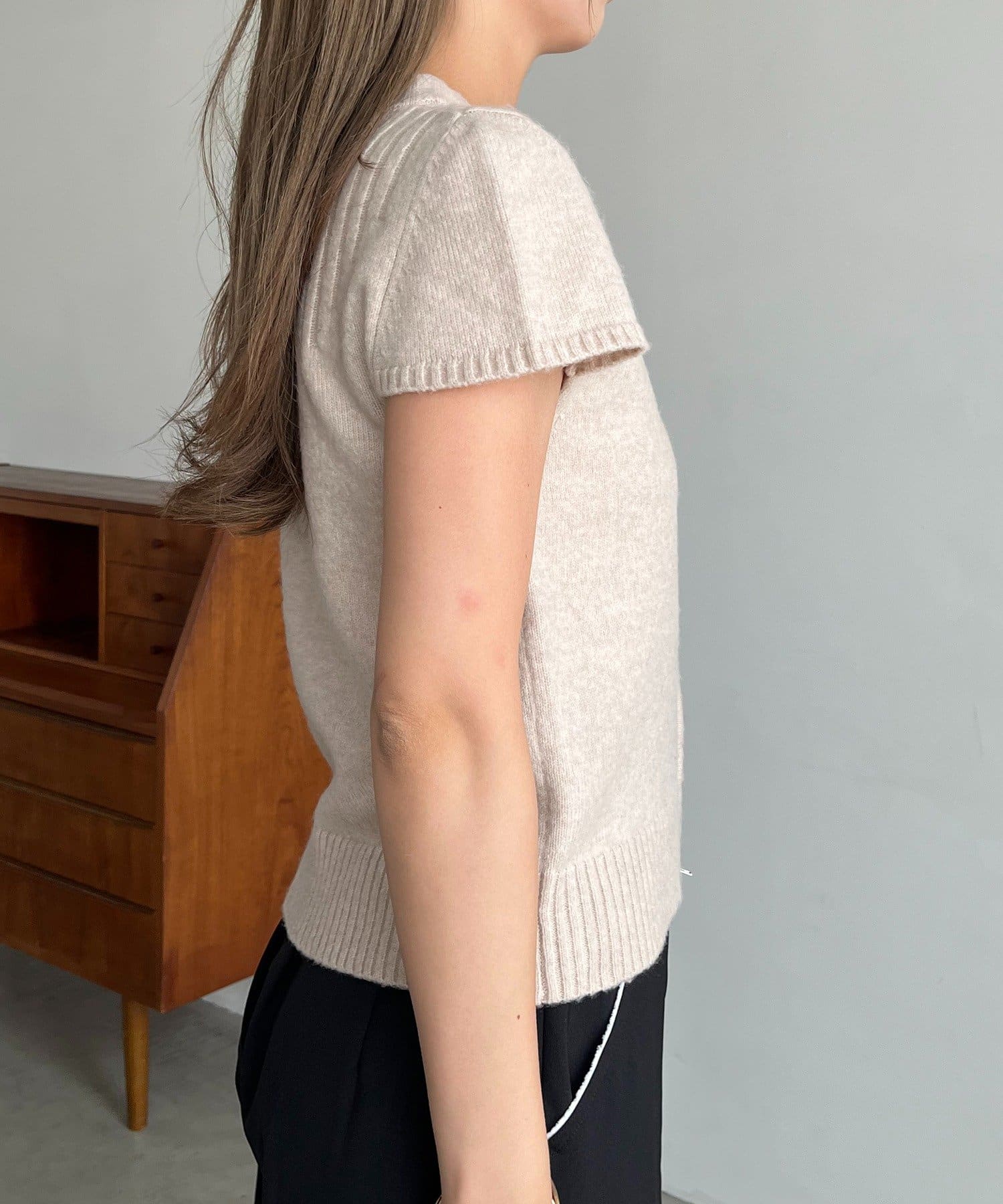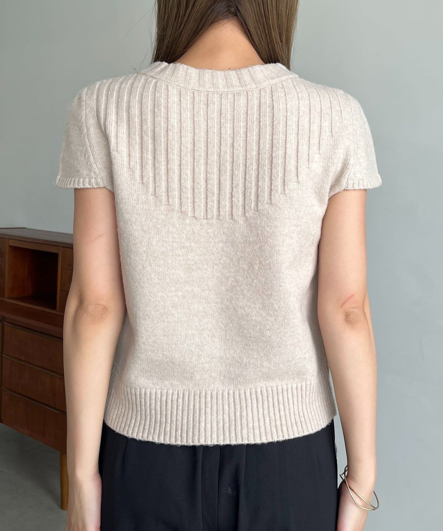 コンパクトなチビ袖がかわいい半袖ニット