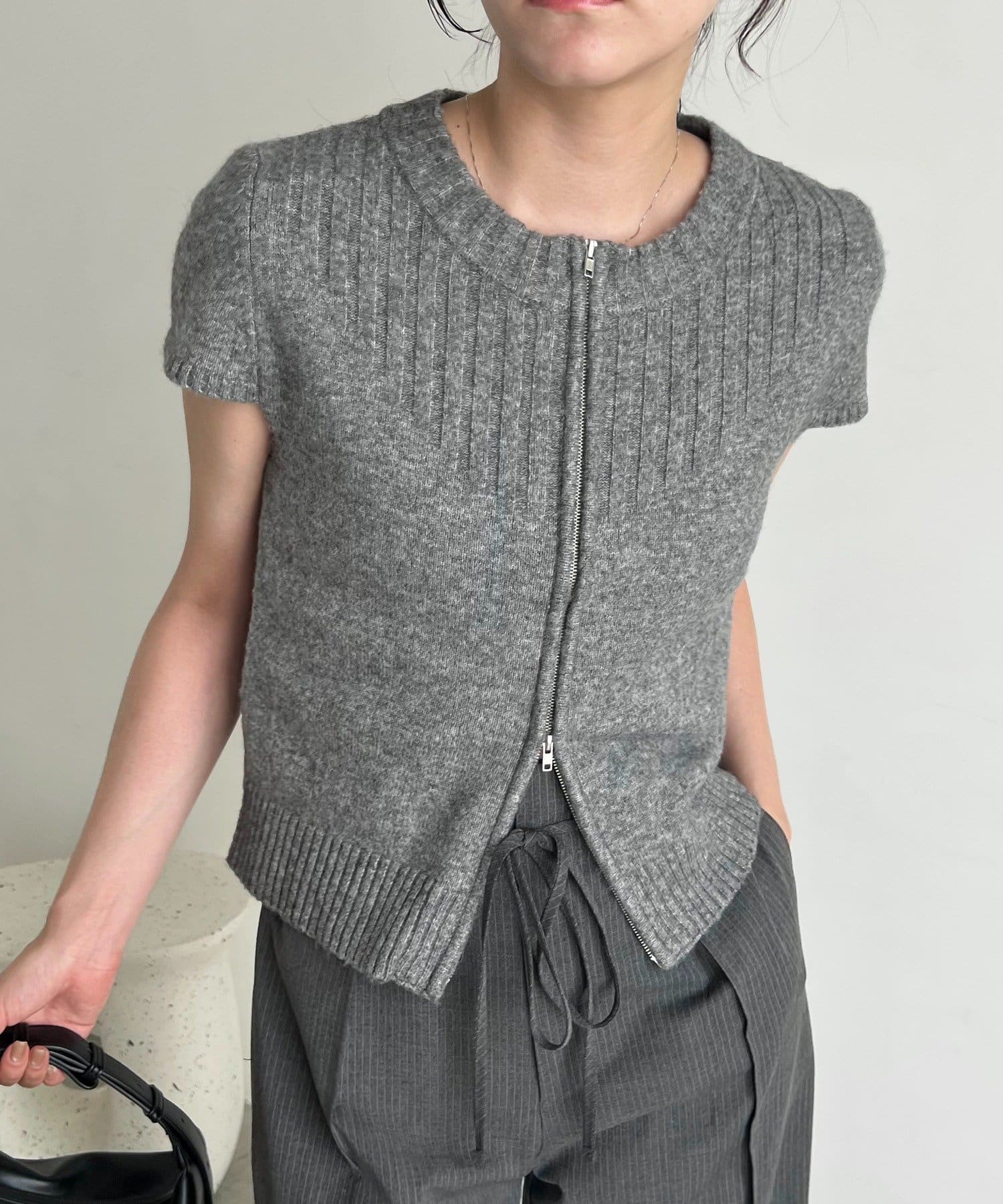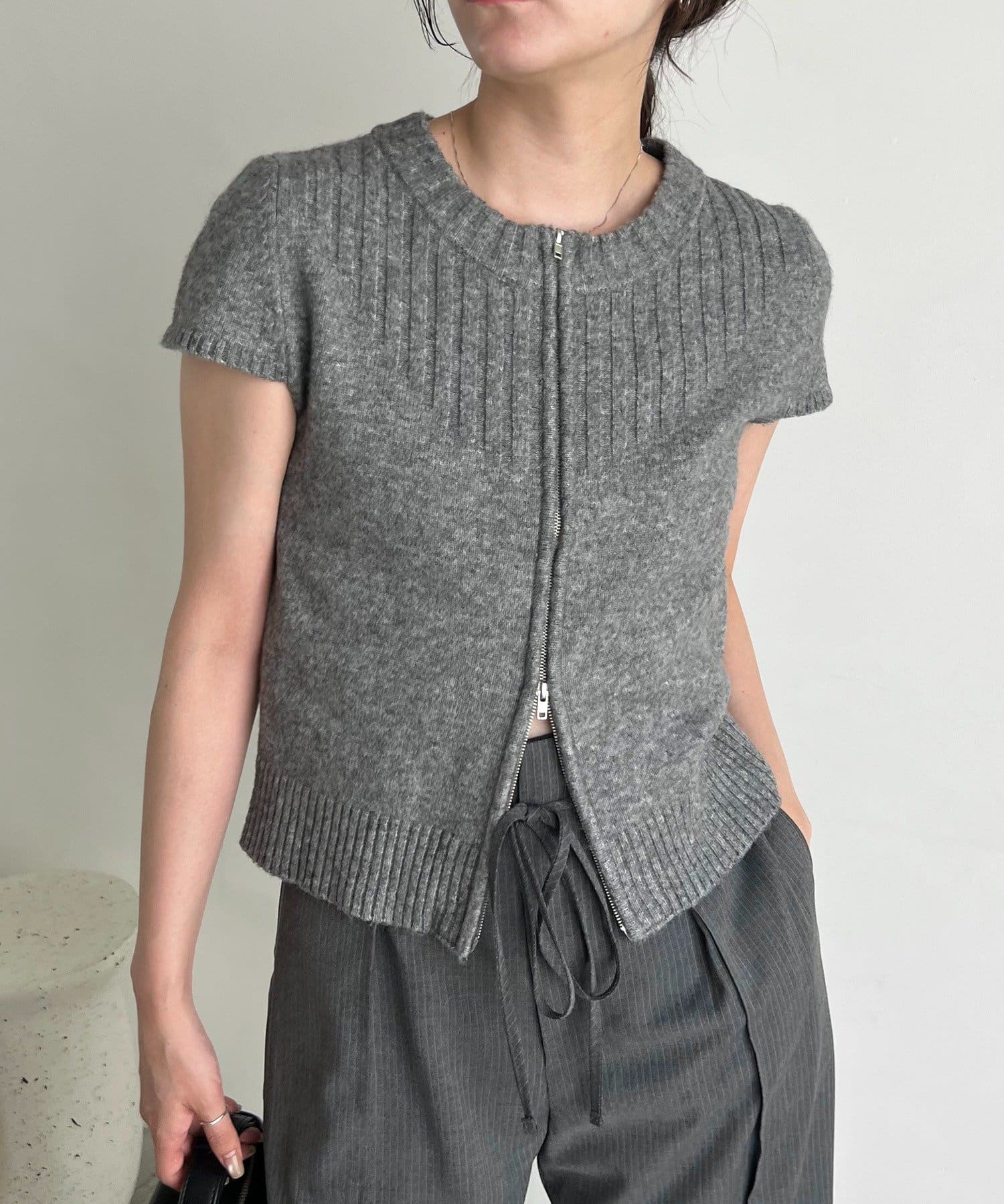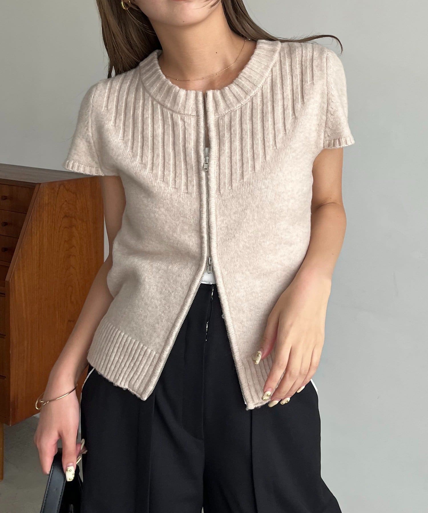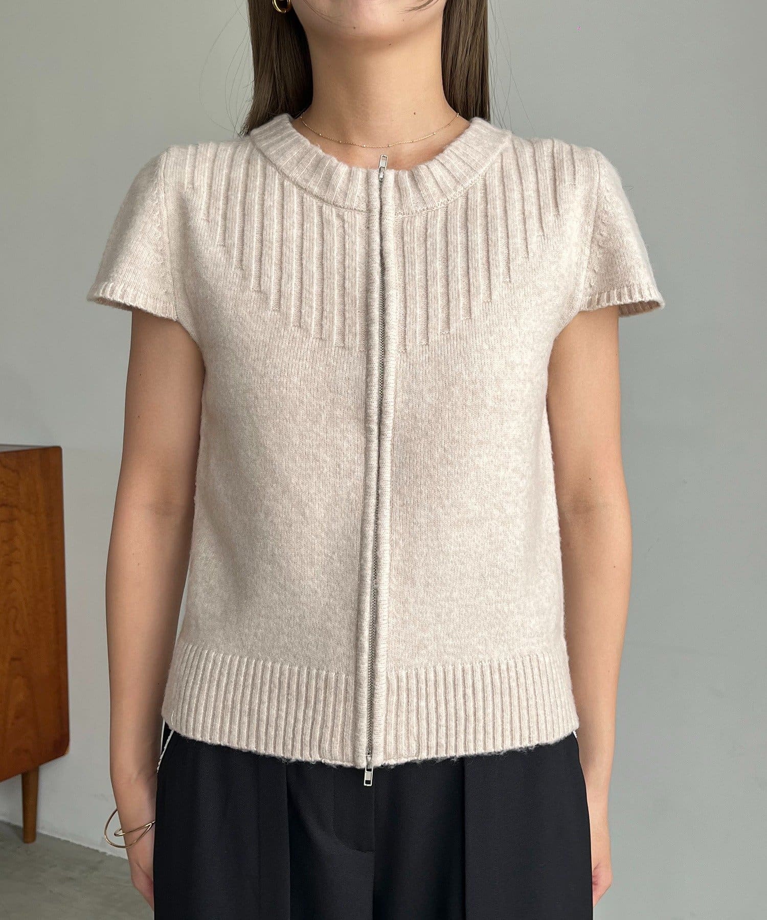 【CAPRICIEUX LE'MAGE】ミニスリーブZIPニット