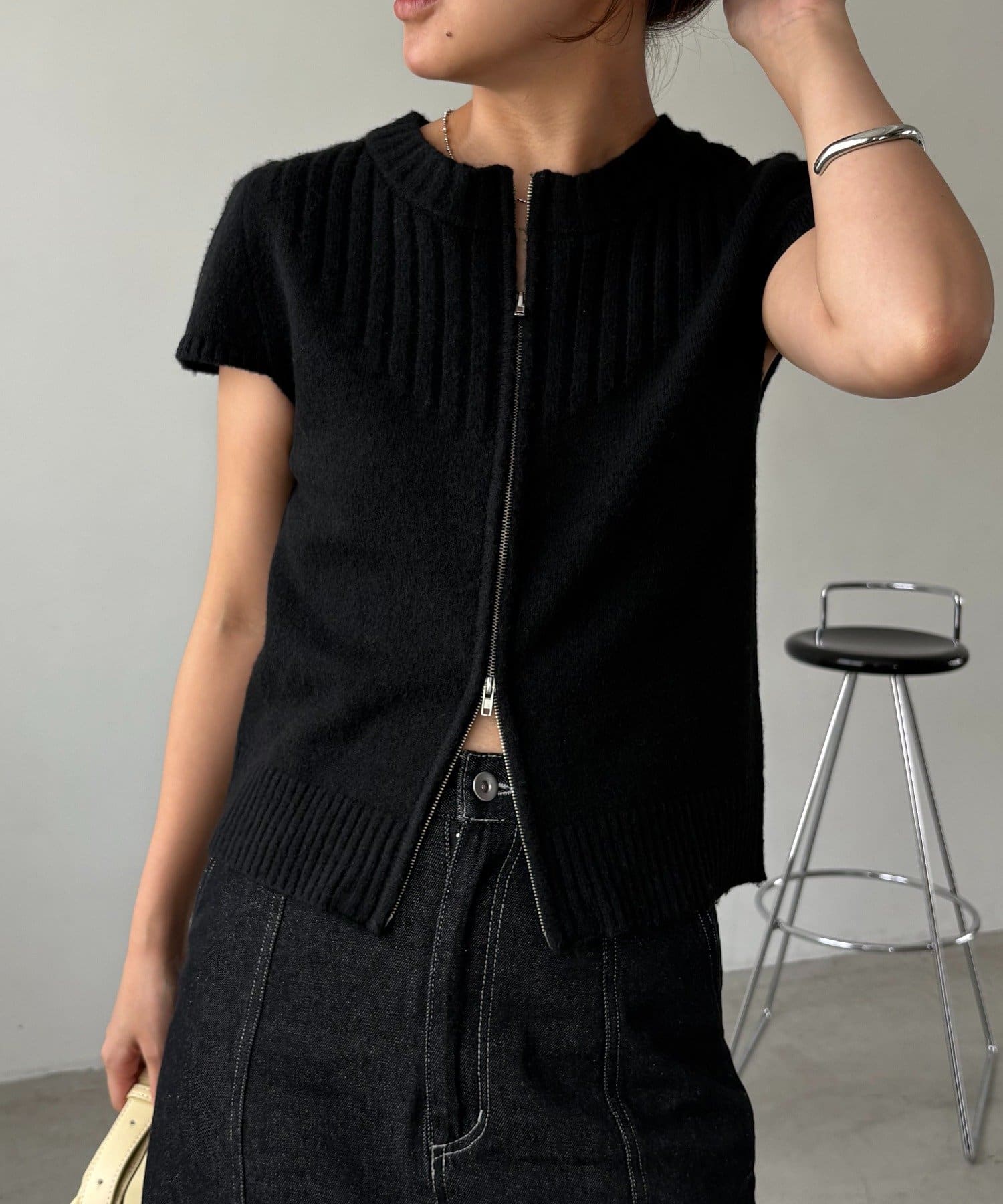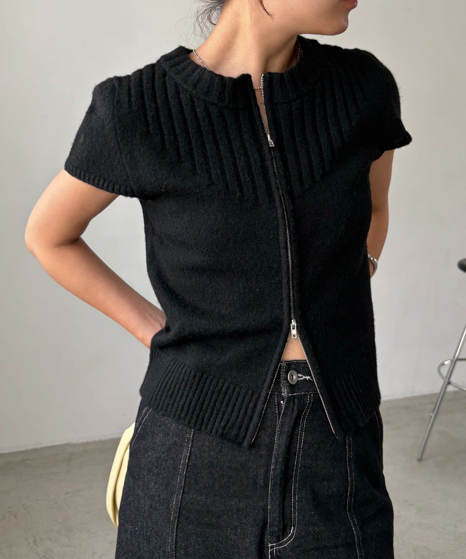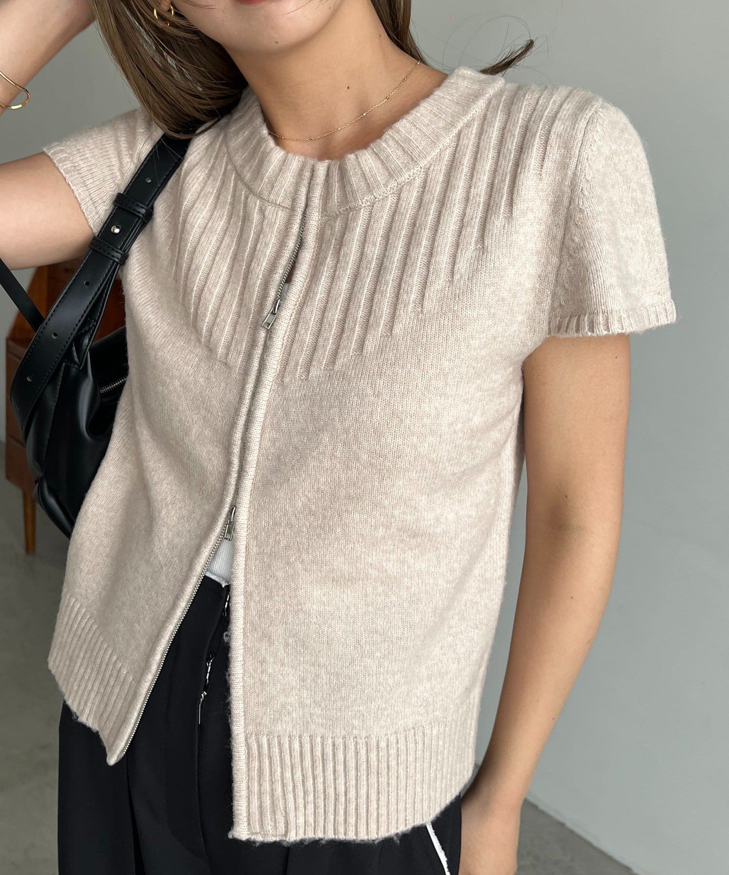 【CAPRICIEUX LE'MAGE】ミニスリーブZIPニット