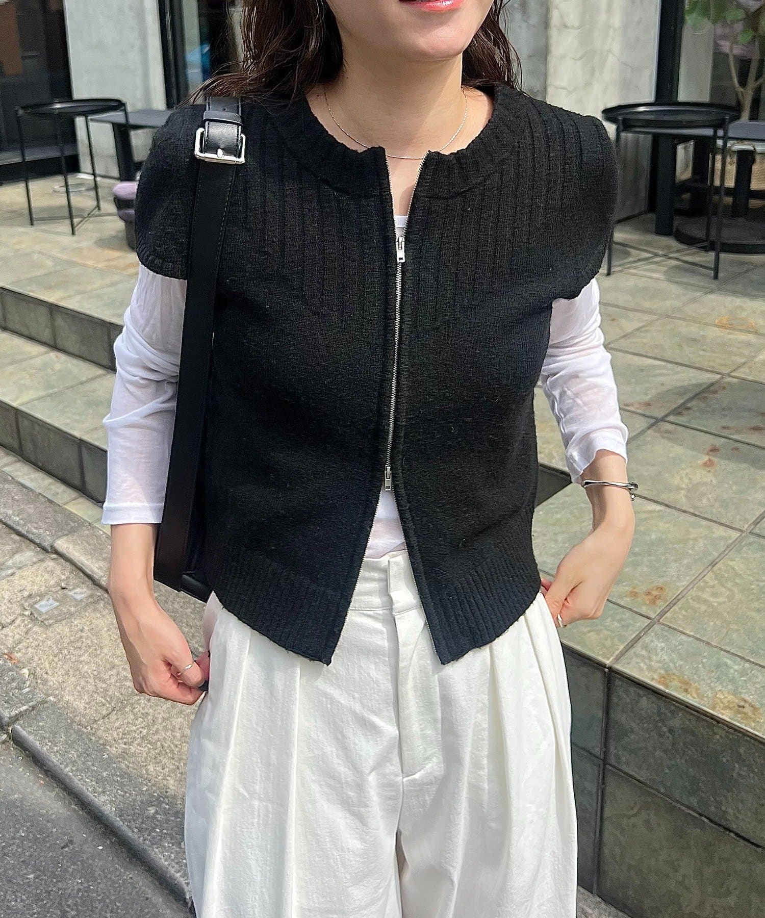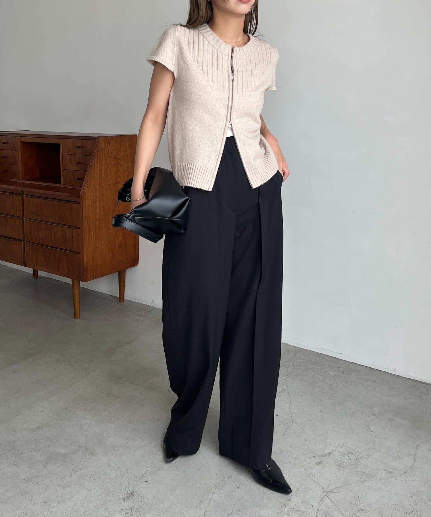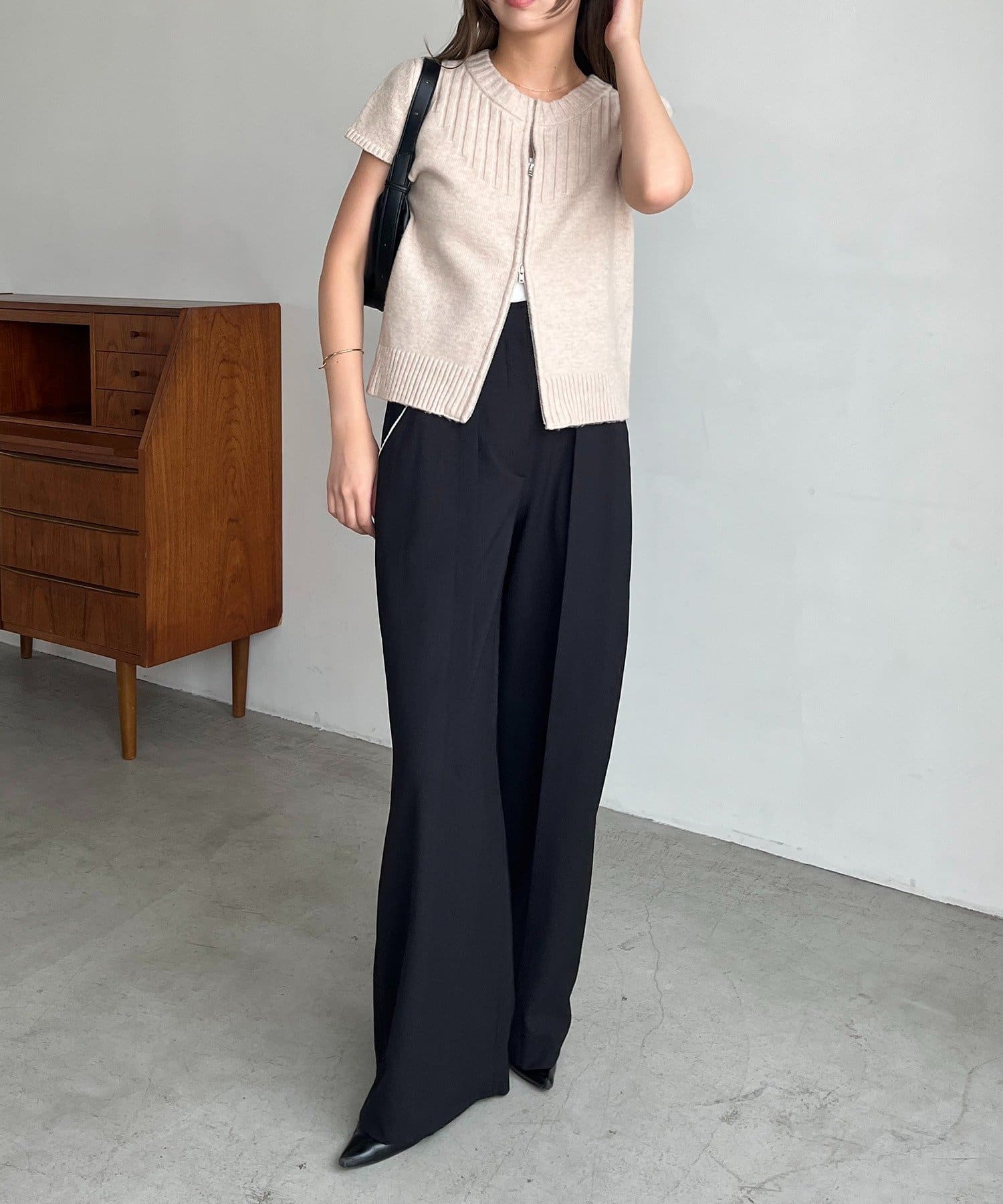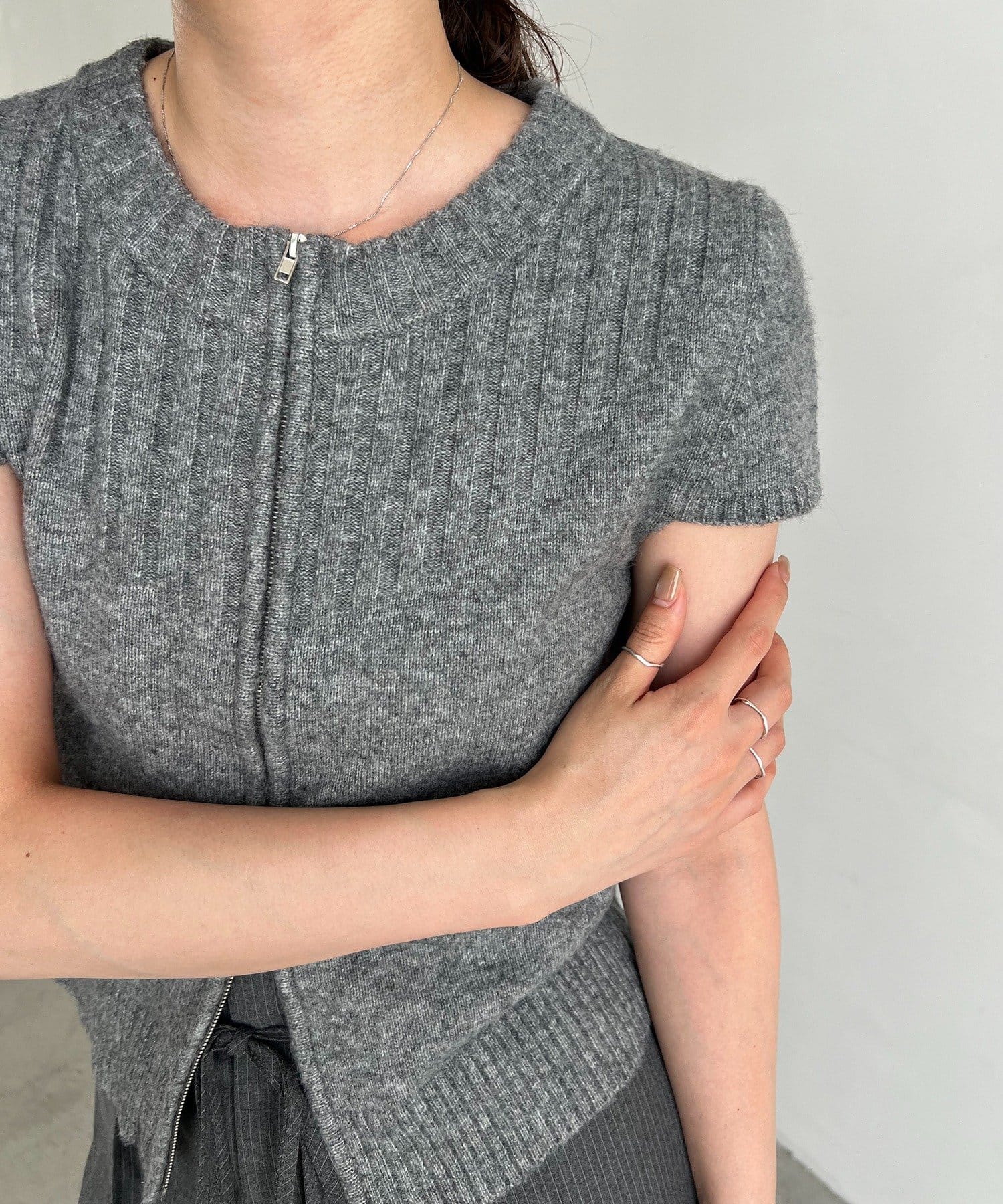 【CAPRICIEUX LE'MAGE】ミニスリーブZIPニット
