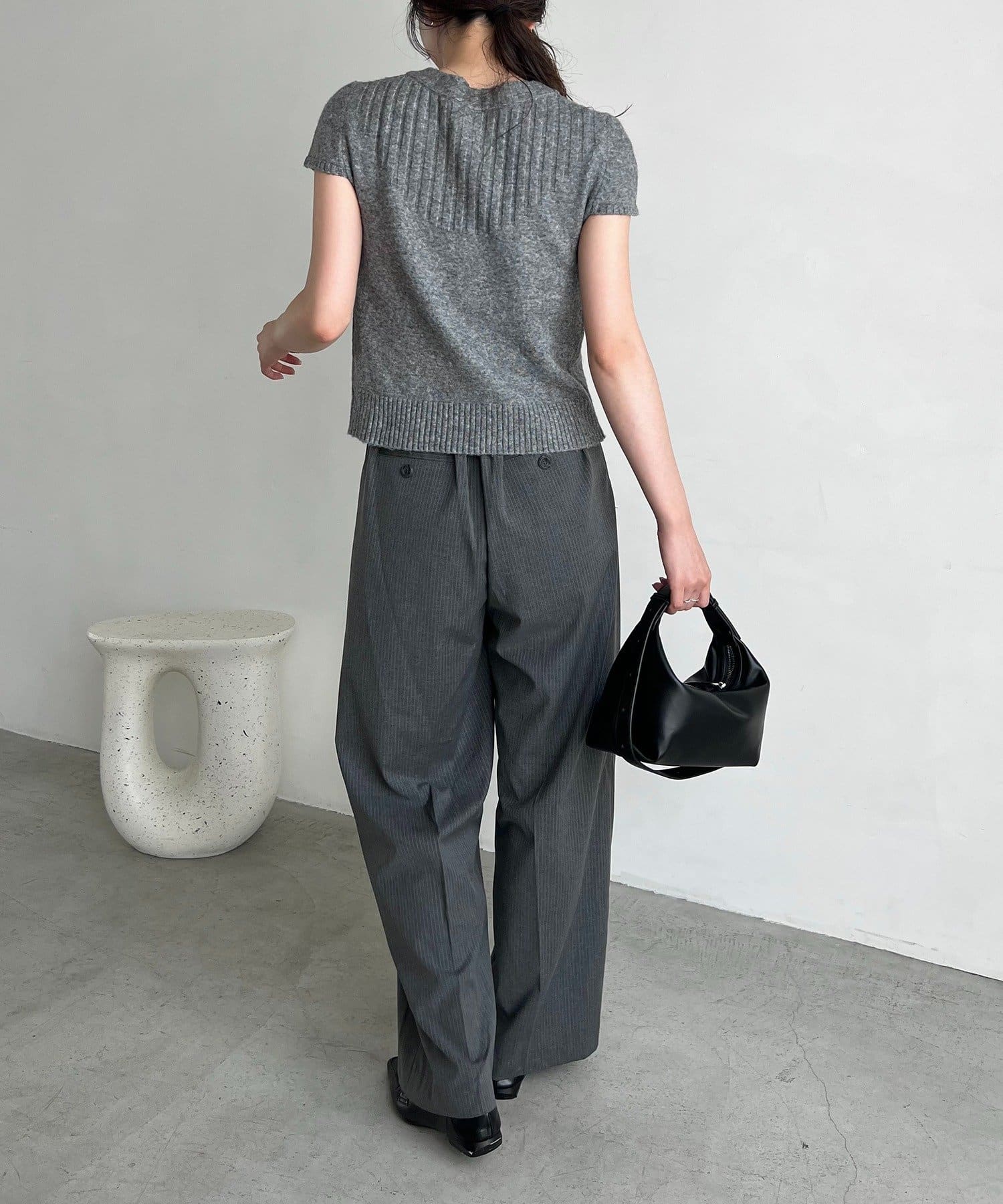 【グレー着用アイテム】ウエストリボンストライプパンツ