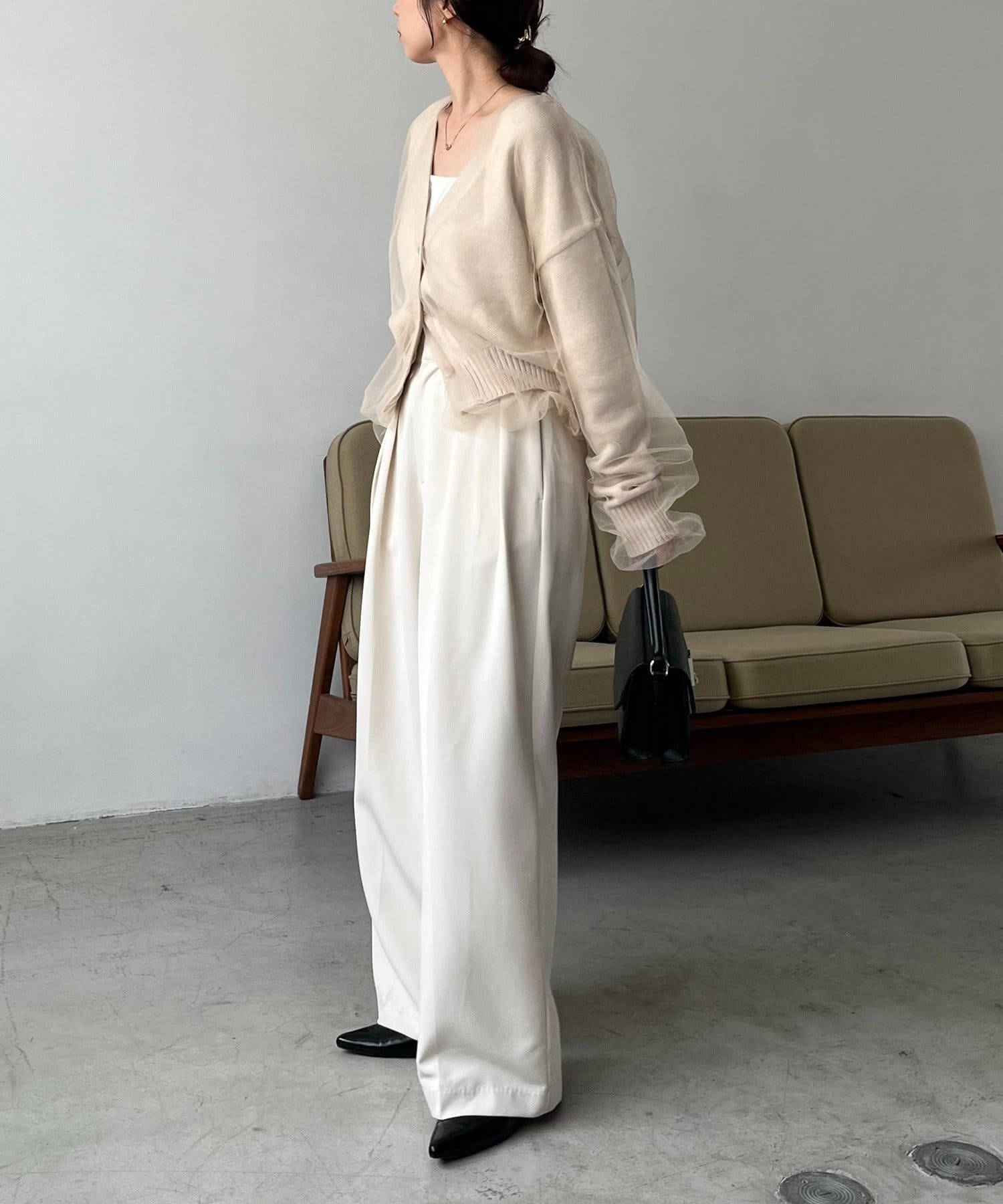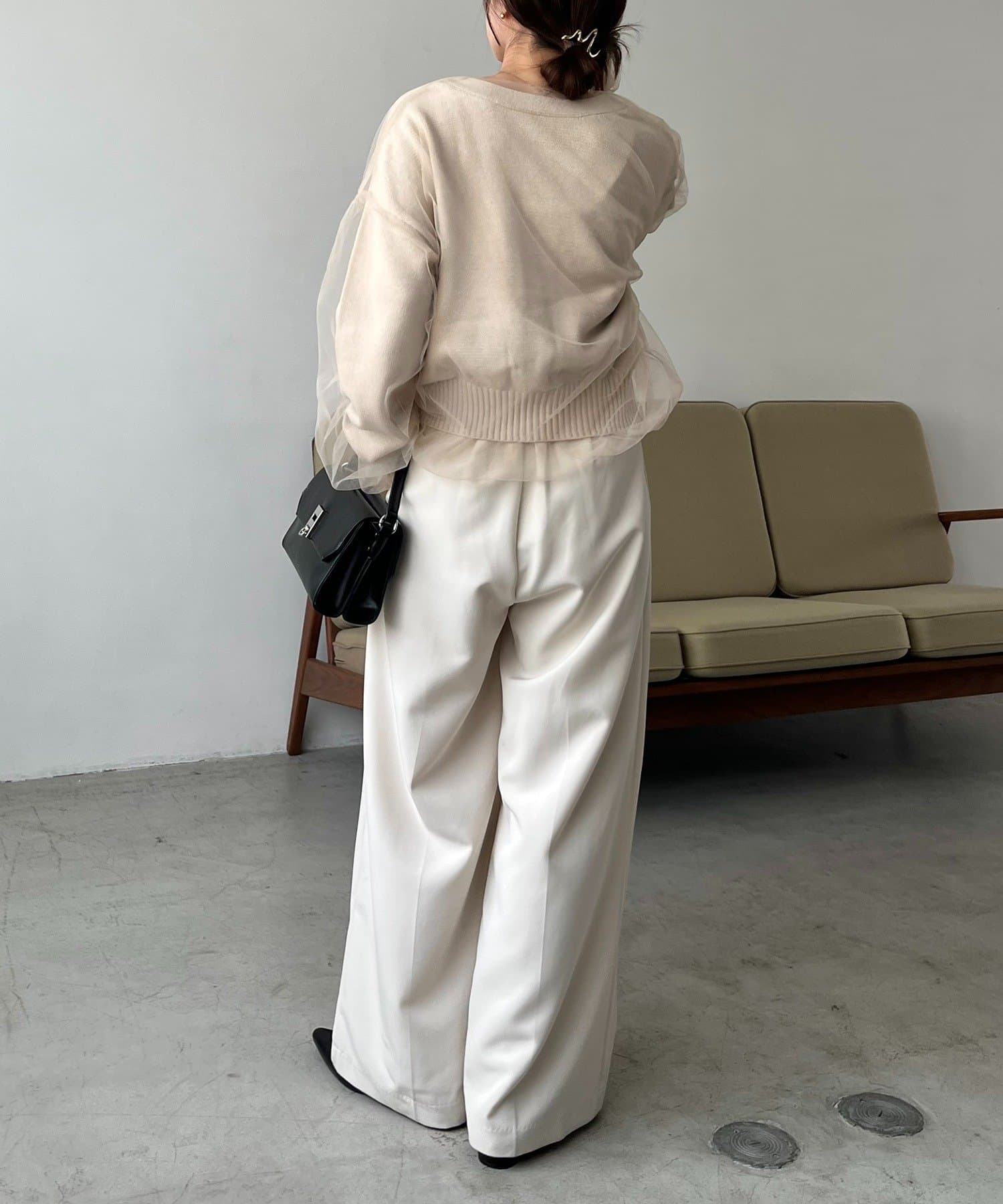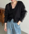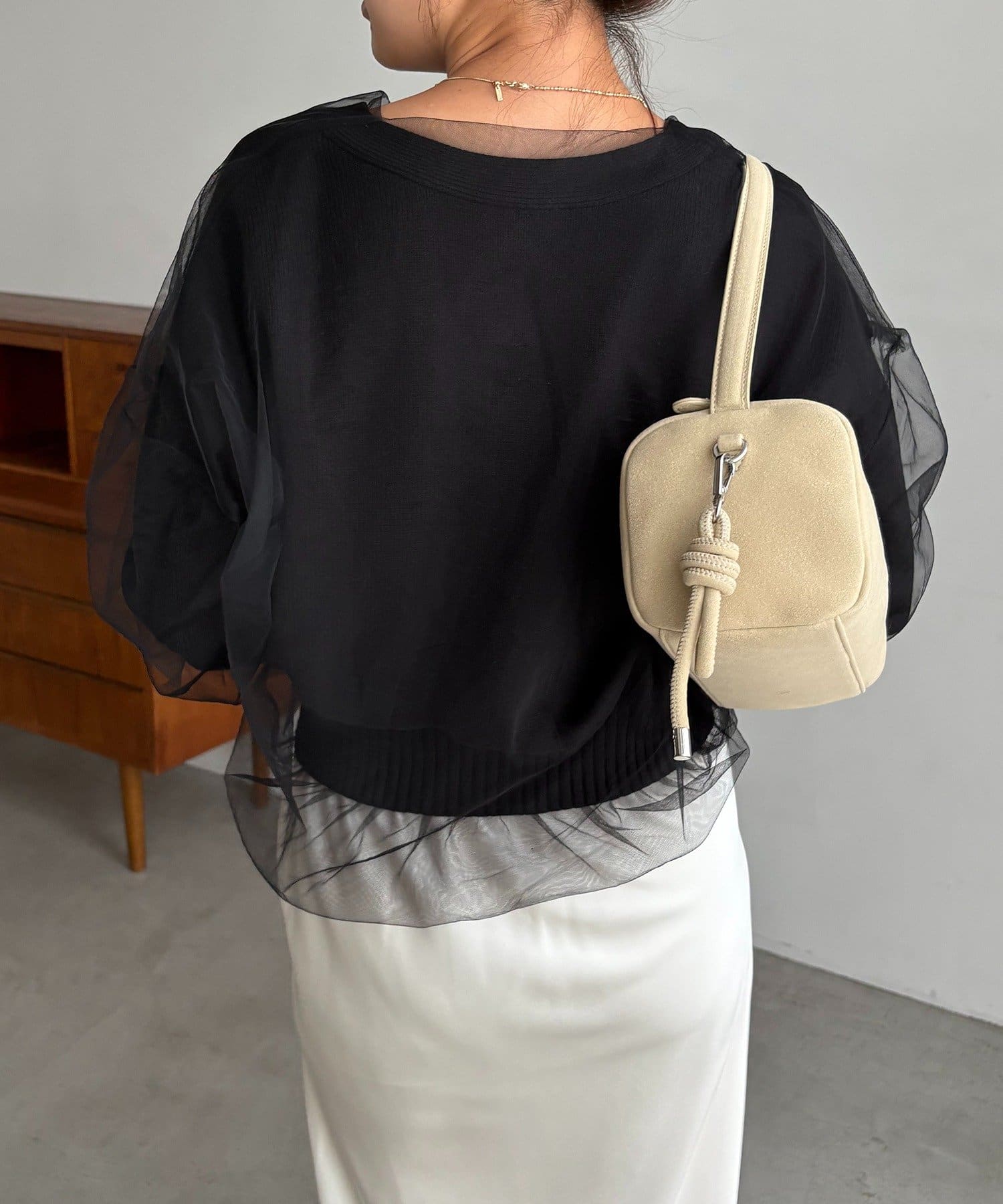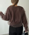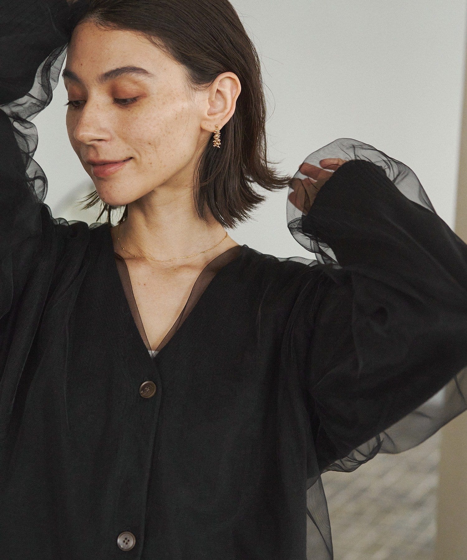 ・前立てや袖口などもチュールに覆われ、ニット部分が見えないことでモード感のある1枚に