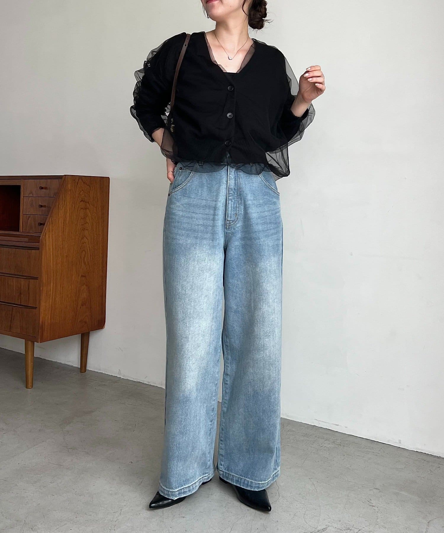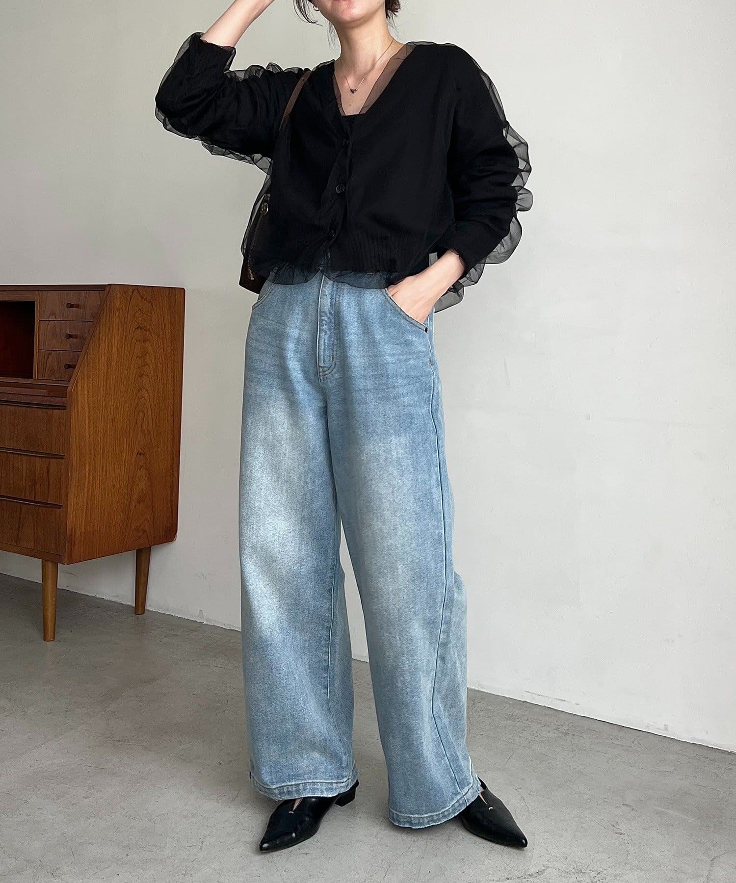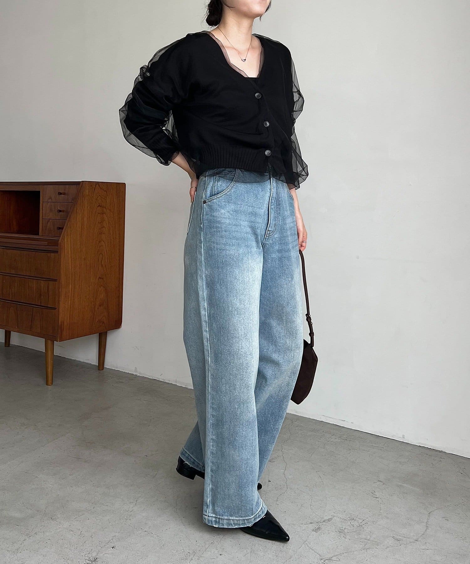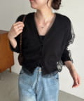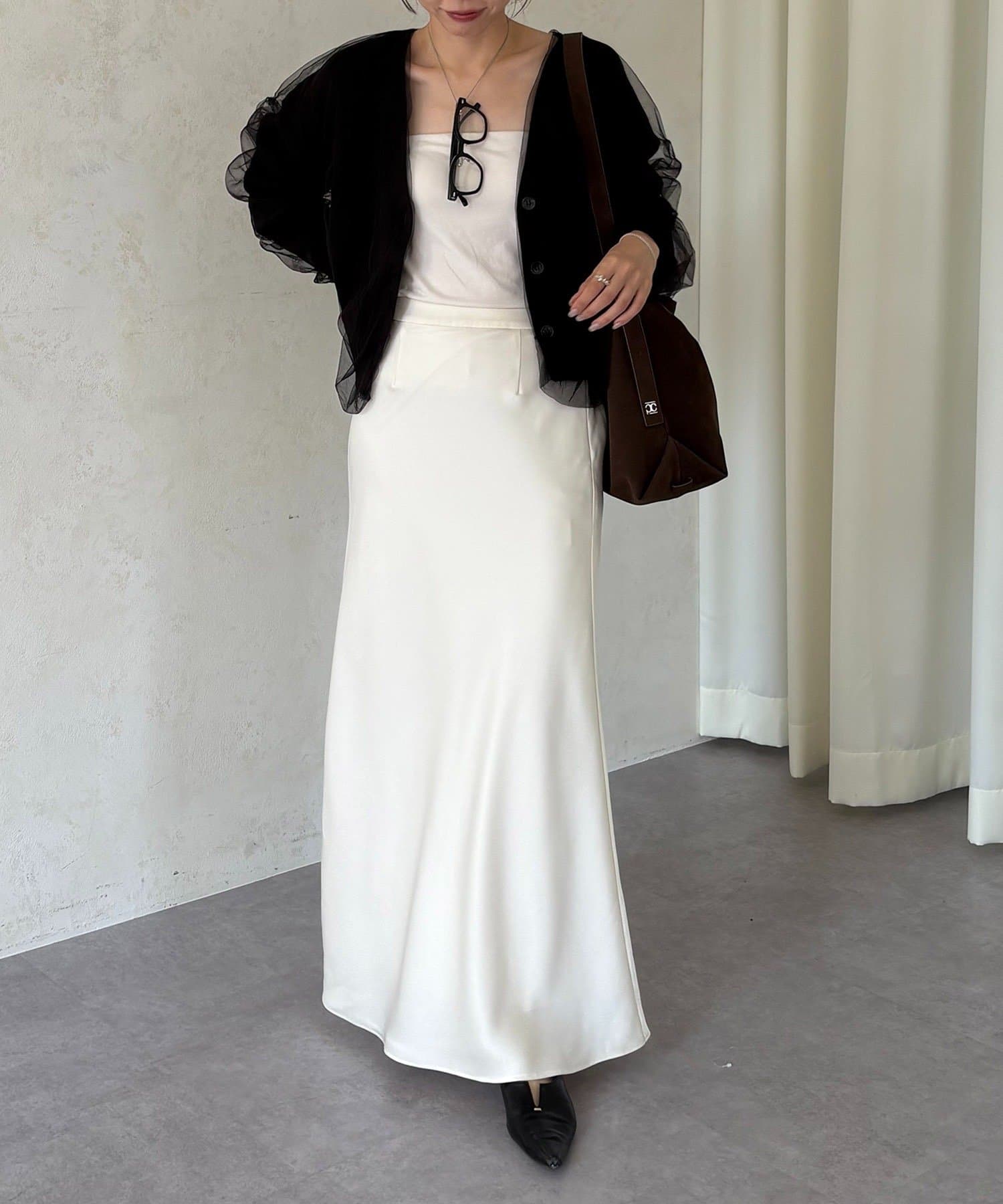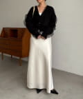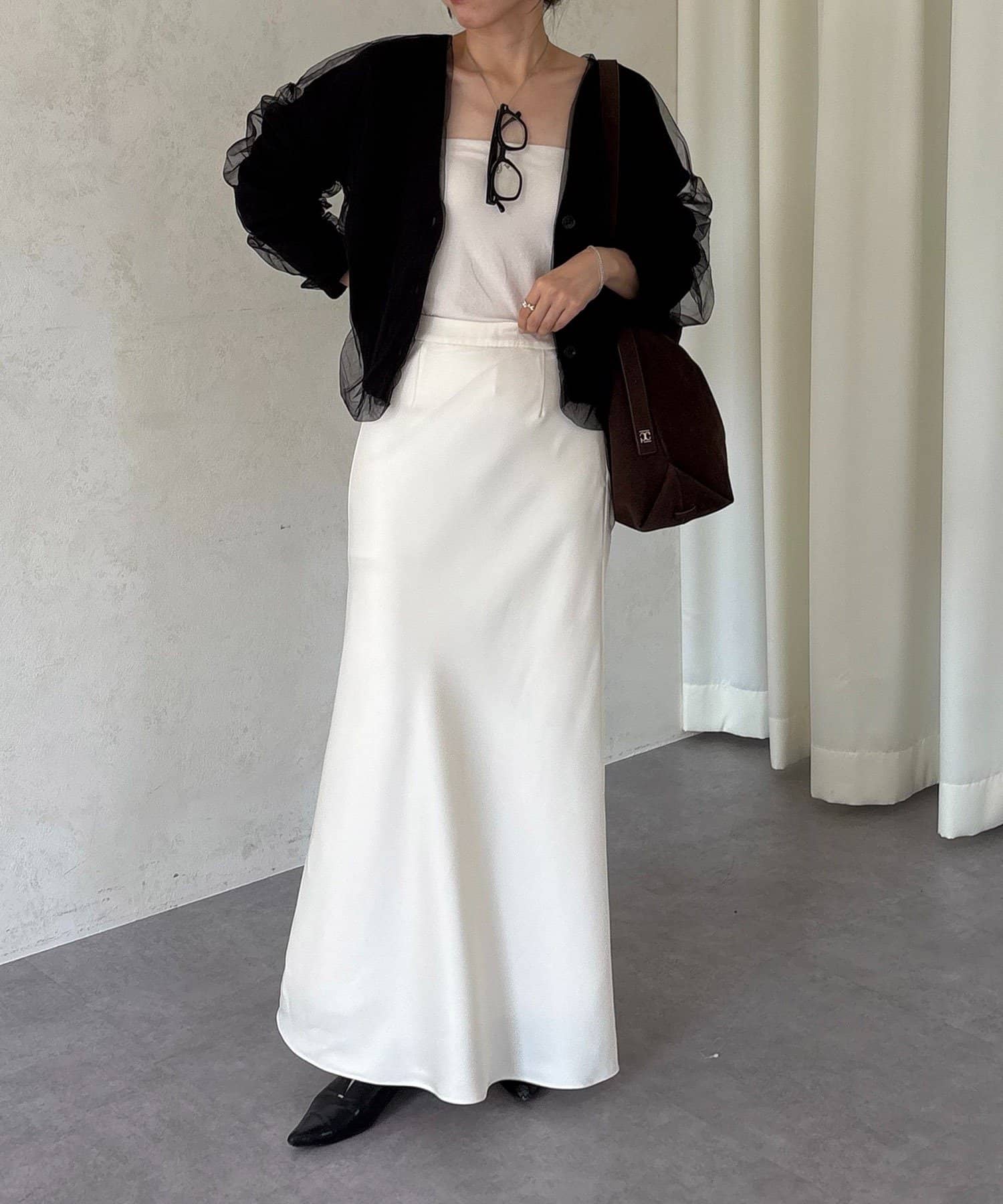 ・前立てや袖口などもチュールに覆われ、ニット部分が見えないことでモード感のある1枚に