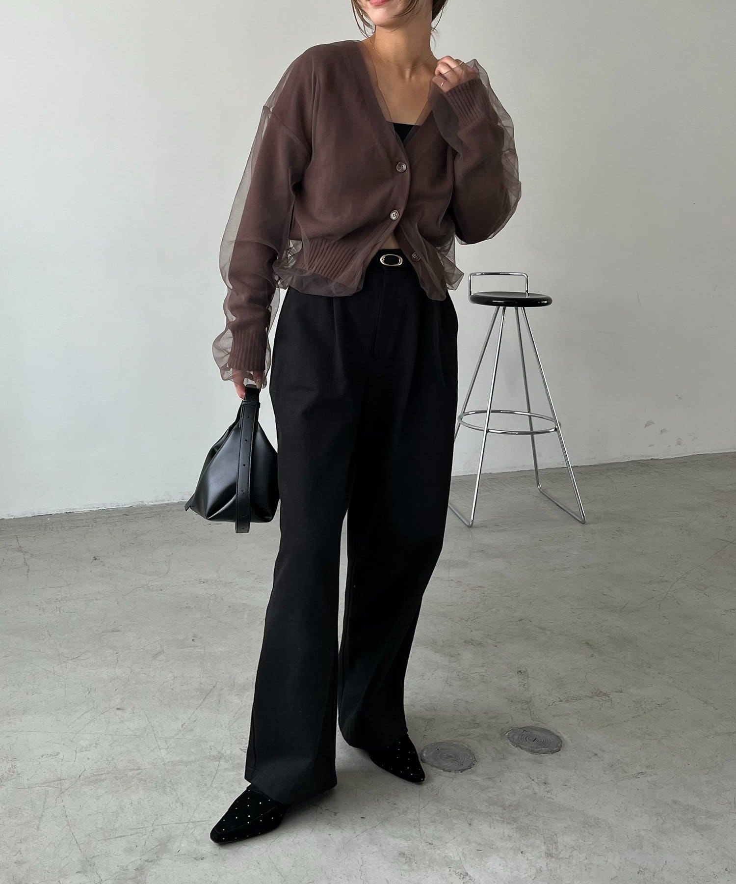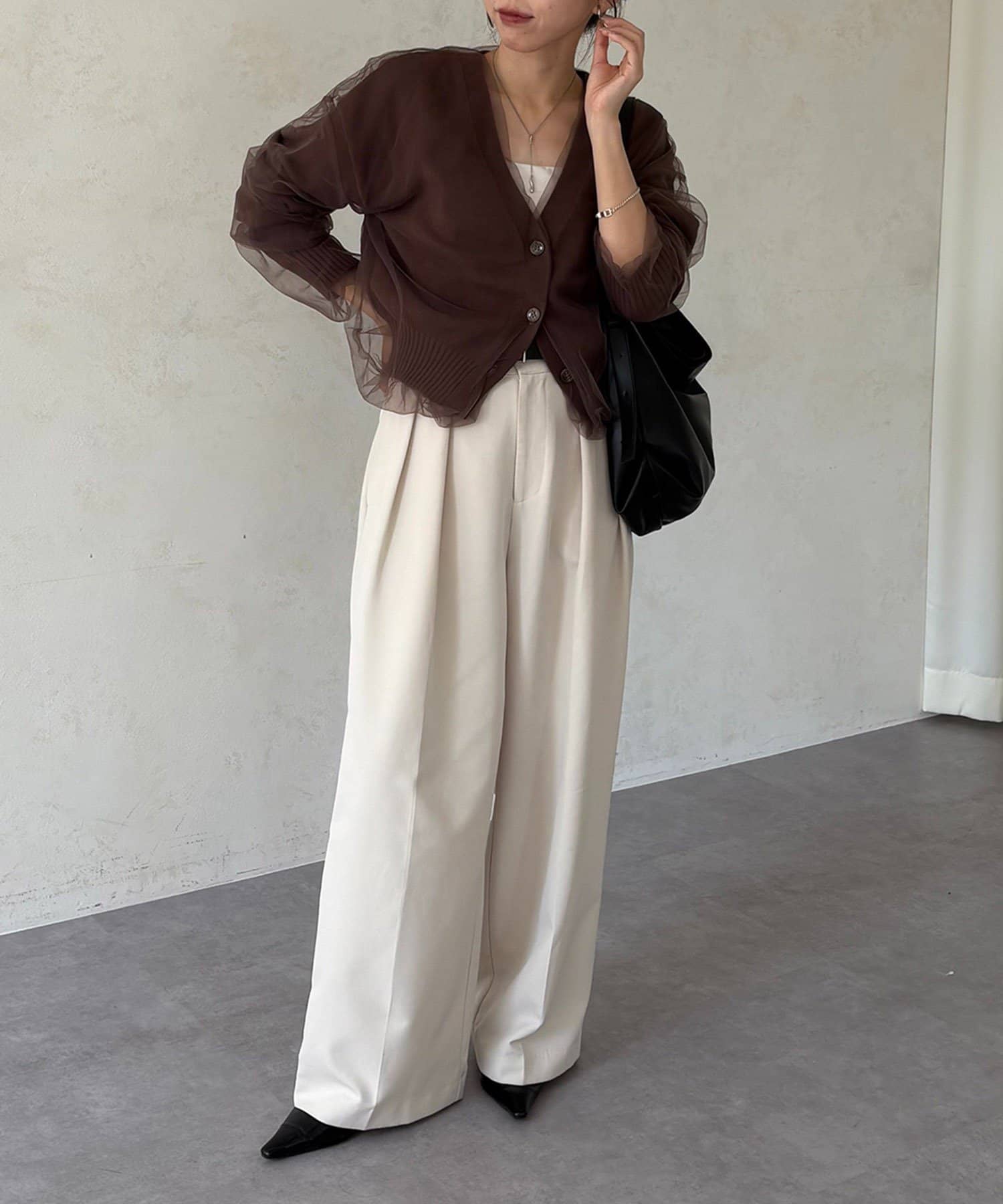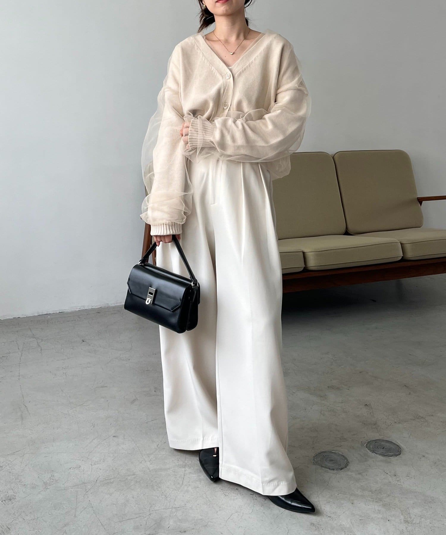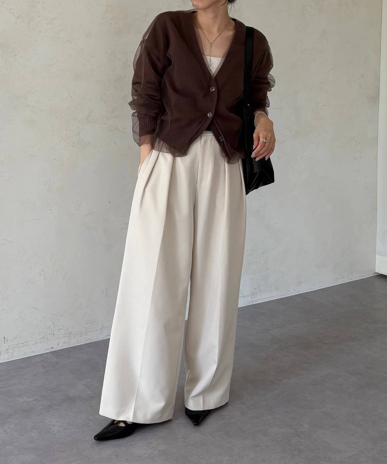 ・2タックワイドパンツ合わせでメリハリのあるスタイリングに