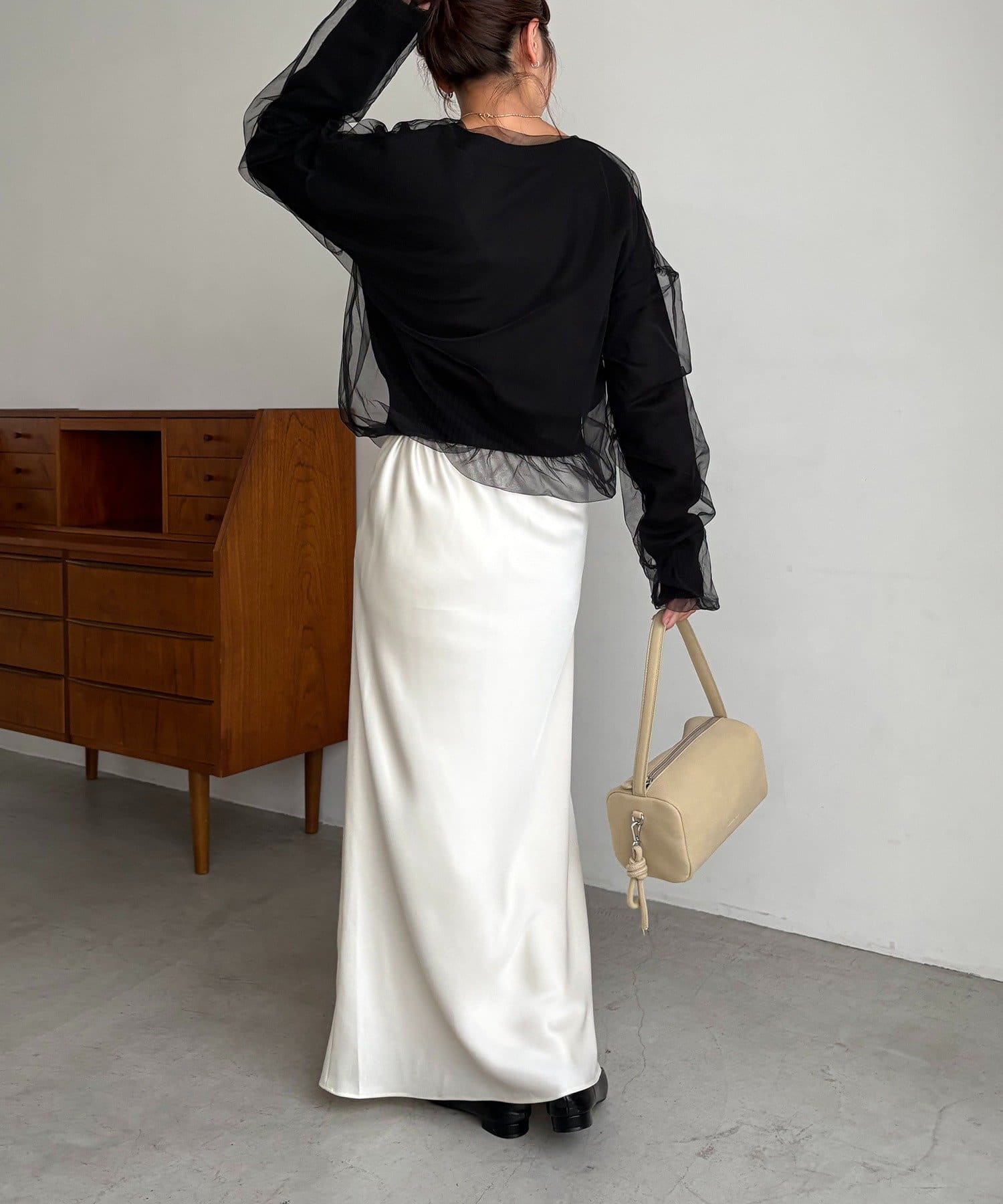 ・裾、袖口はリブになっており、チュールのボリュームがありつつもメリハリのあるシルエットに
