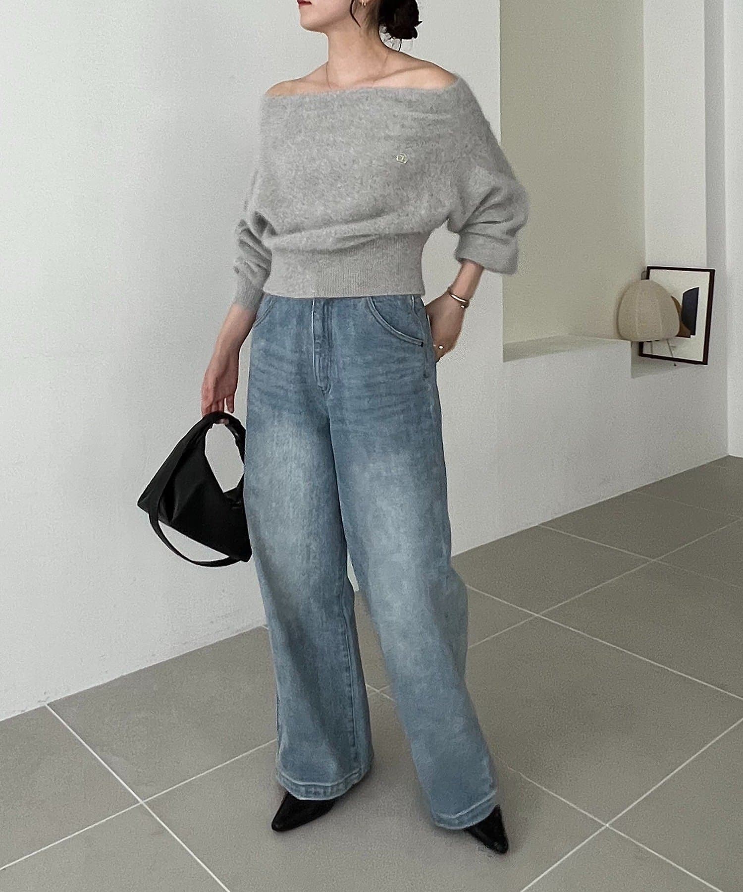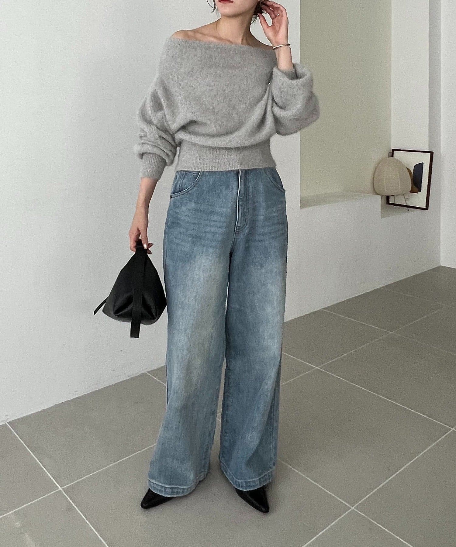 【ライトグレー着用アイテム①】ストレートルーズデニム