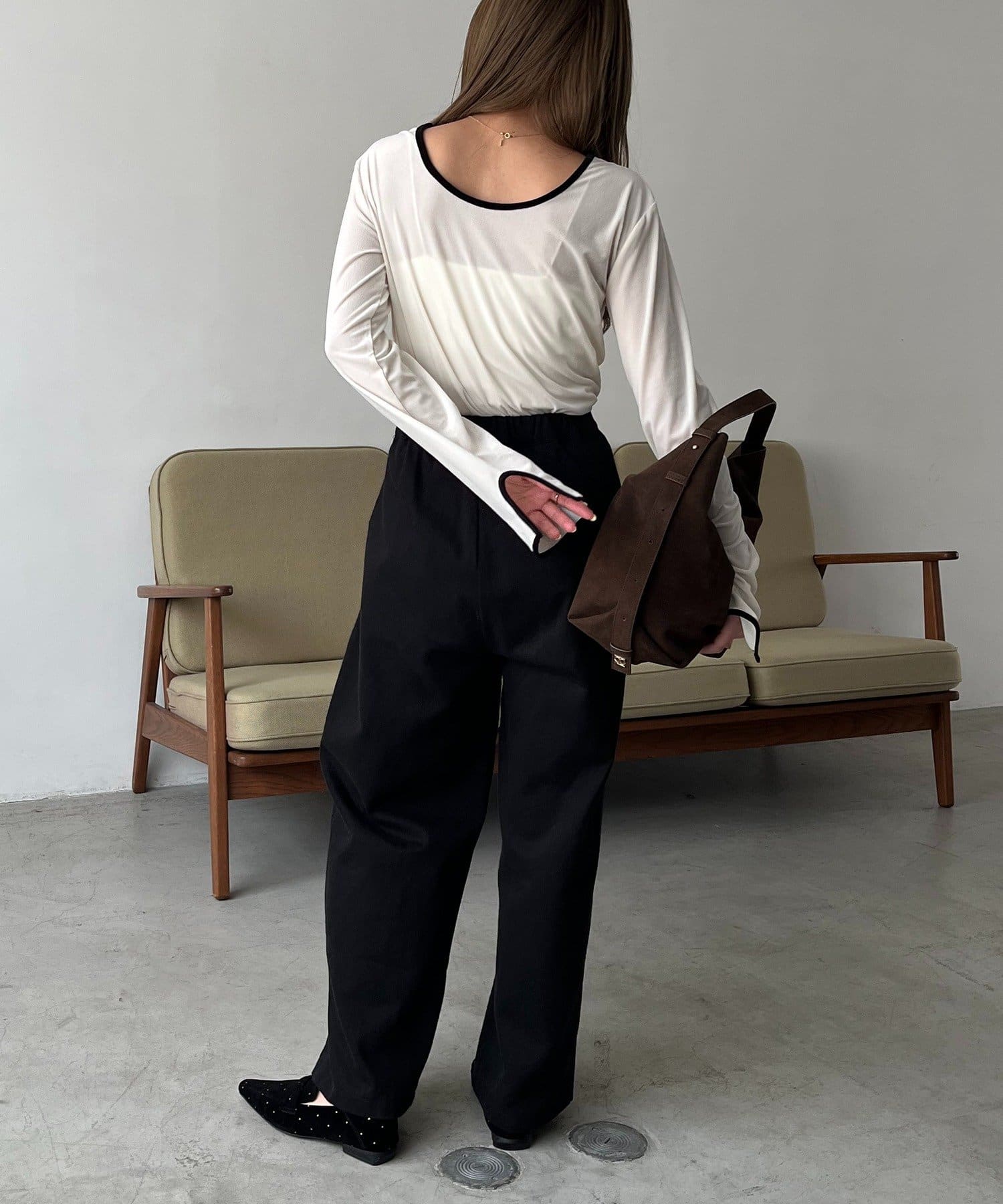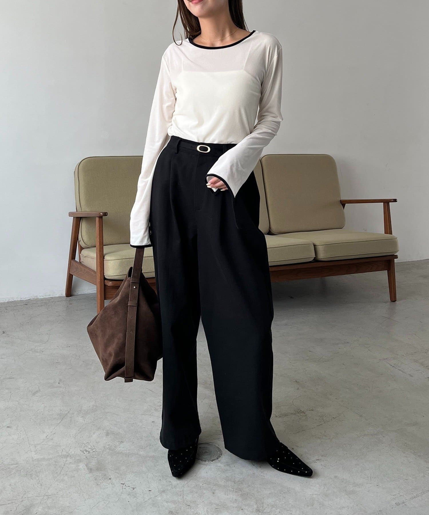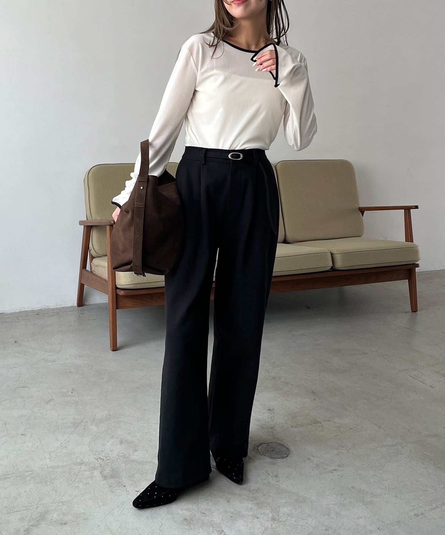 【オフホワイト着用アイテム】ベルト付ツイルパンツ