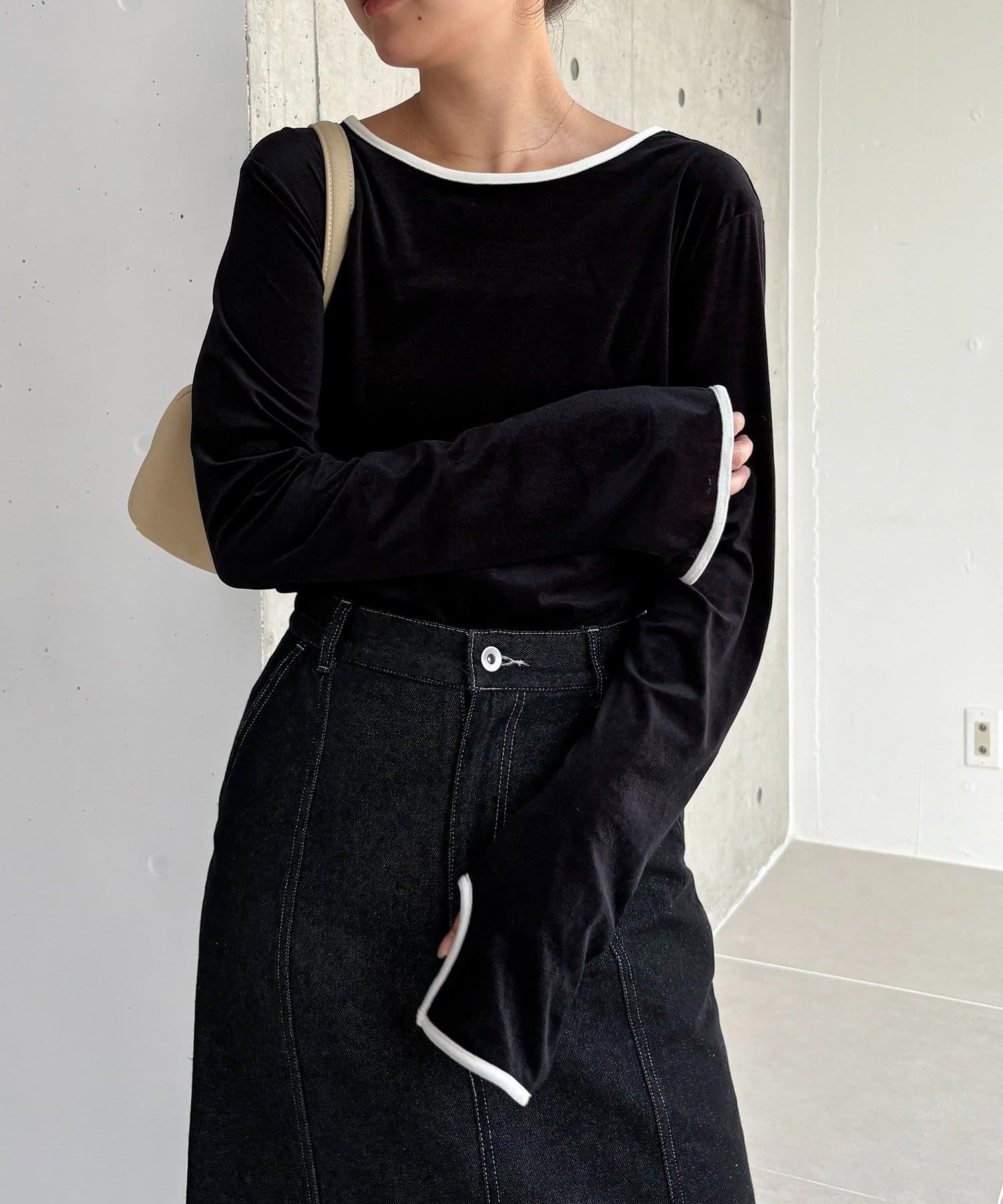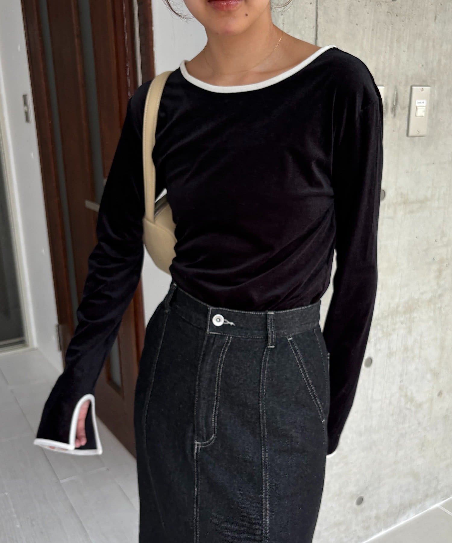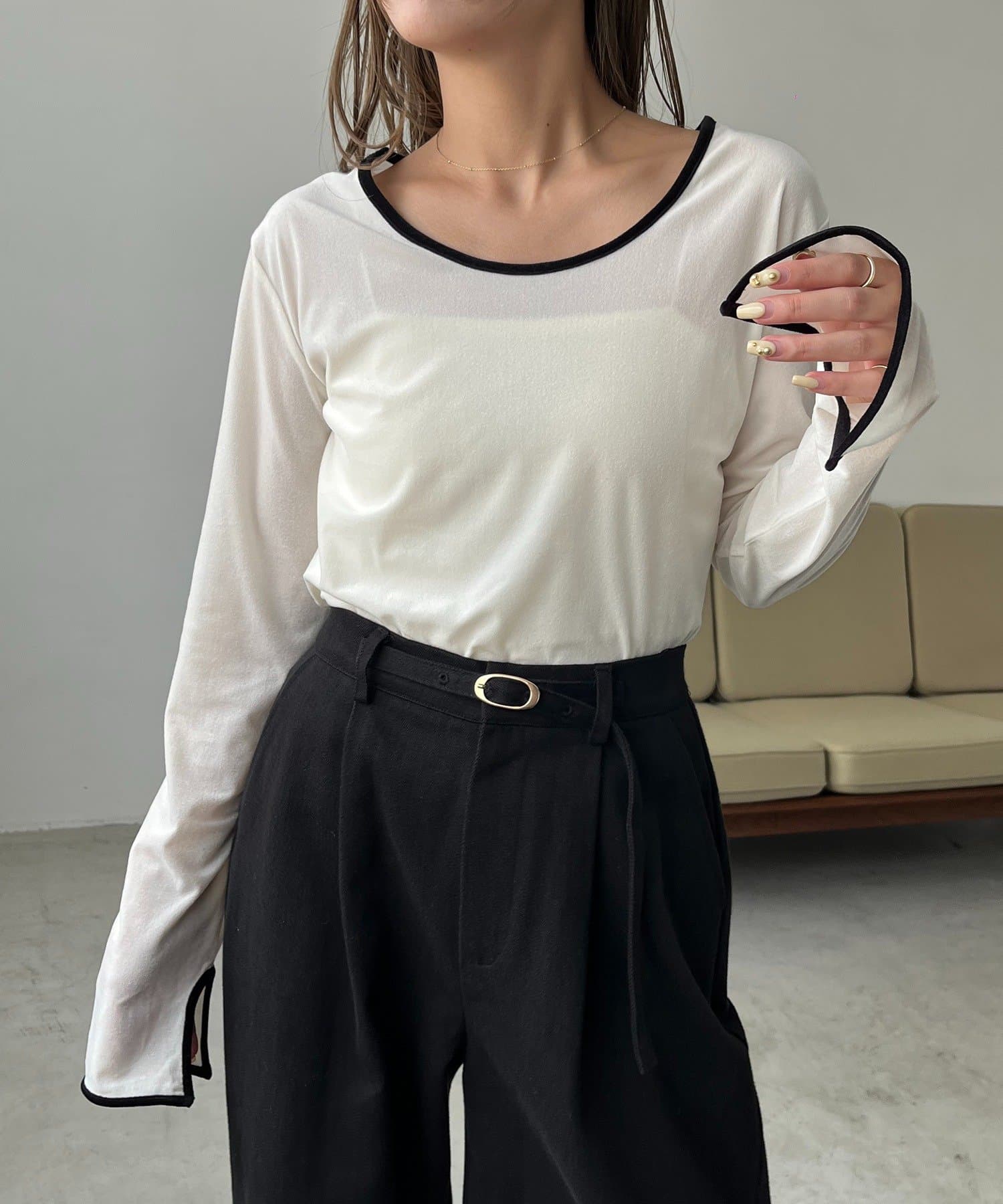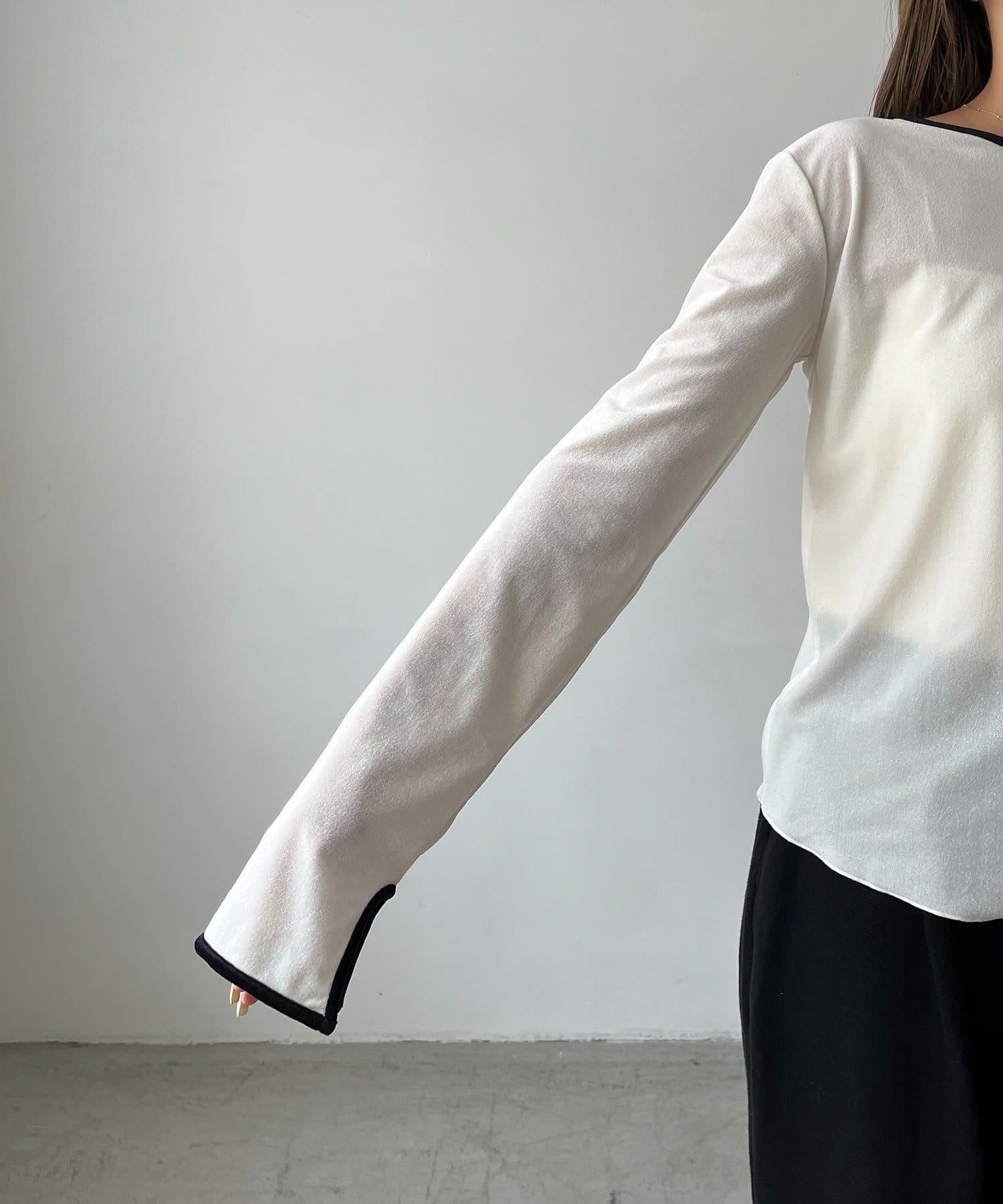 ・袖口はバイカラーのパイピングとスリットのデザインでシンプルな中にもこだわった1枚