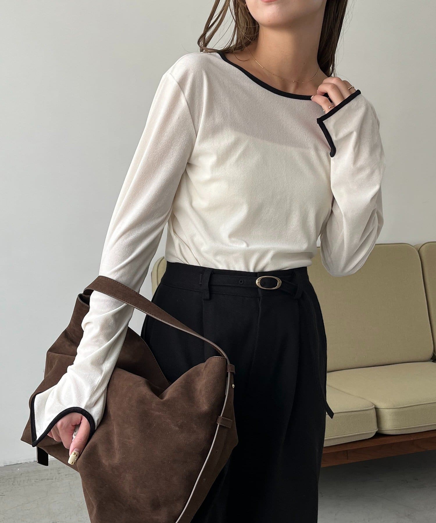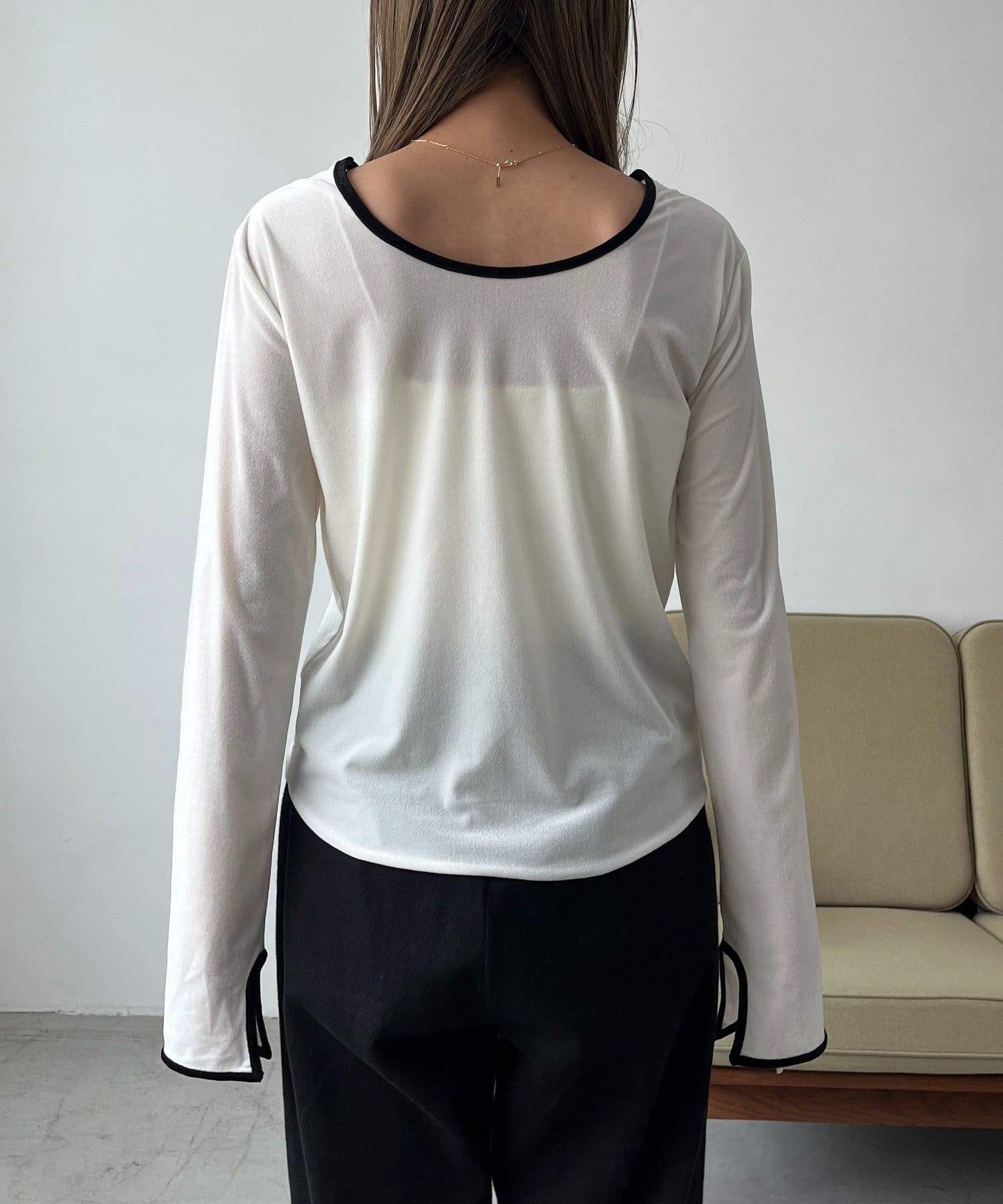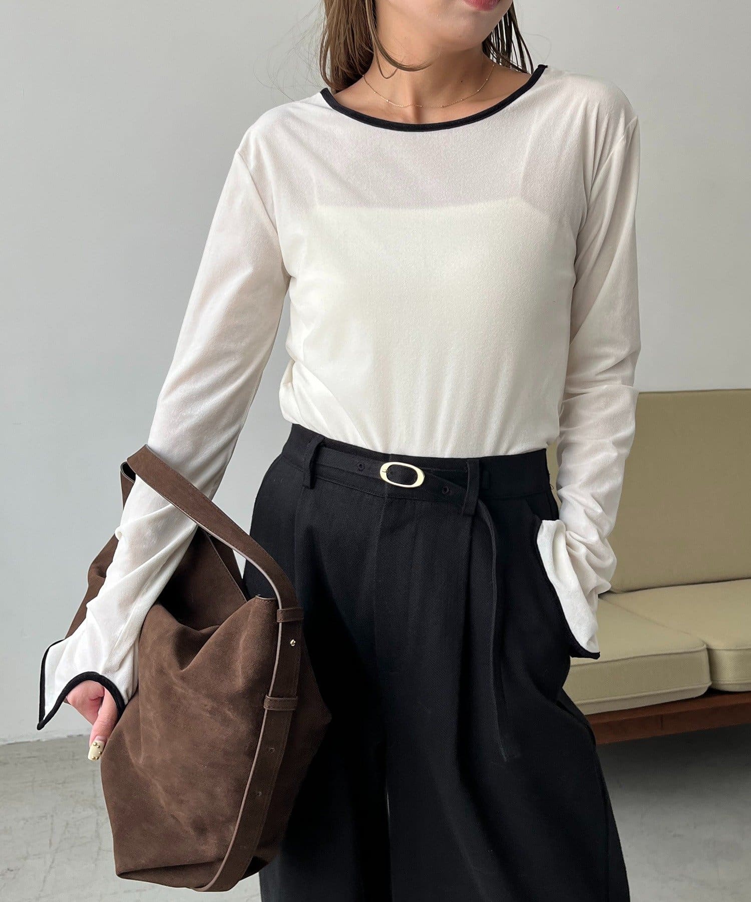 ・袖口はバイカラーのパイピングとスリットのデザインでシンプルな中にもこだわった1枚