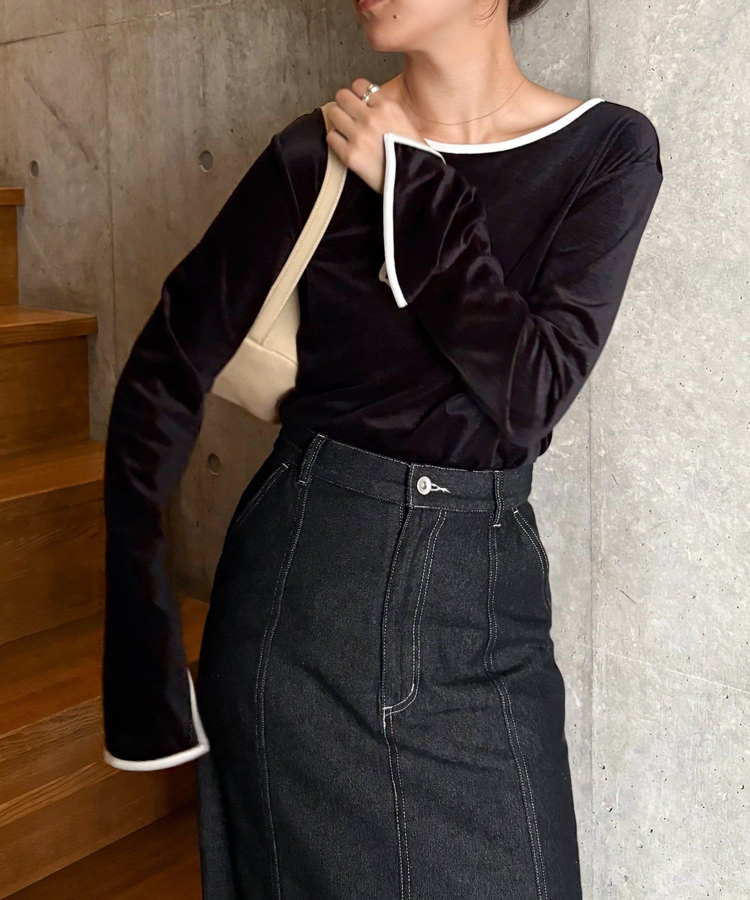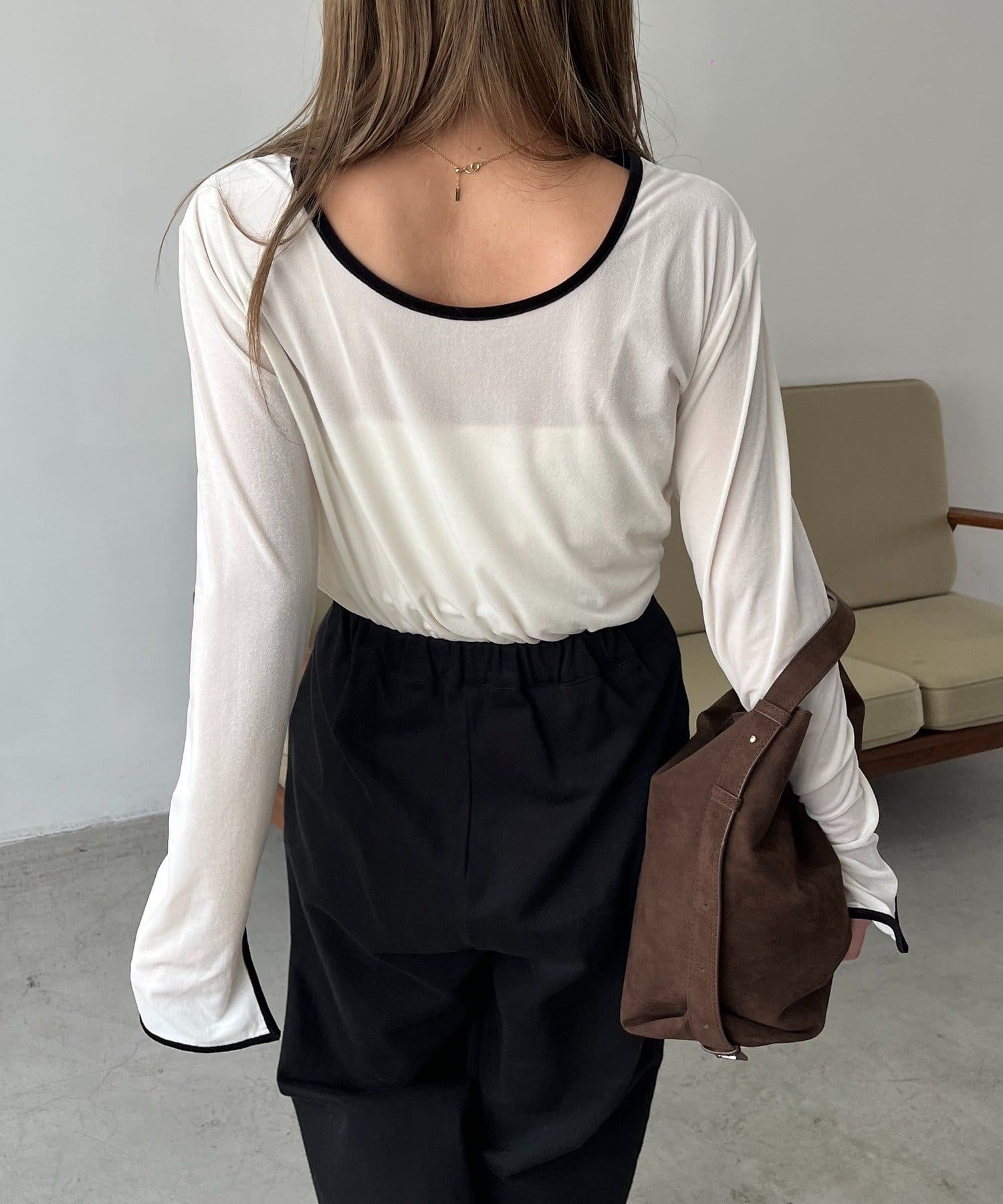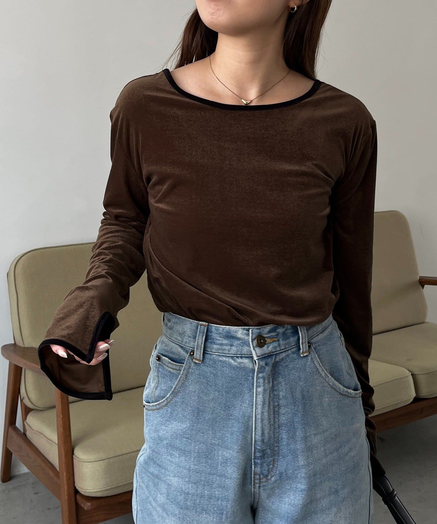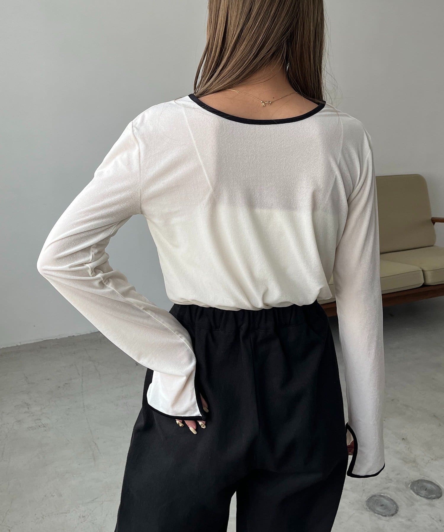 ・袖口はバイカラーのパイピングとスリットのデザインでシンプルな中にもこだわった1枚
