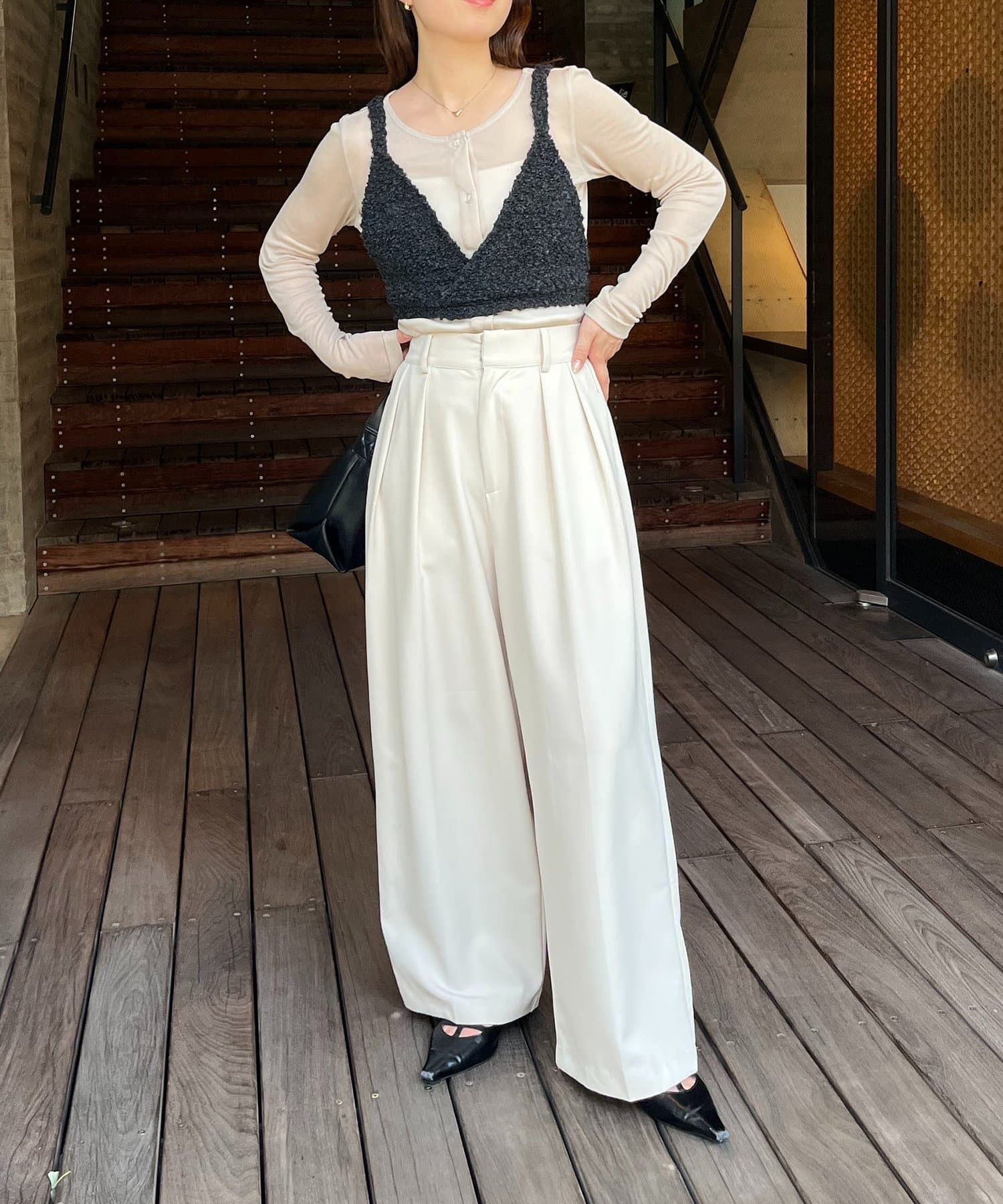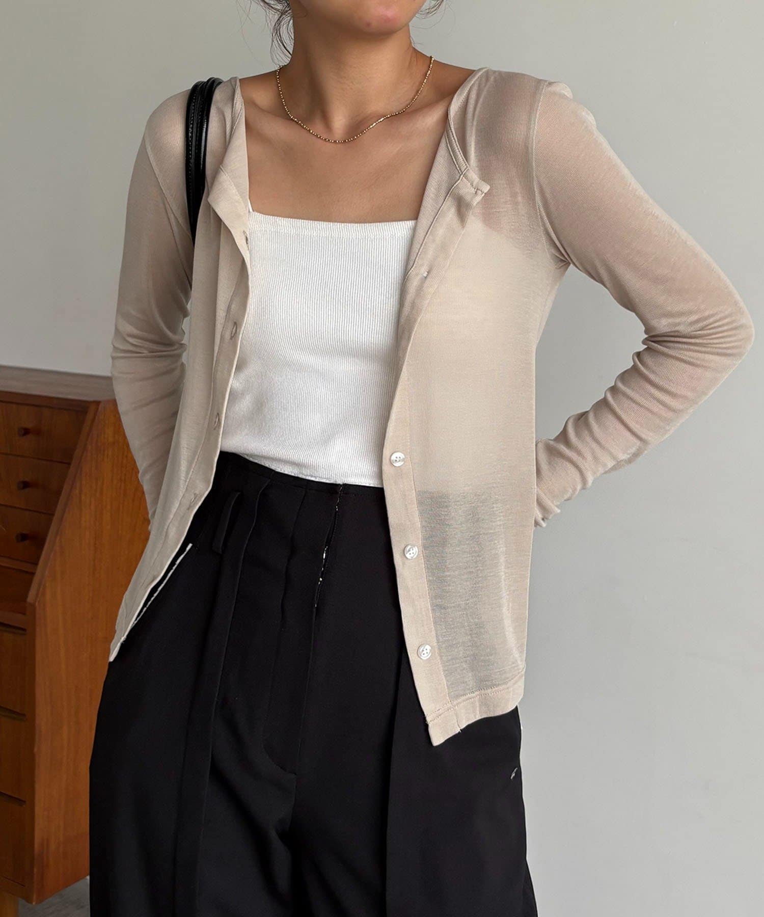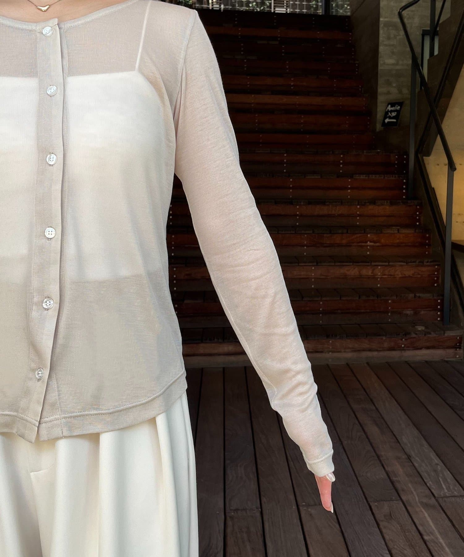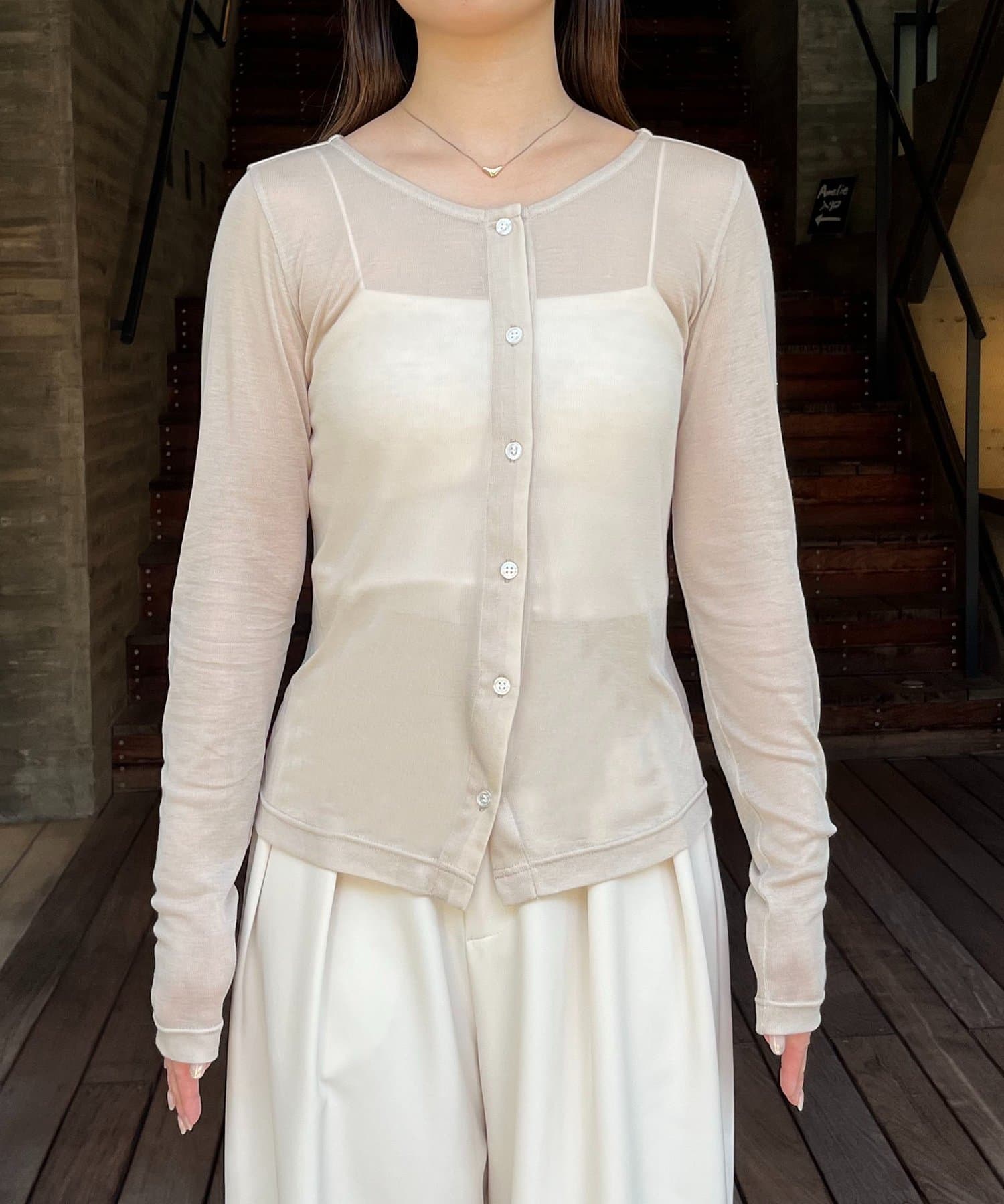 ・インナーはシアー感のあるカーディガンで単品で着てもかわいい