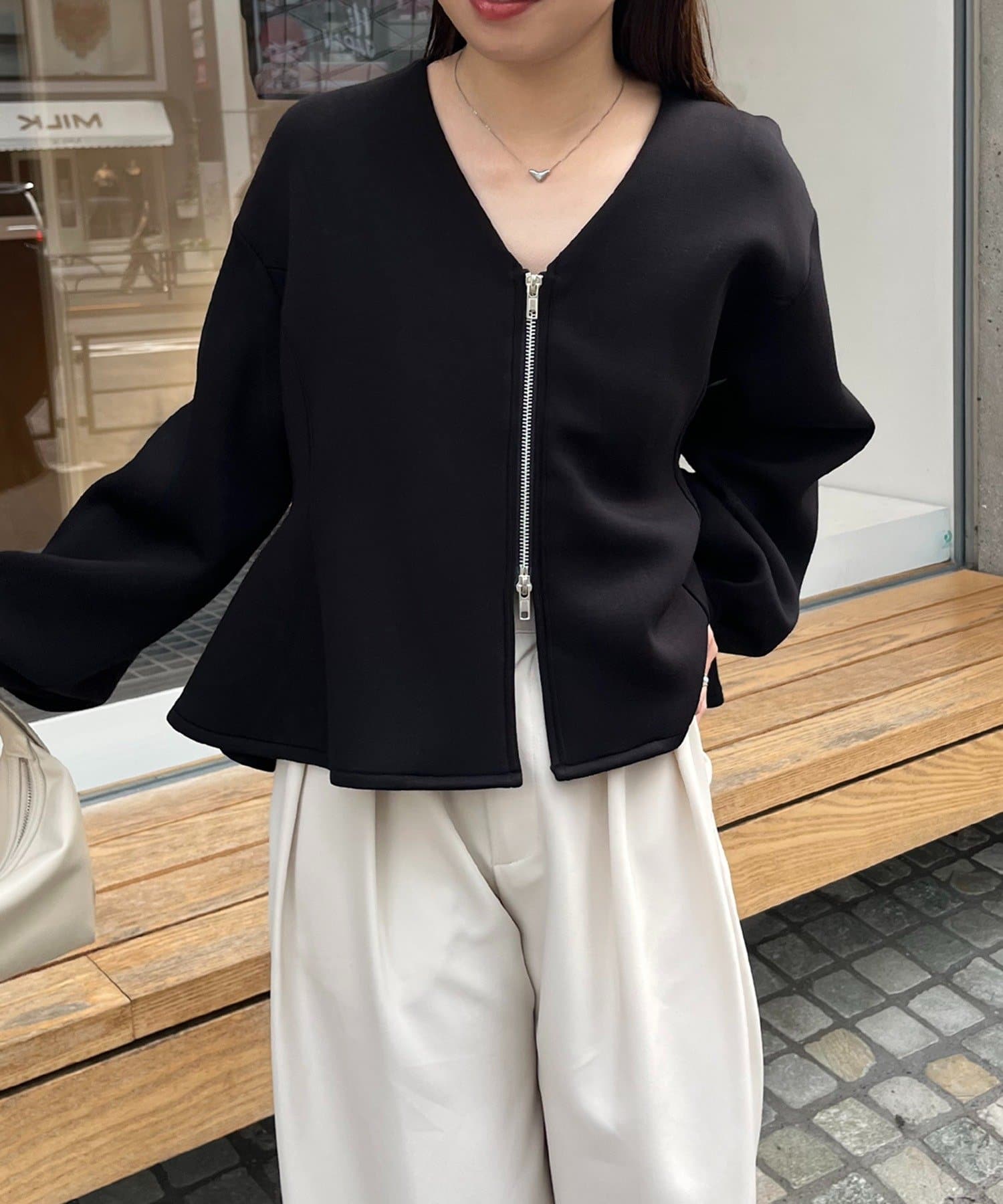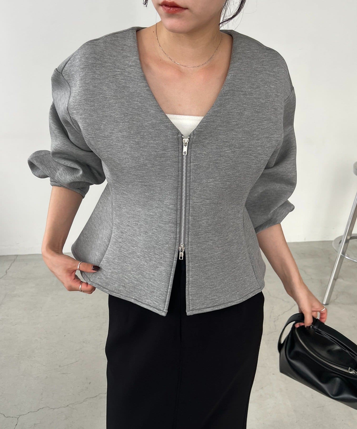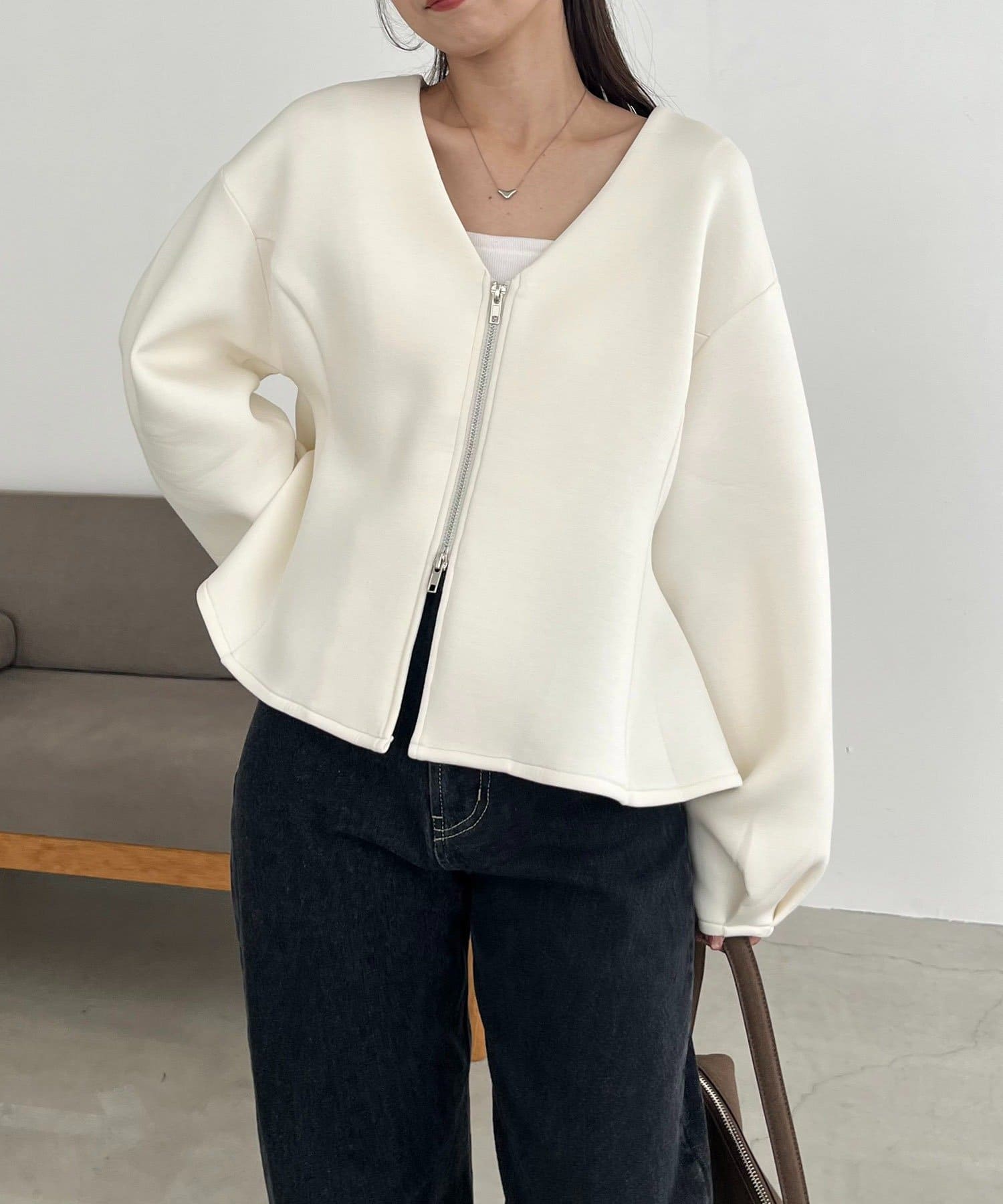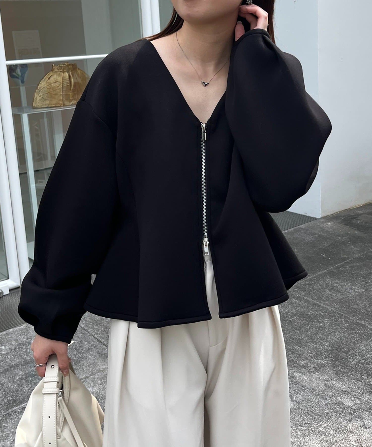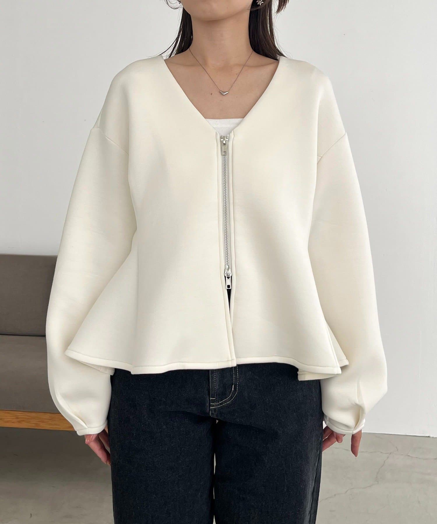 【スタイルアップが叶う/伸縮性◎】ペプラムジップカーディガン