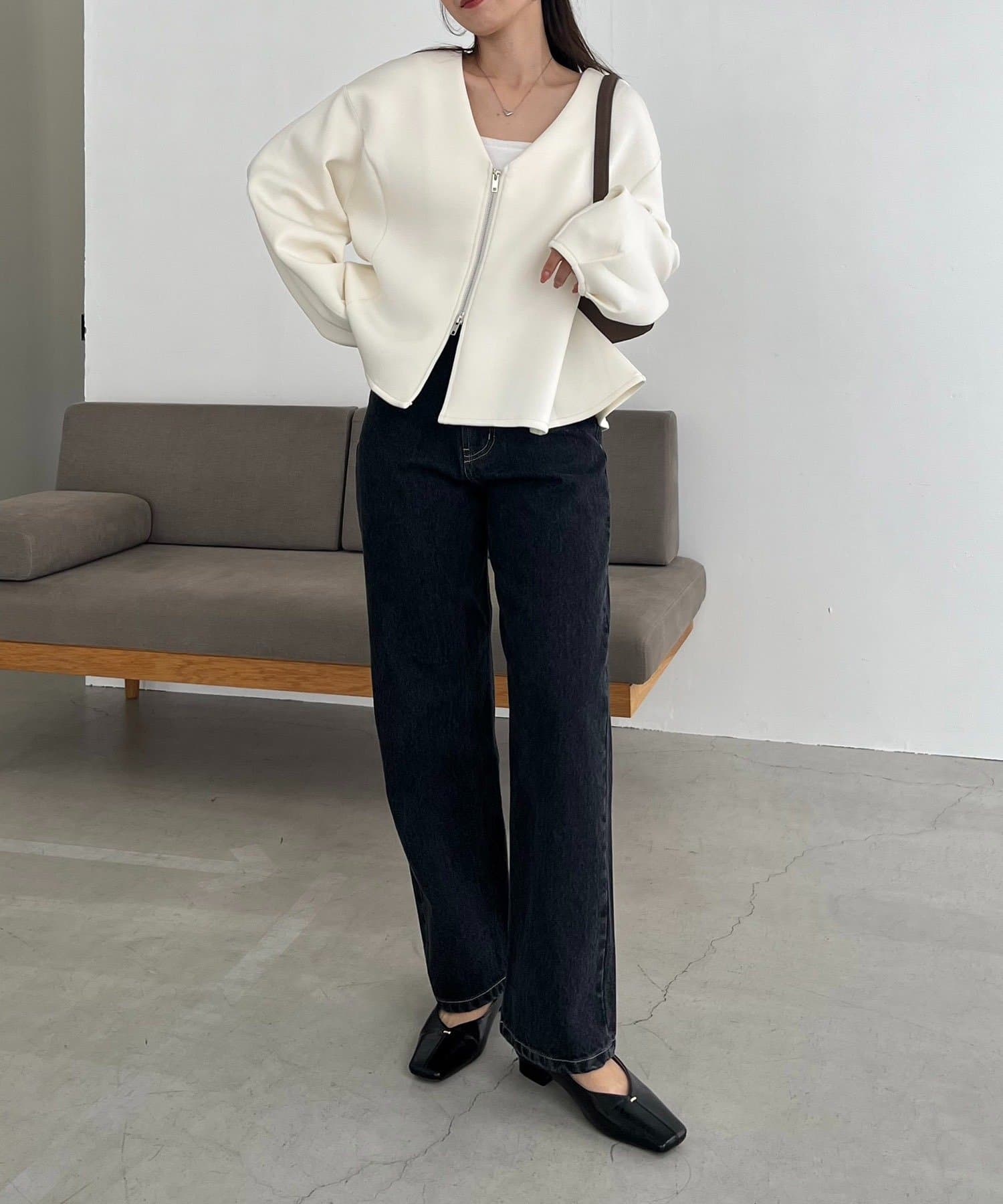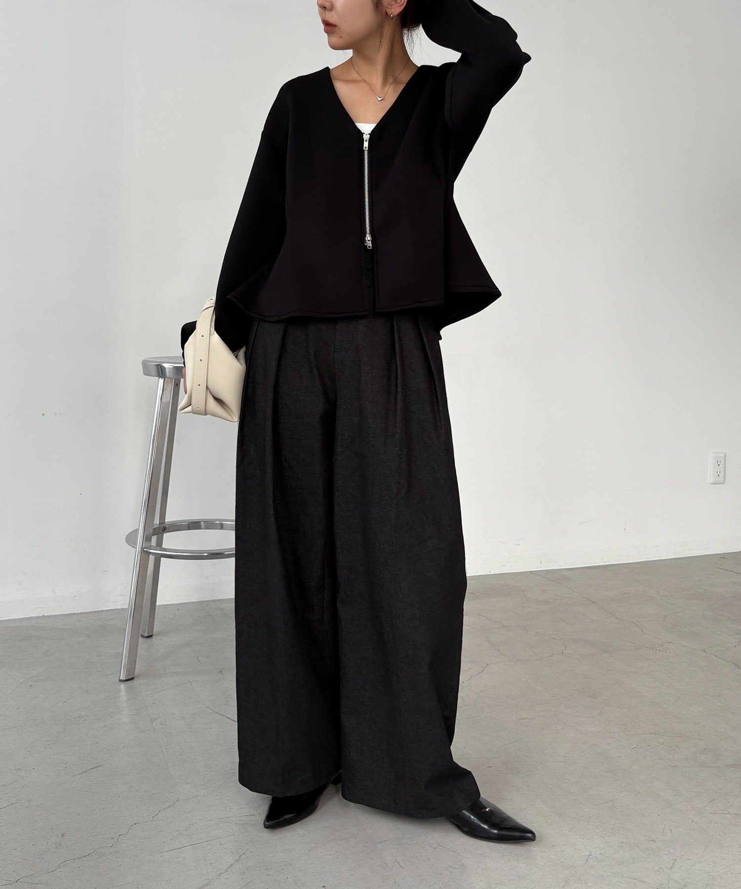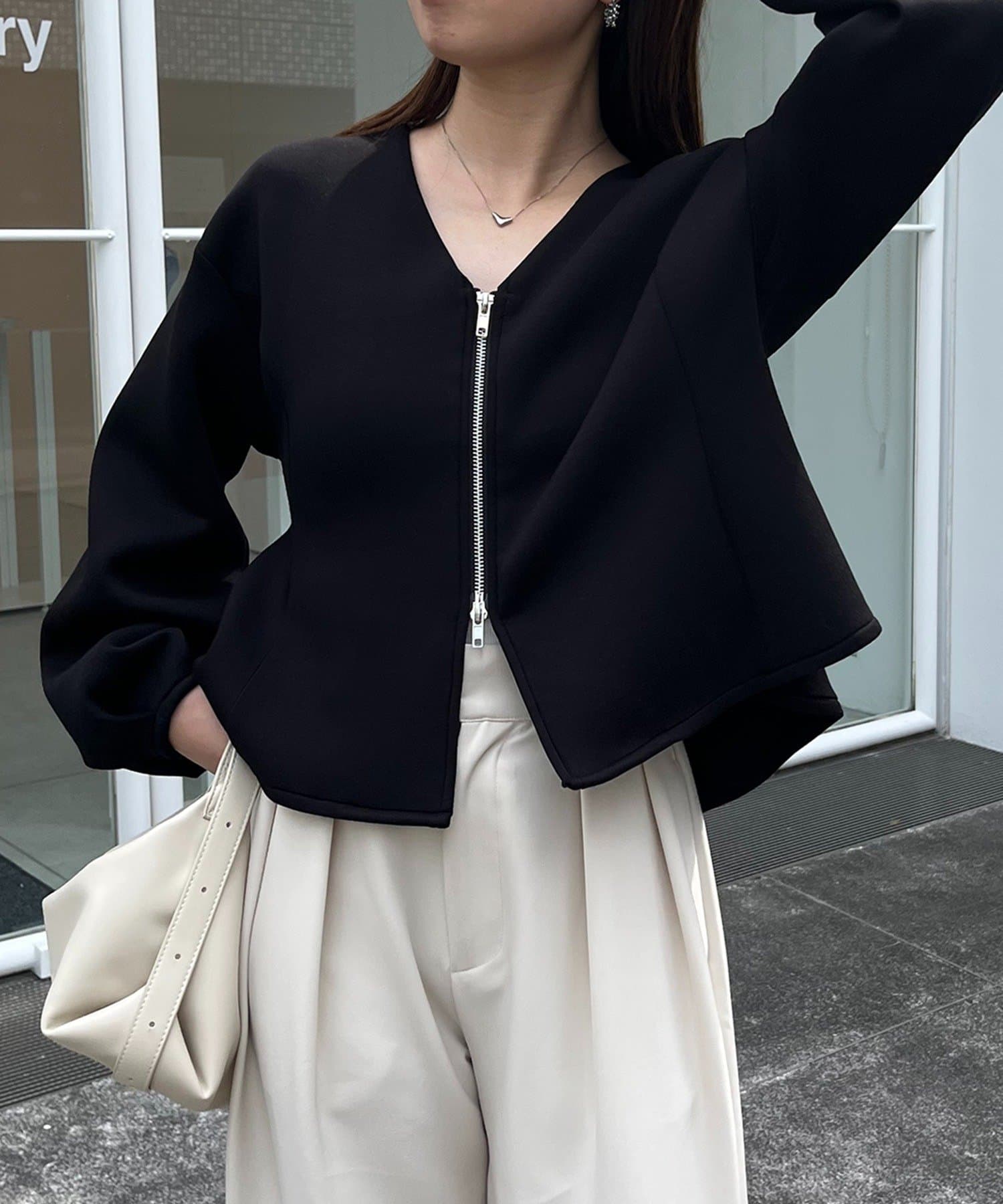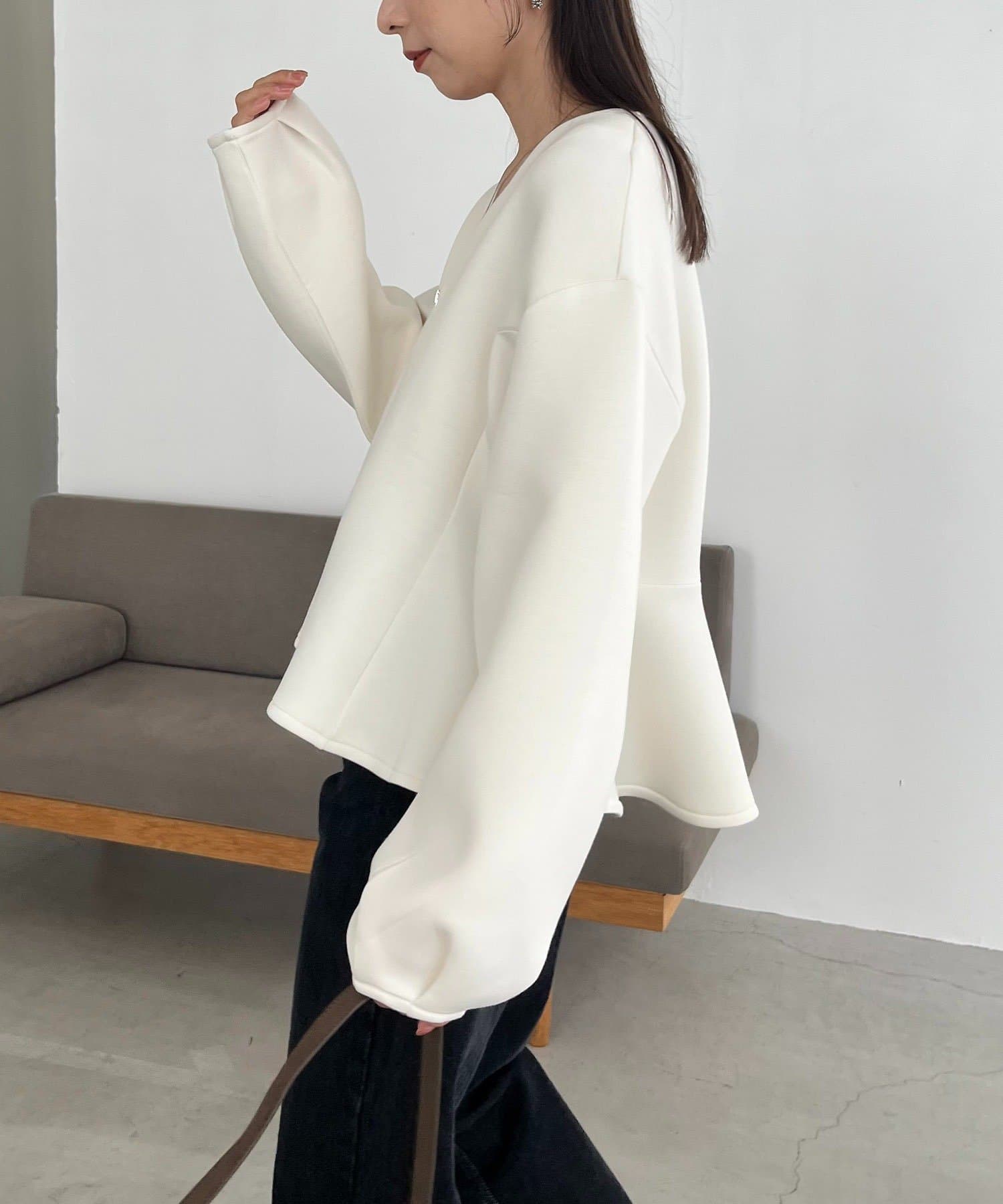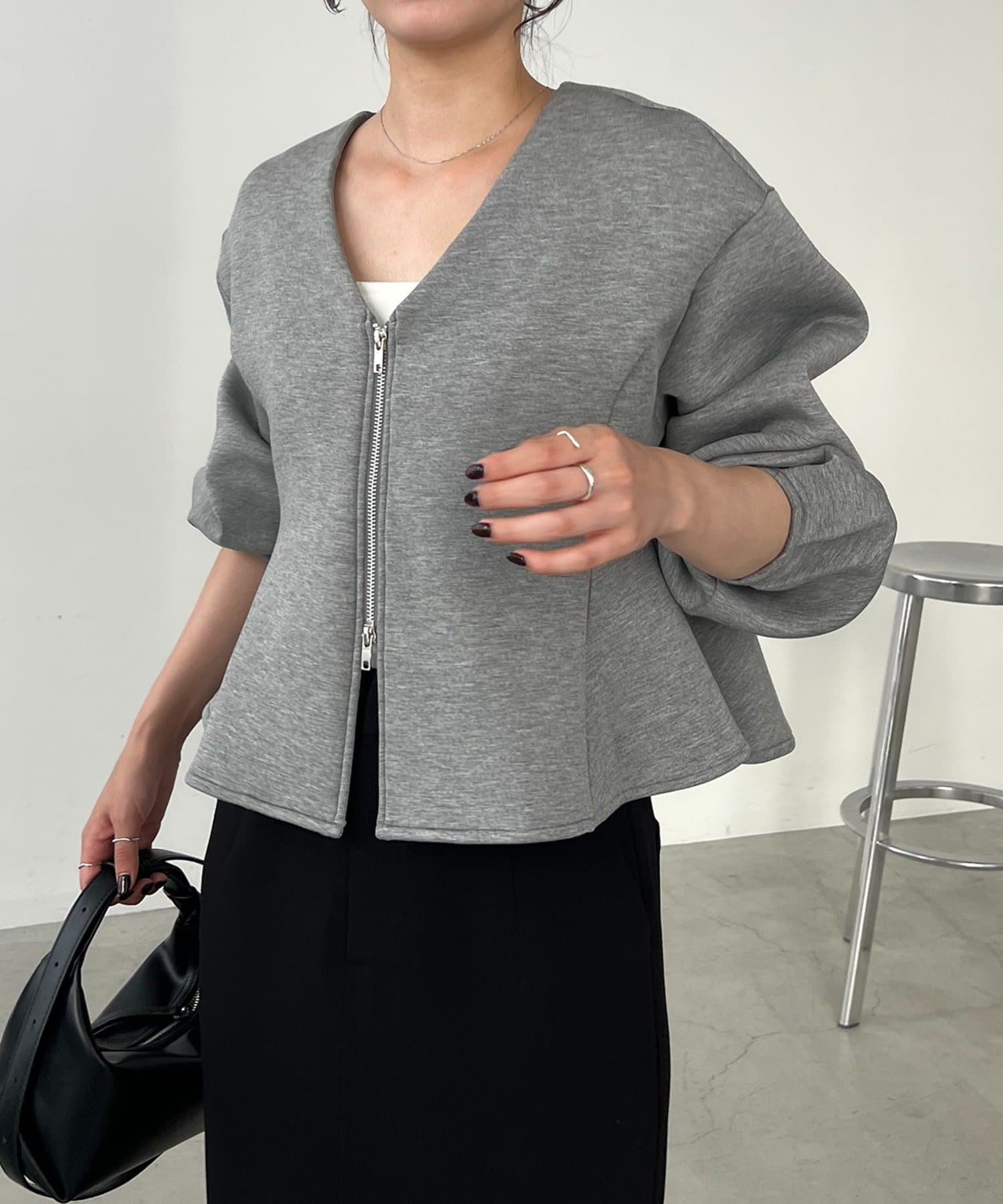 【スタイルアップが叶う/伸縮性◎】ペプラムジップカーディガン