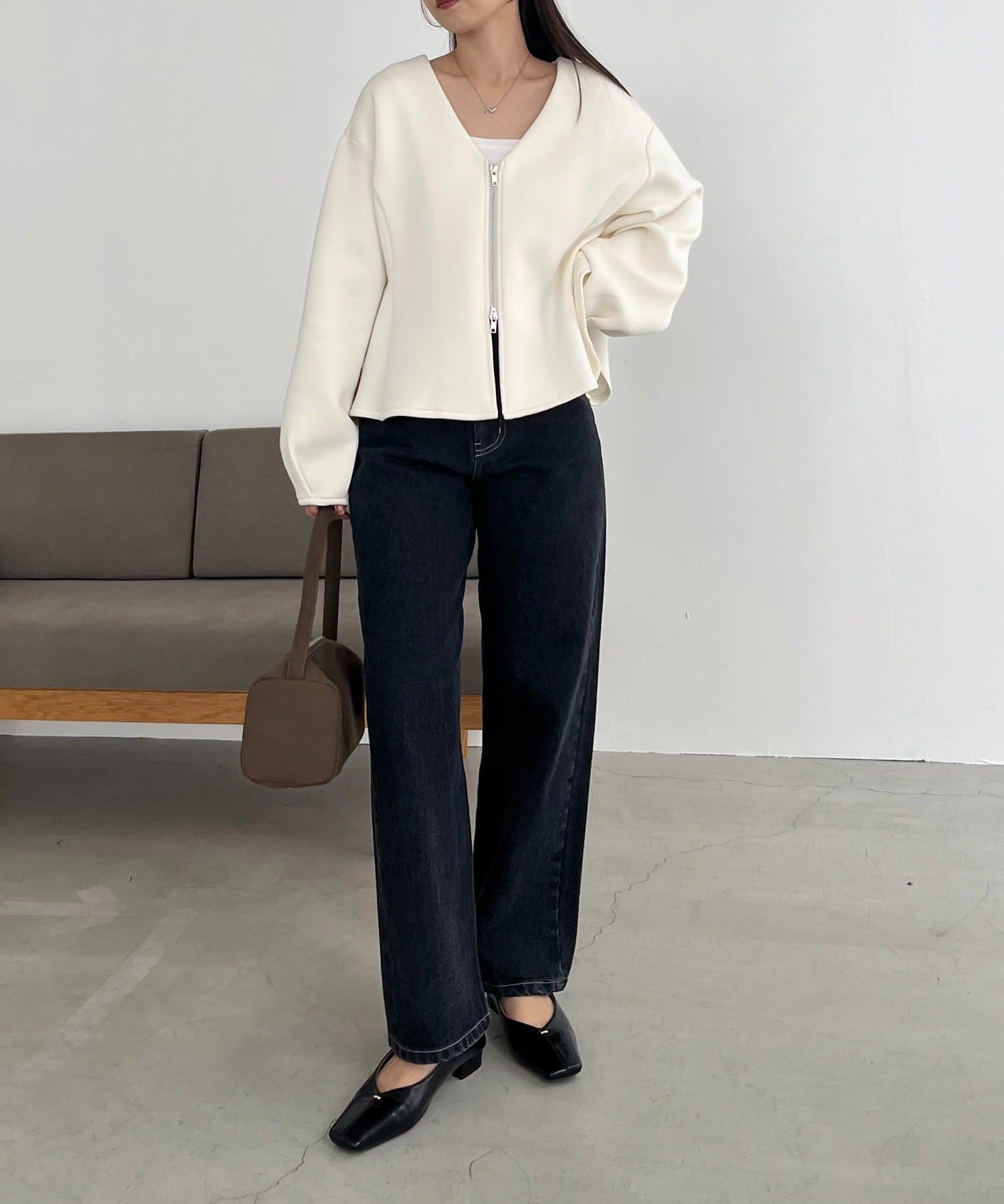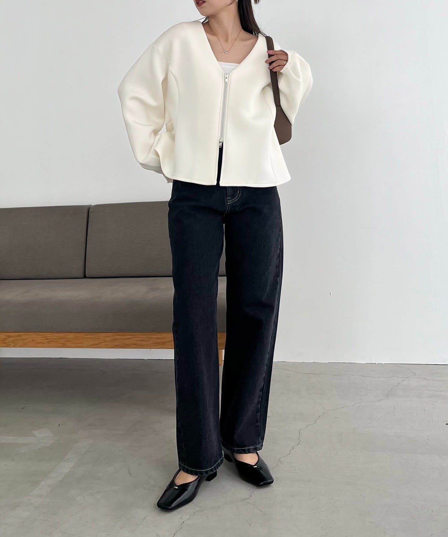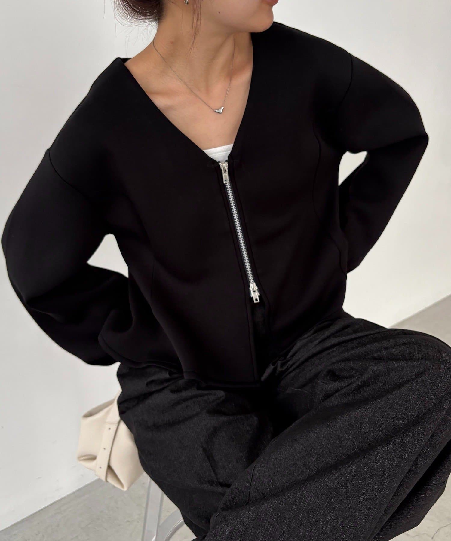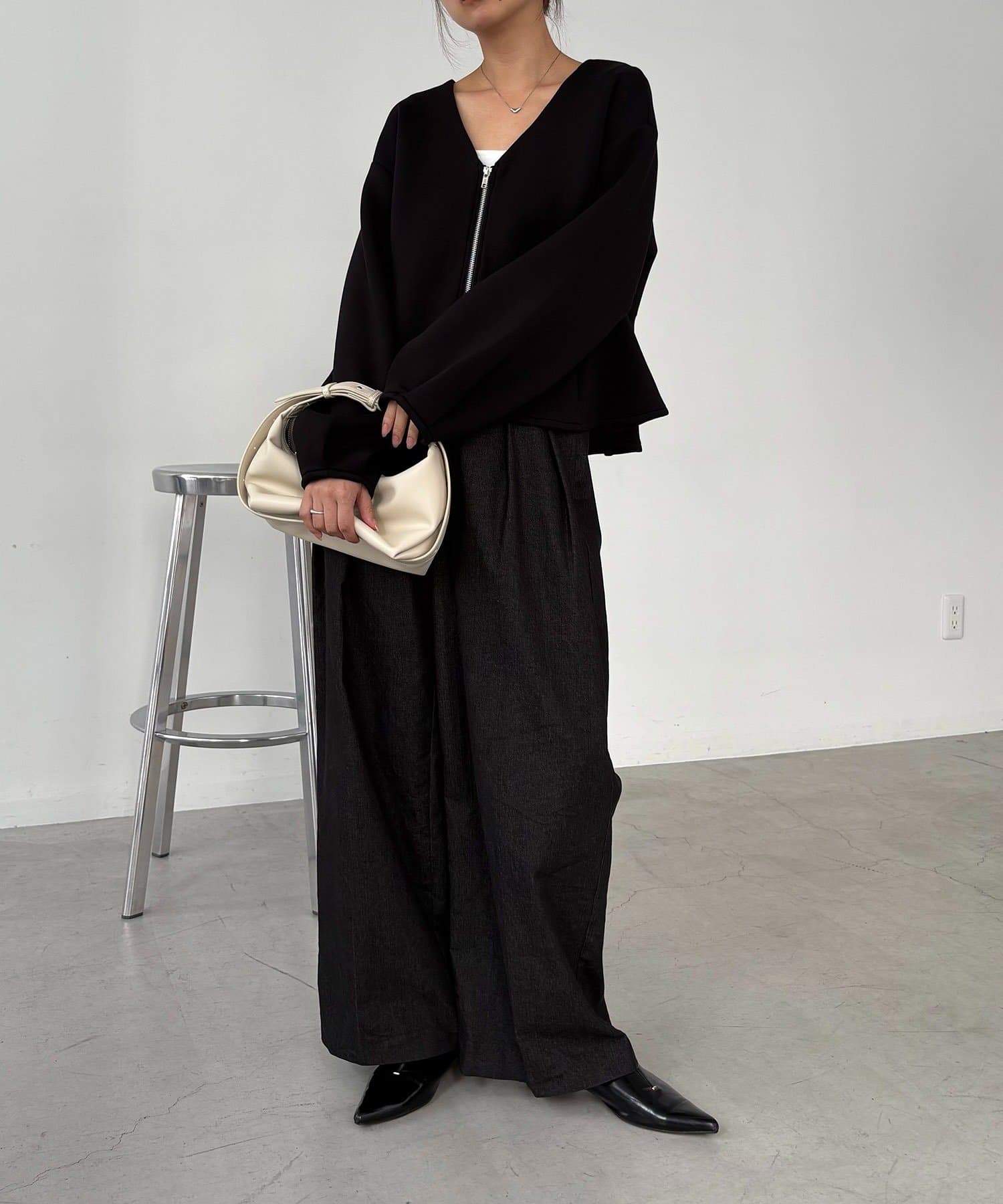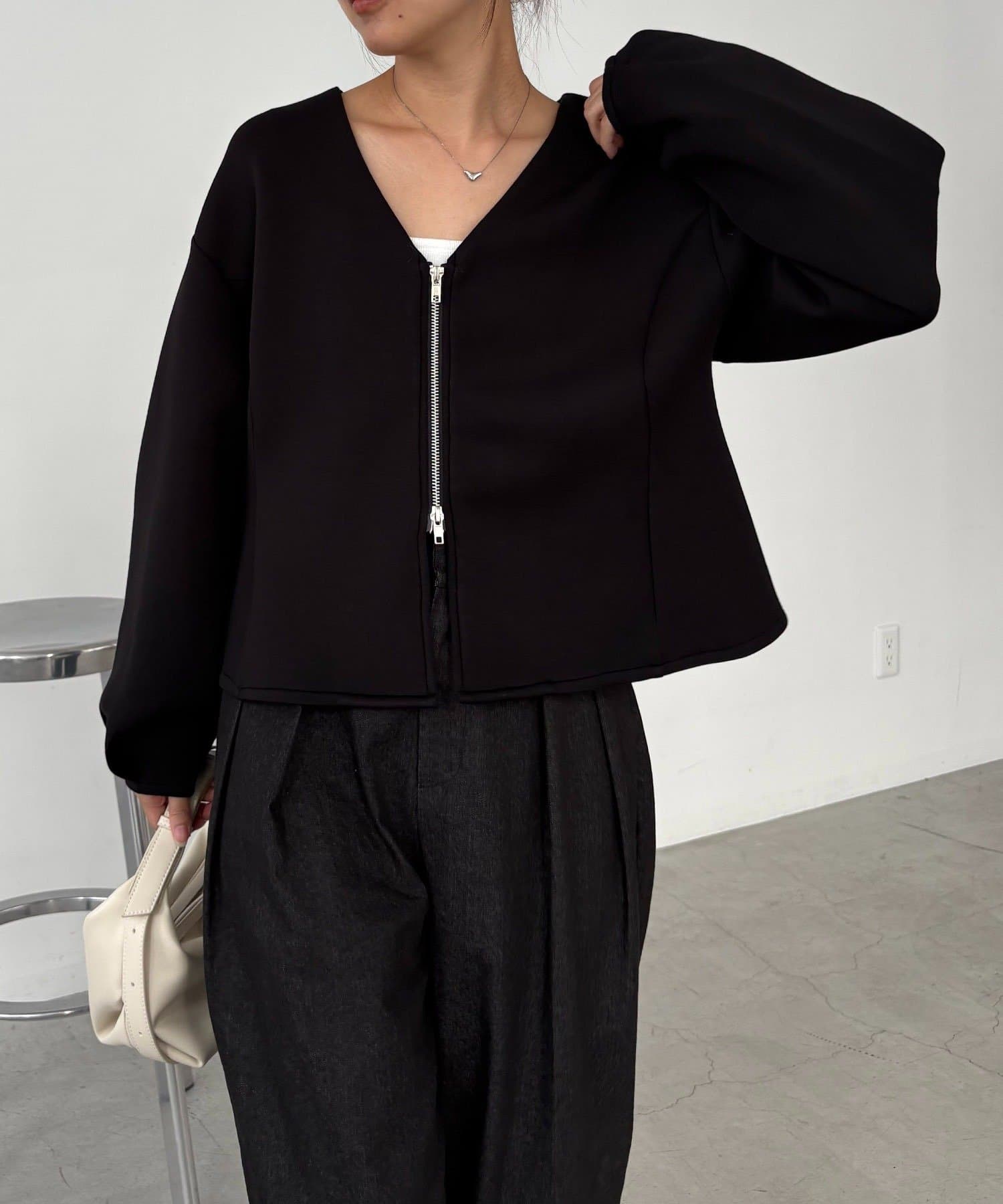 【スタイルアップが叶う/伸縮性◎】ペプラムジップカーディガン