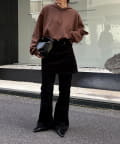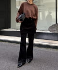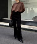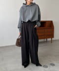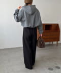 ・短丈なのでボリュームのあるワイドパンツ合わせもスタイルアップ