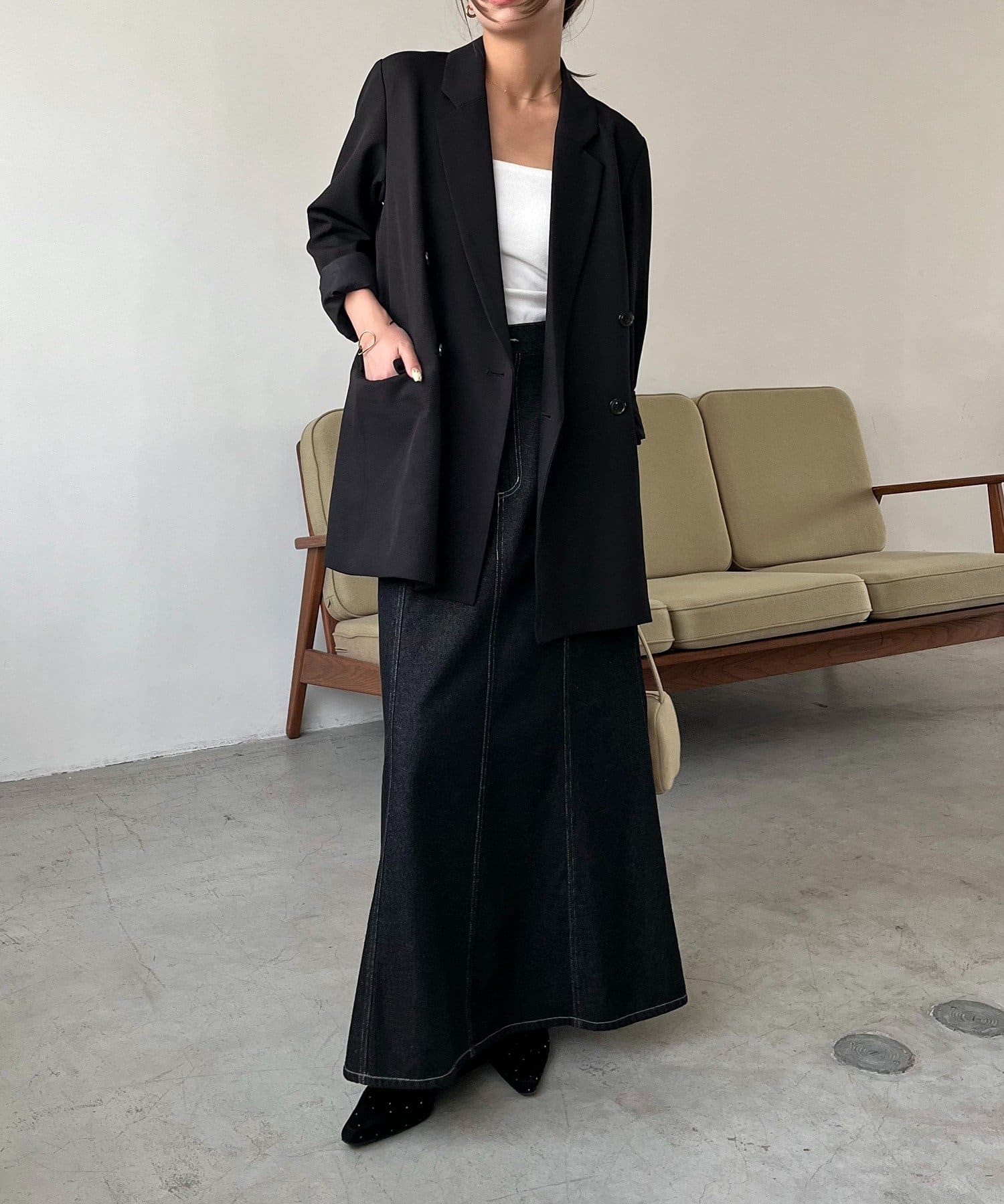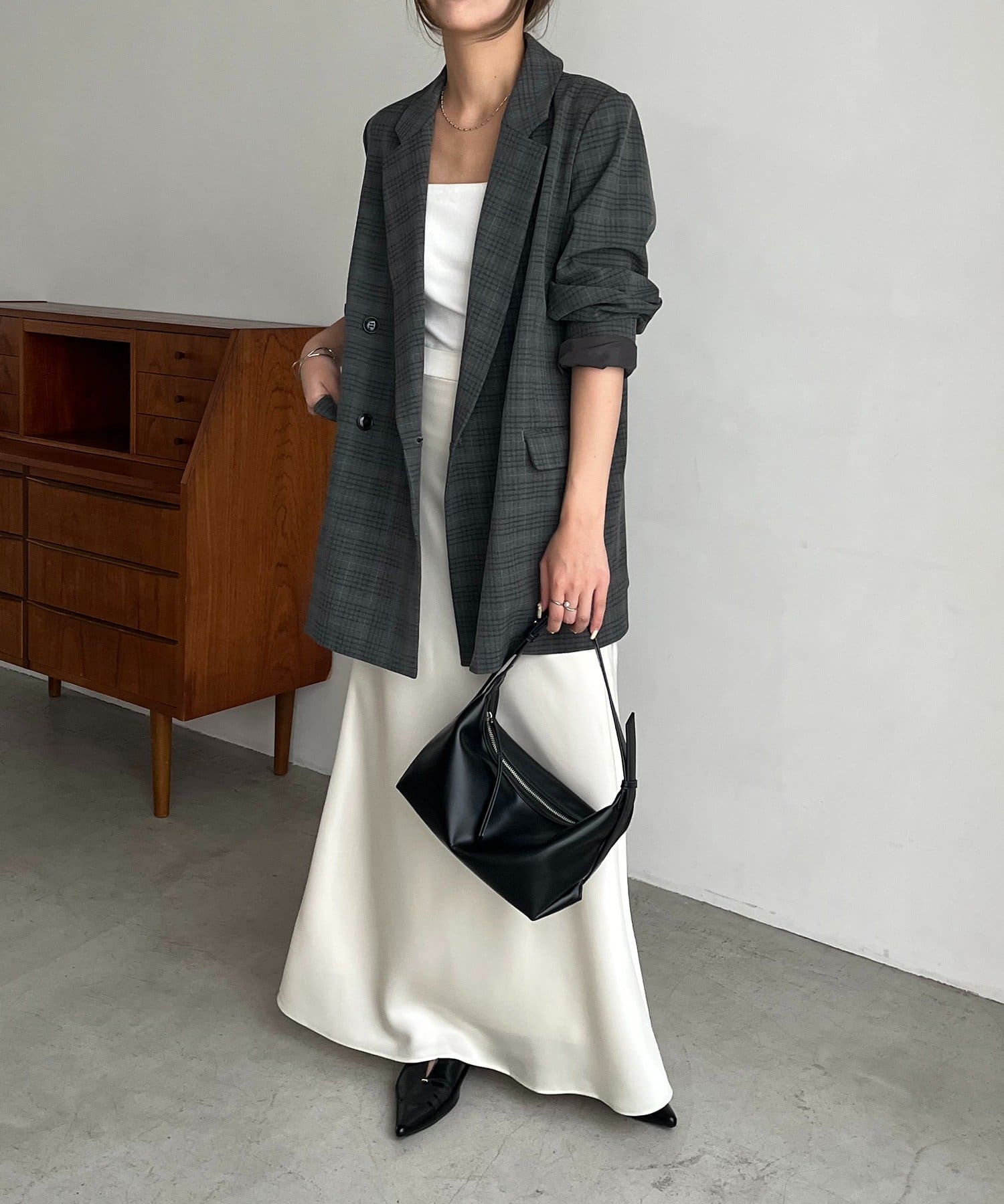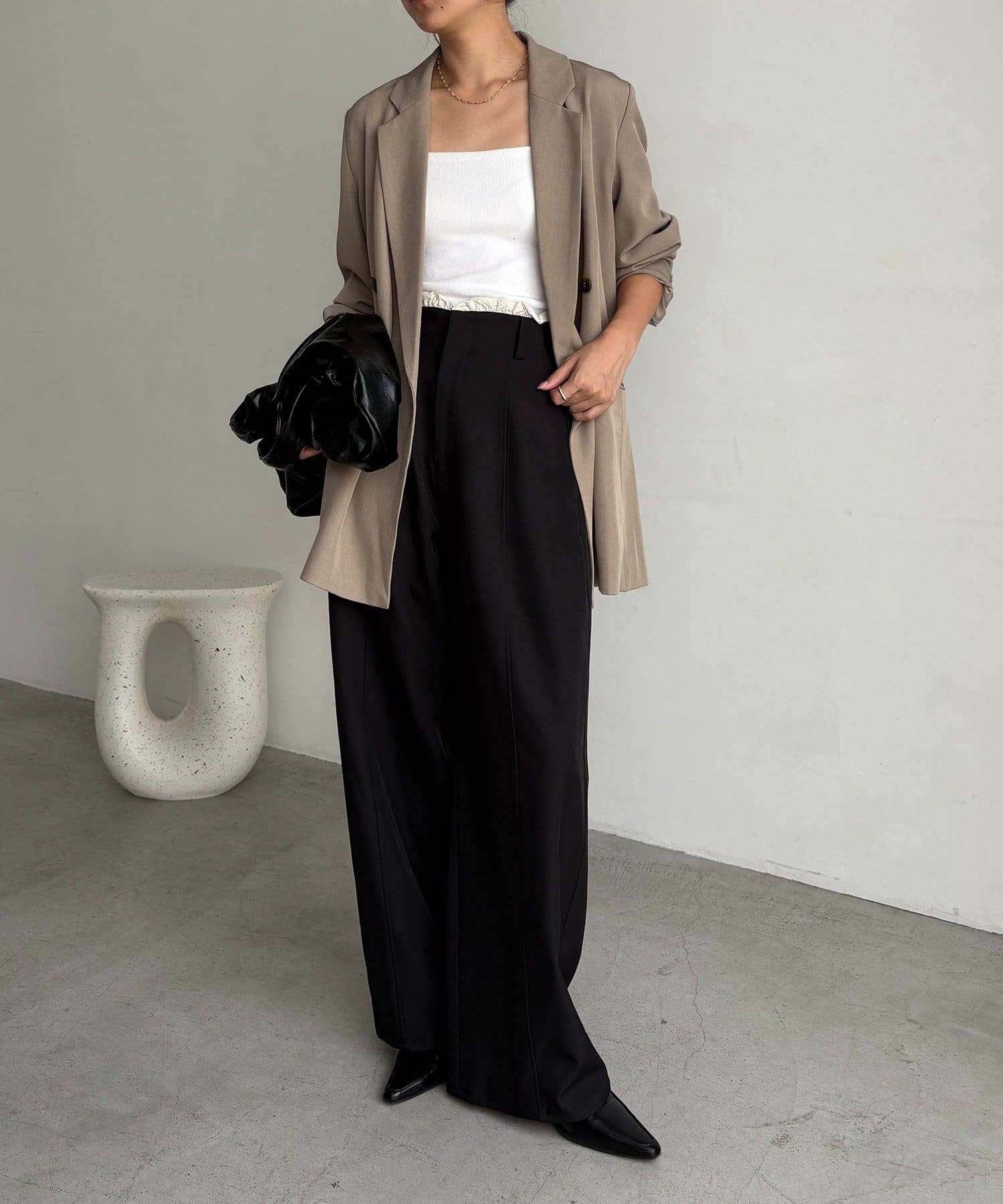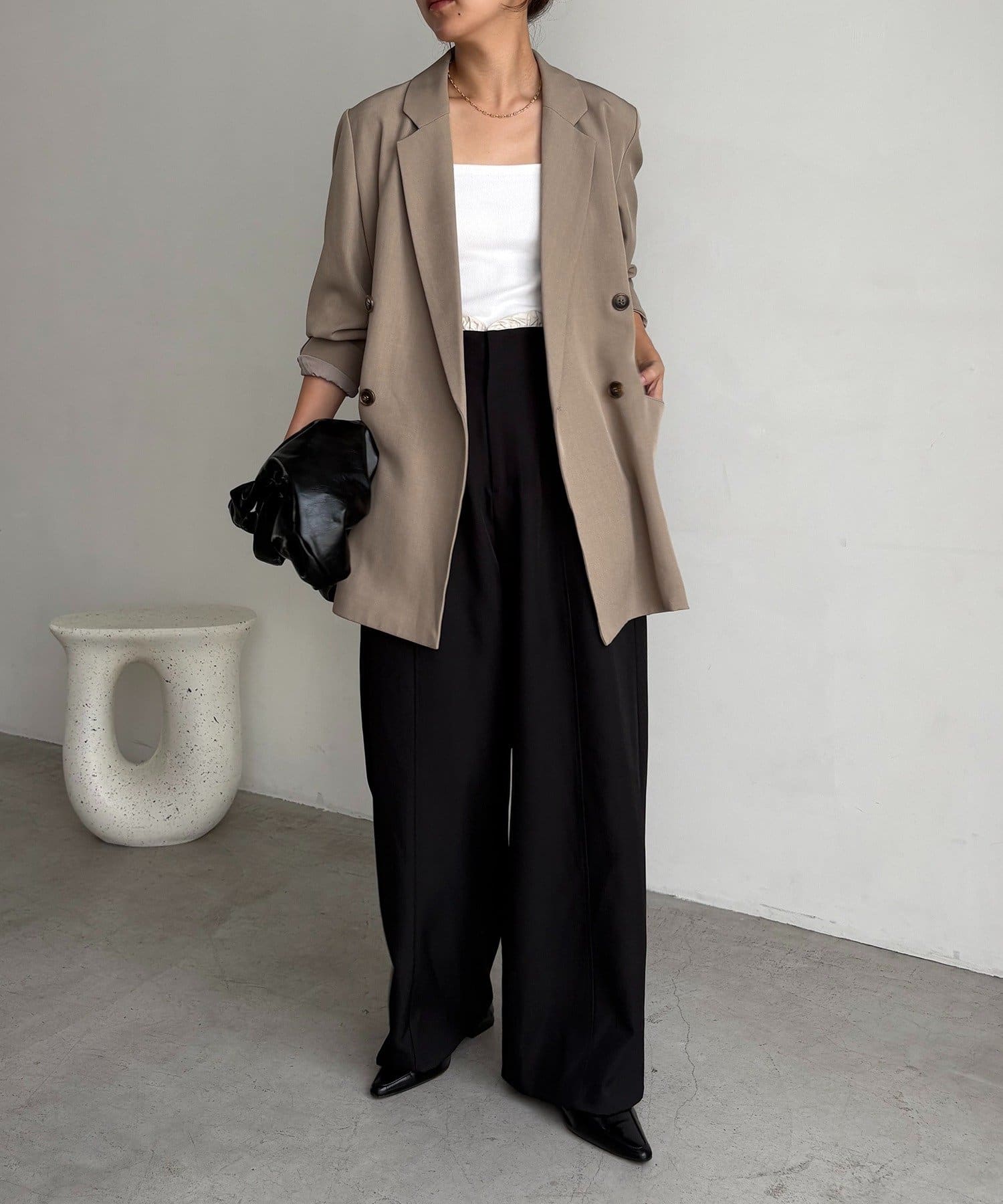 ゆとりのあるサイズ感で、カチッとしすぎず、かっこよくも綺麗めにも着こなせます。