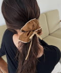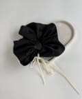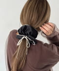 ボリューミーなシュシュに、華奢なリボンとバイカラーがアクセントになったデザイン。