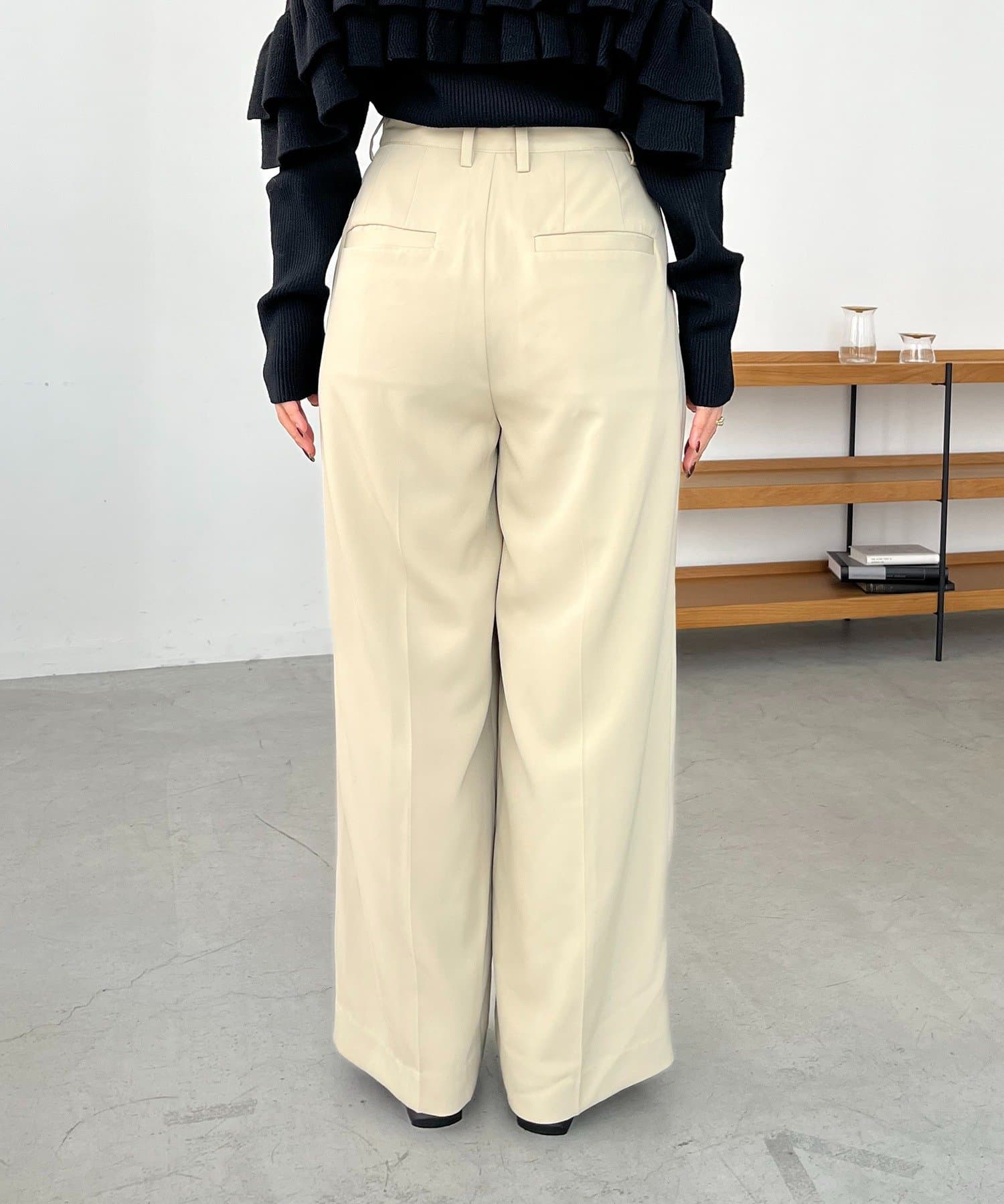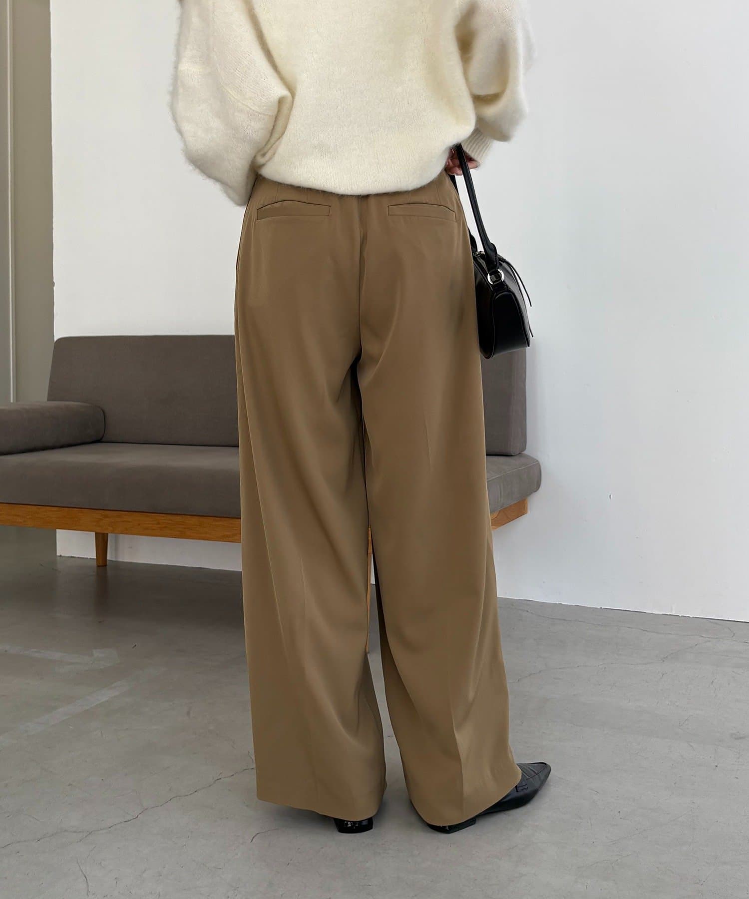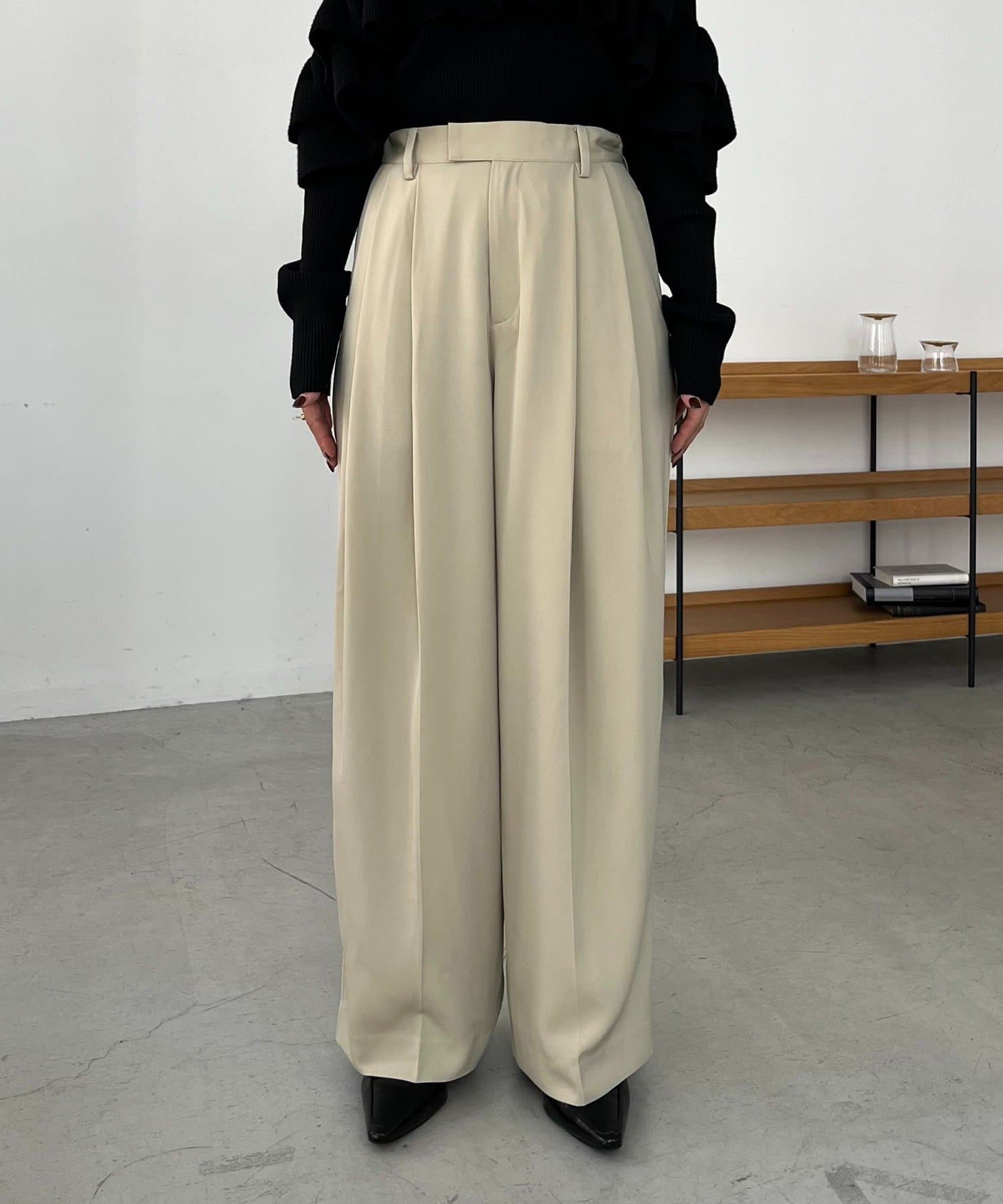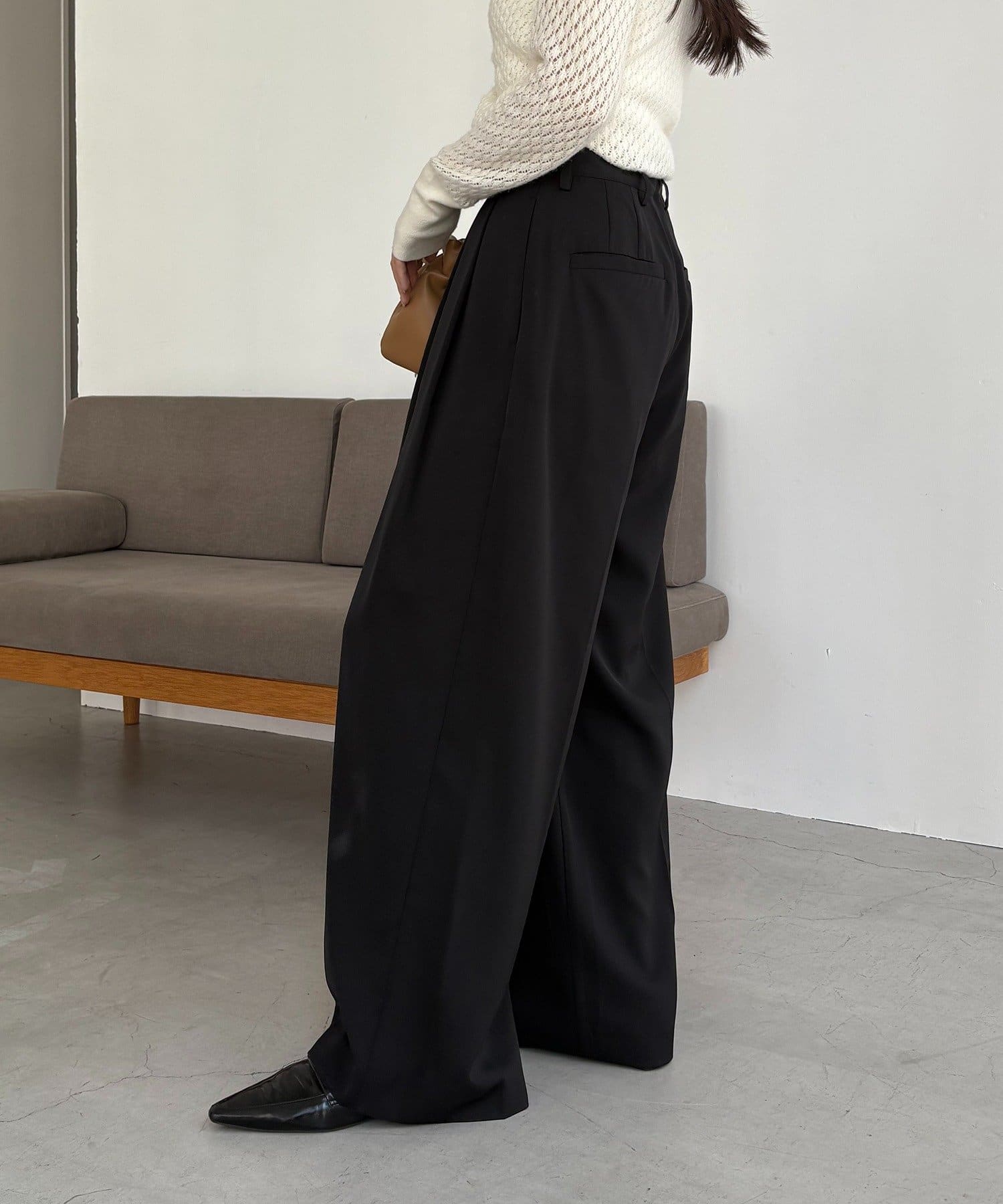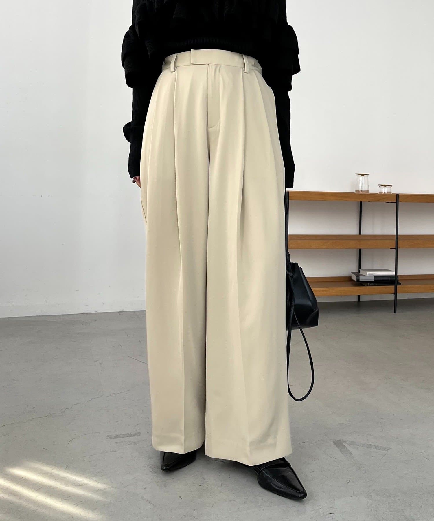 ・レマージュでロングセラーの2タックワイドパンツに比べより落ち感のある生地