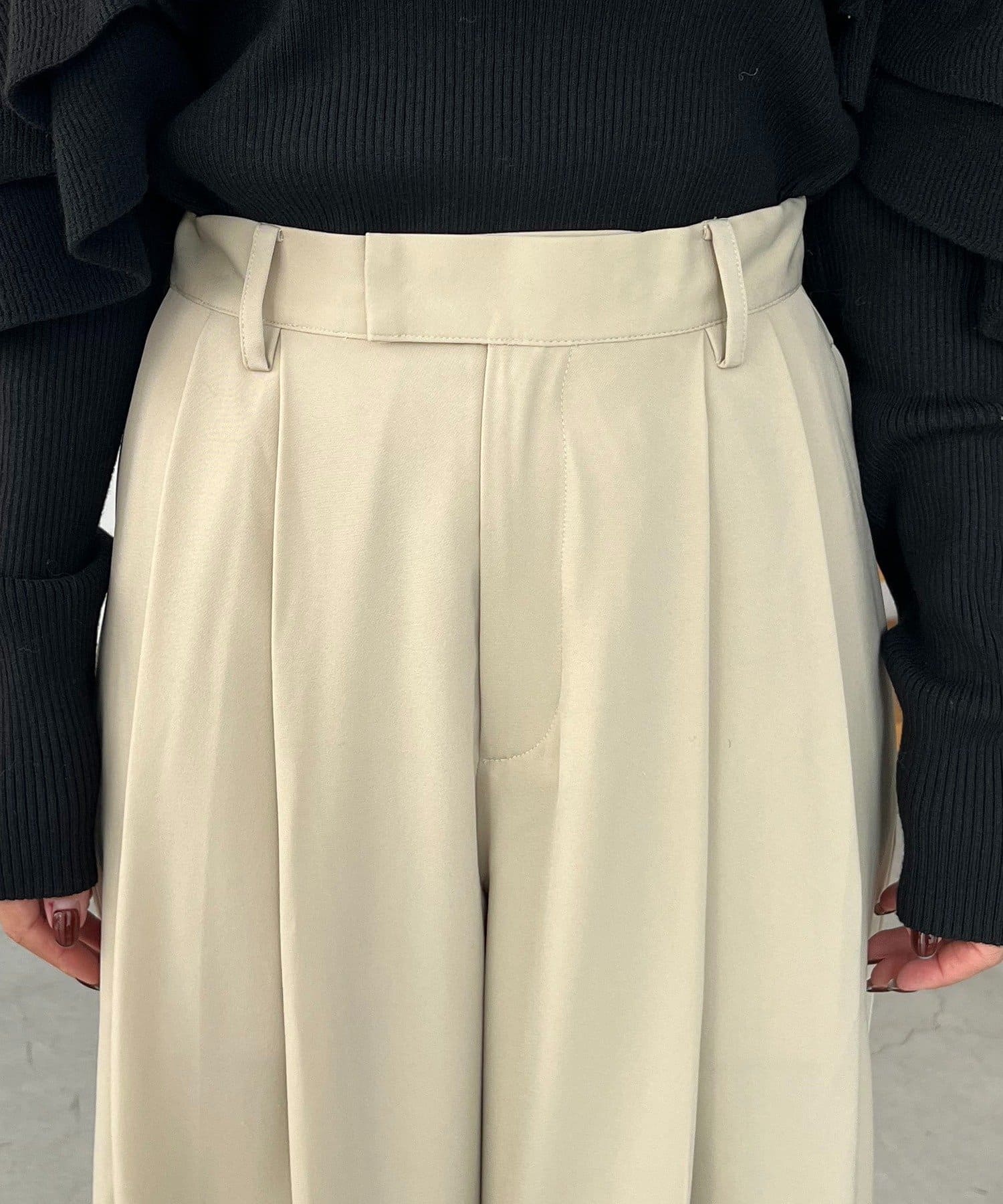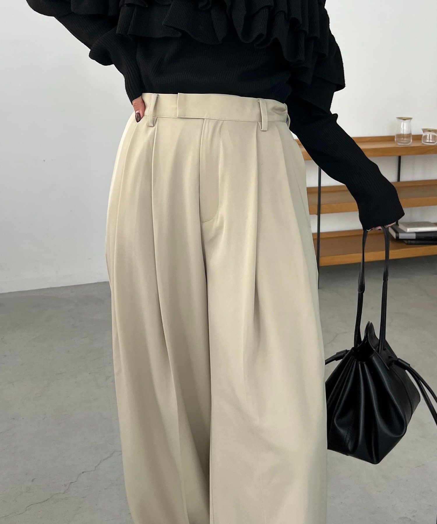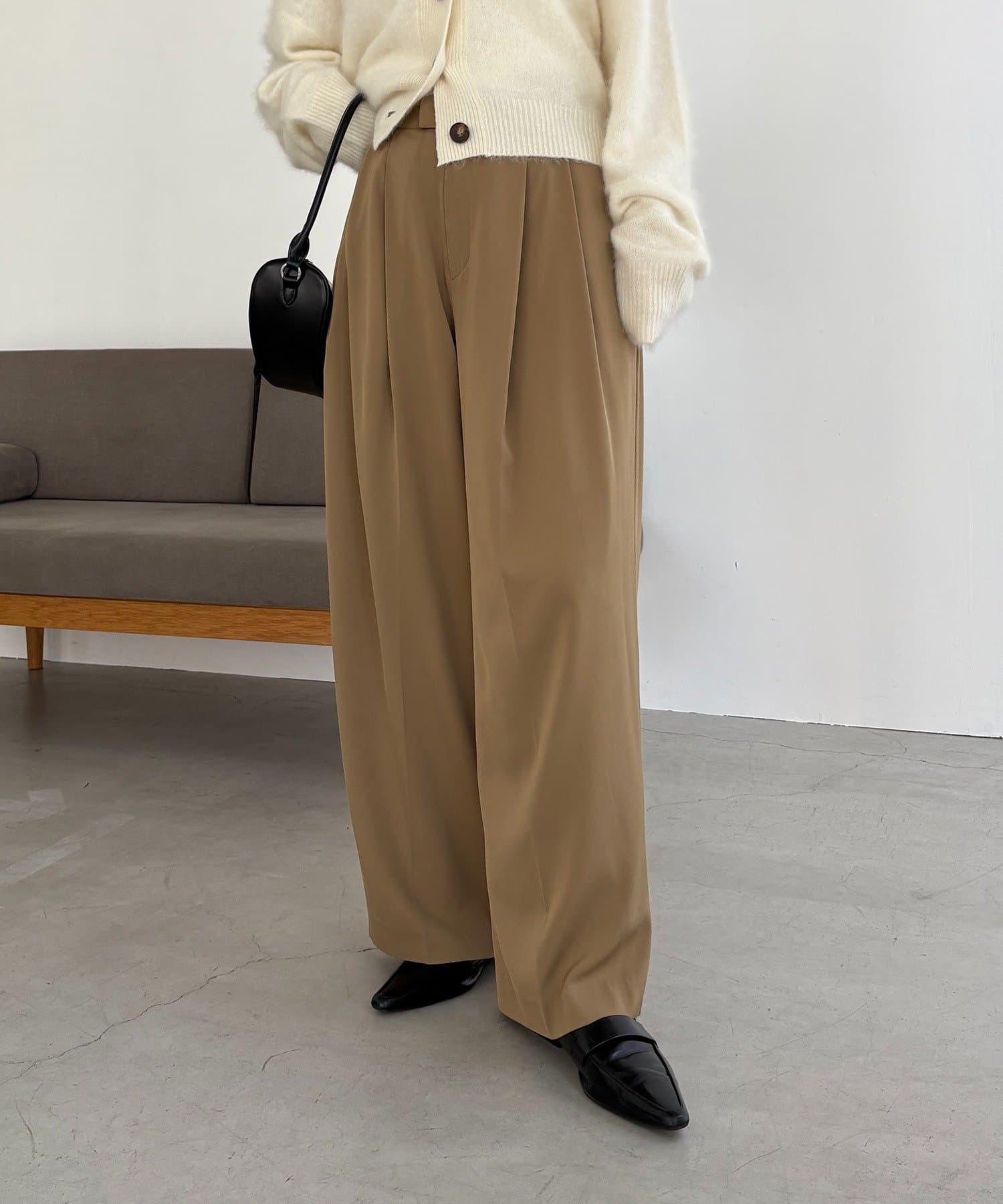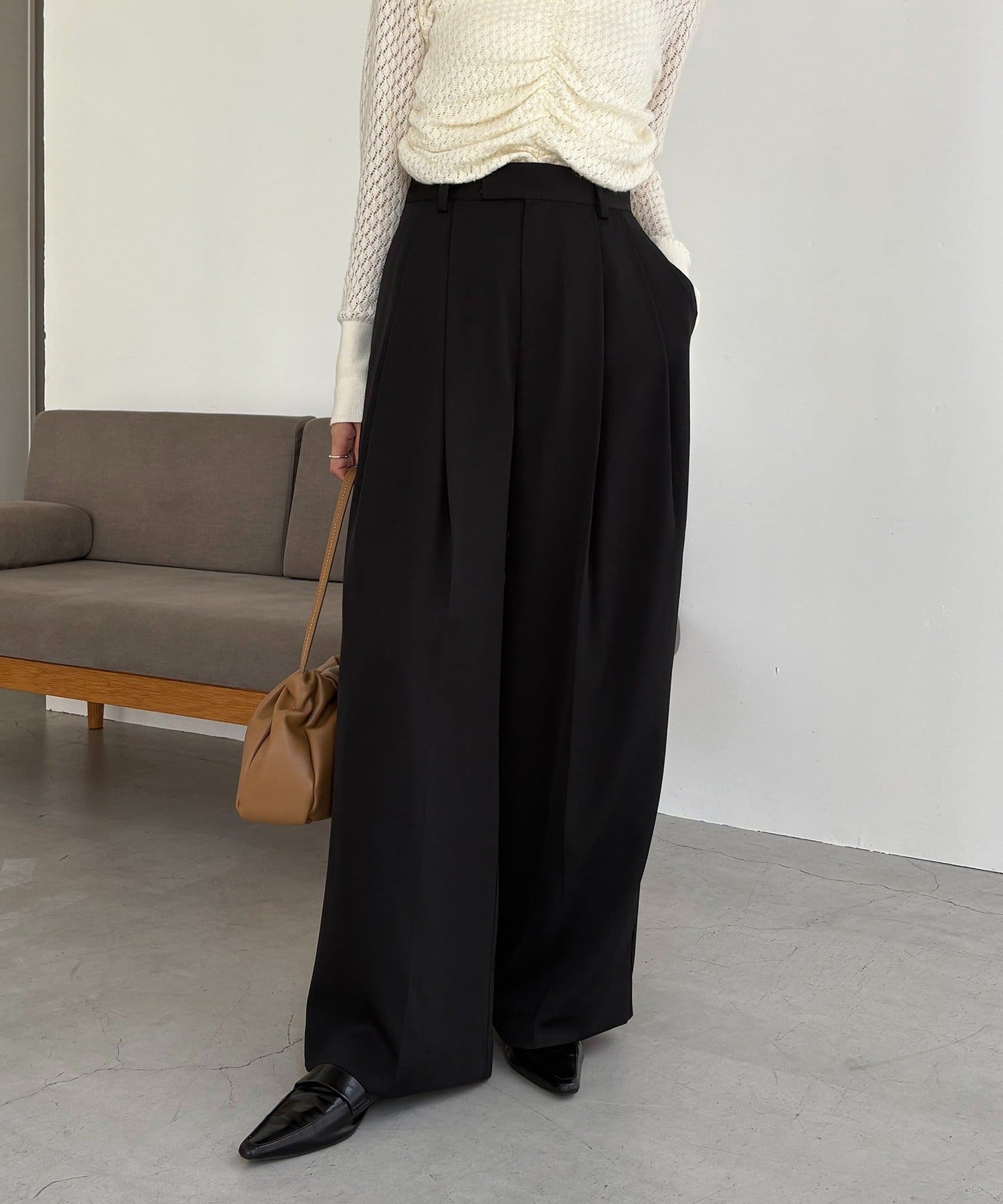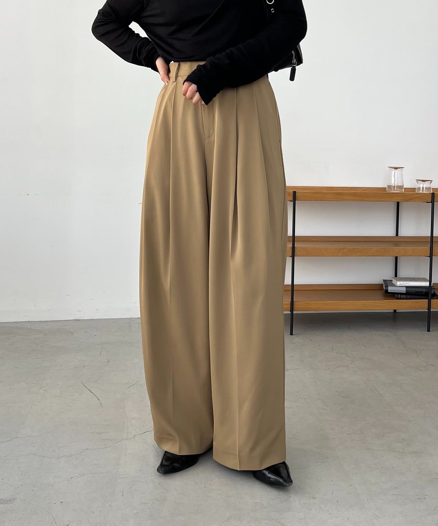 ・レマージュでロングセラーの2タックワイドパンツに比べより落ち感のある生地