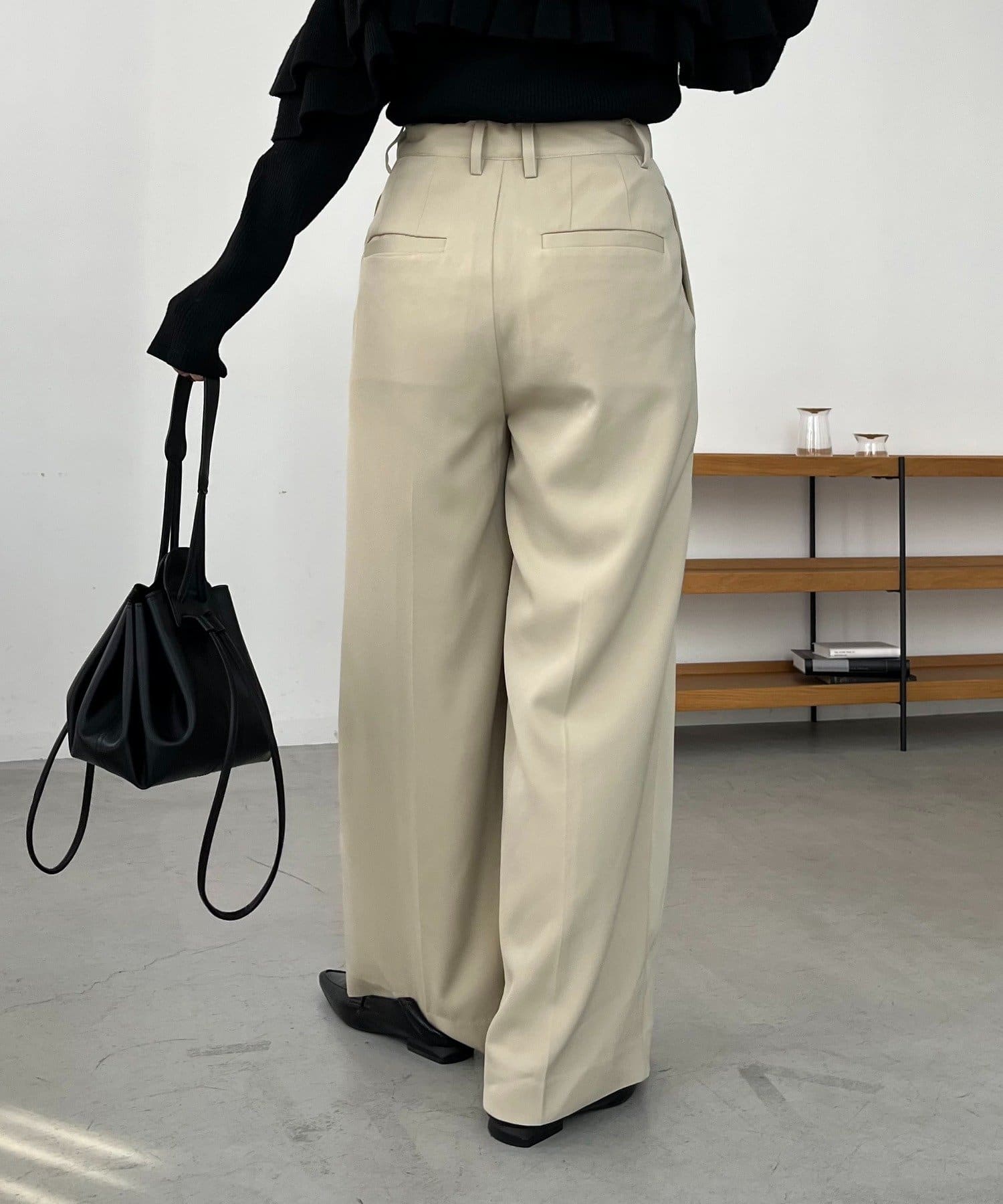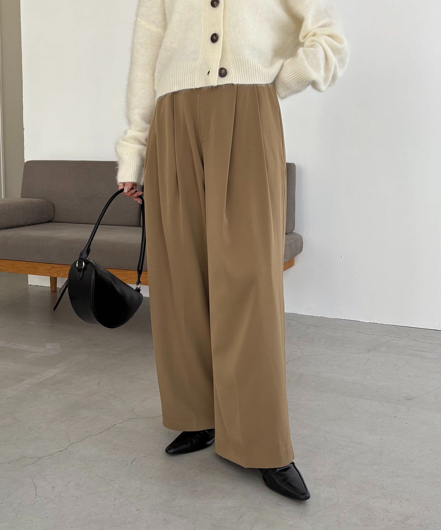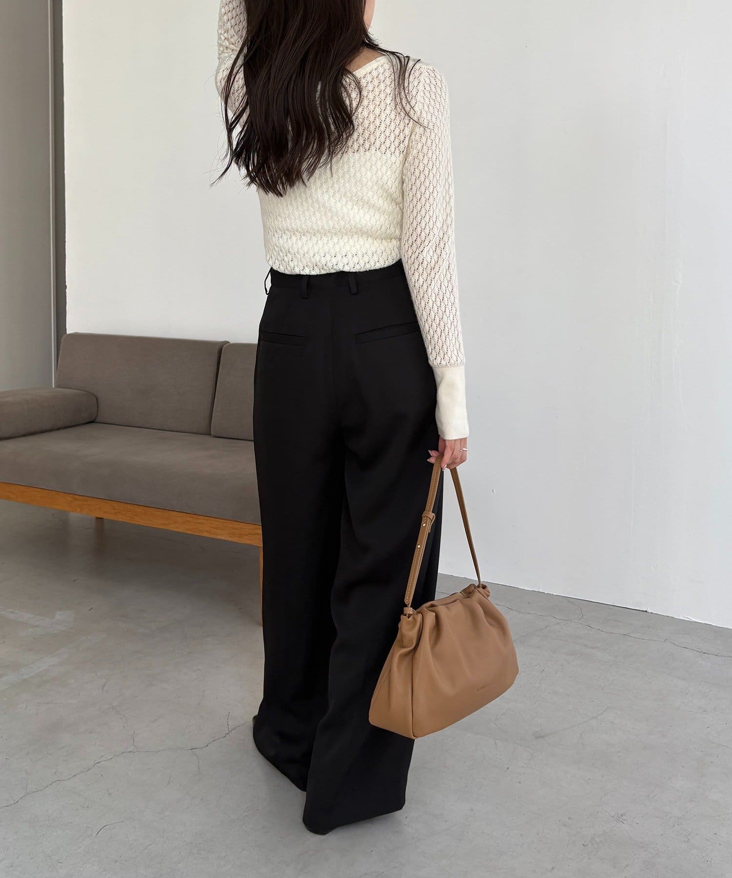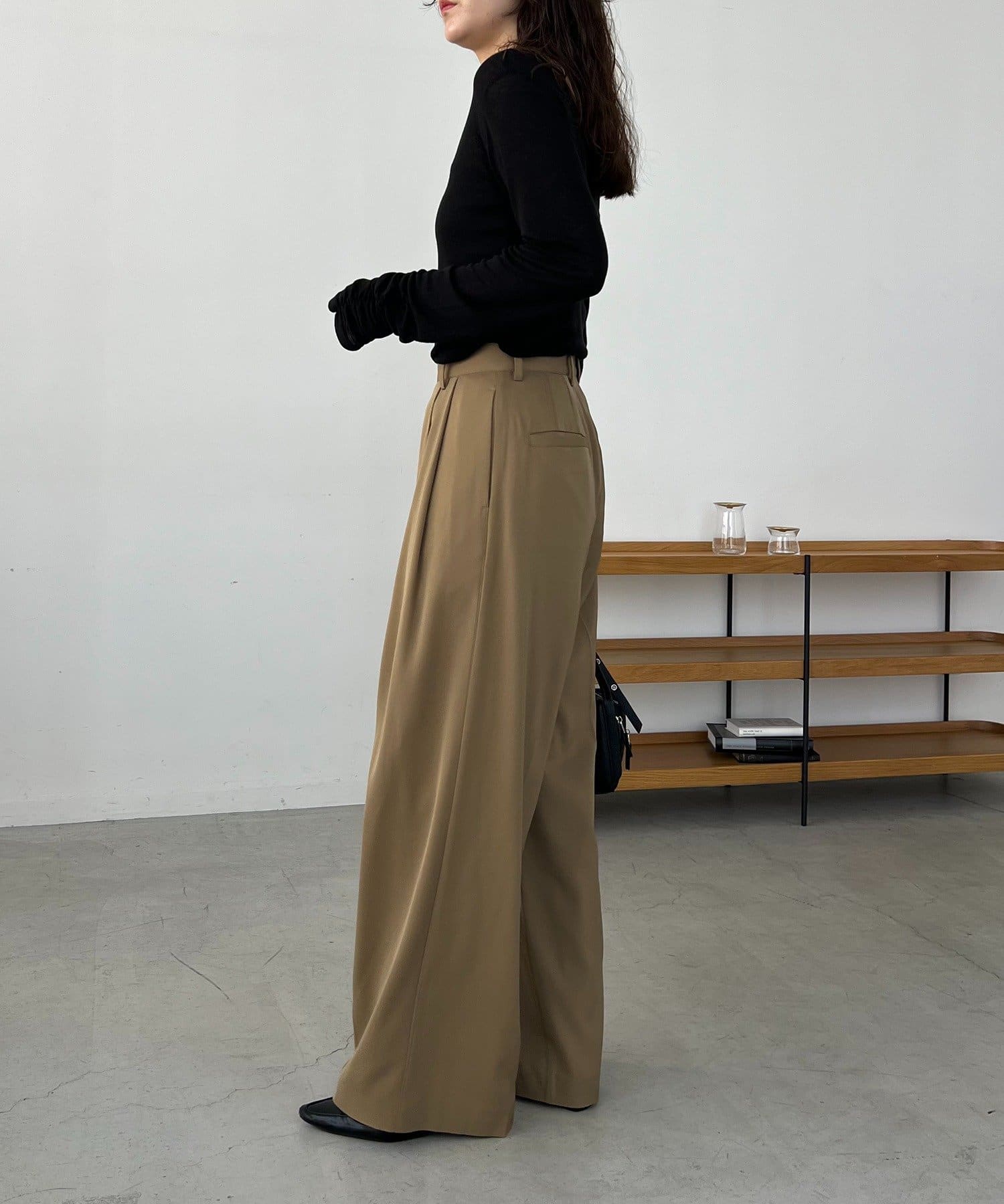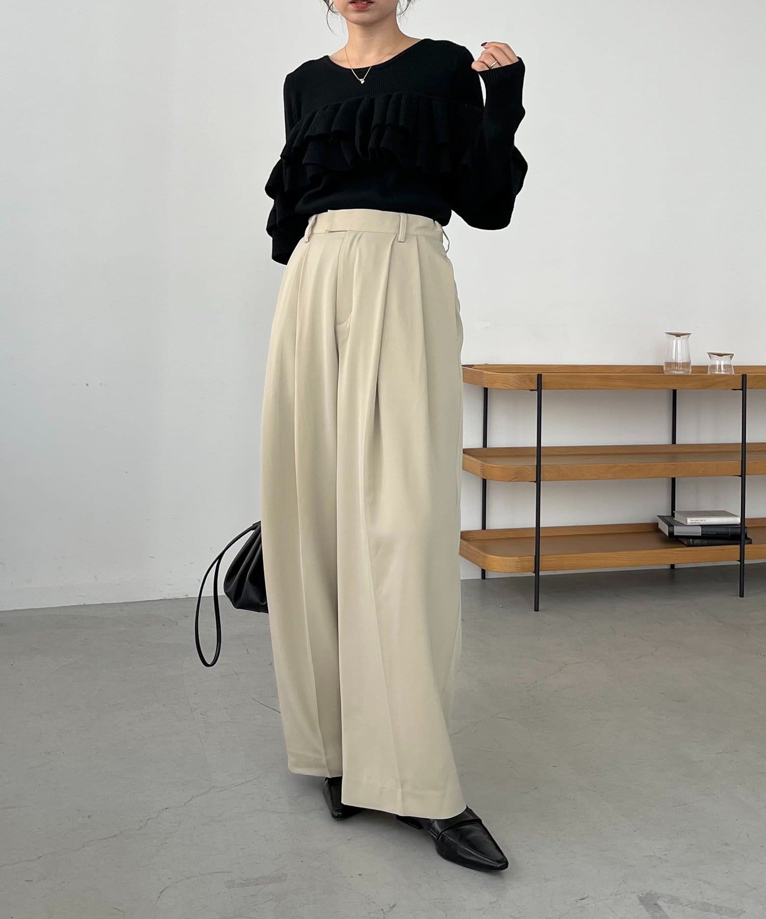 ・レマージュでロングセラーの2タックワイドパンツに比べより落ち感のある生地