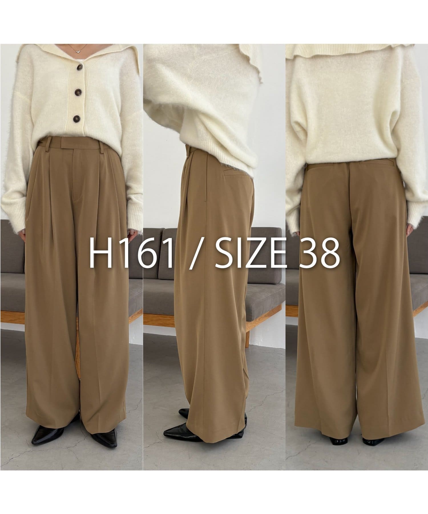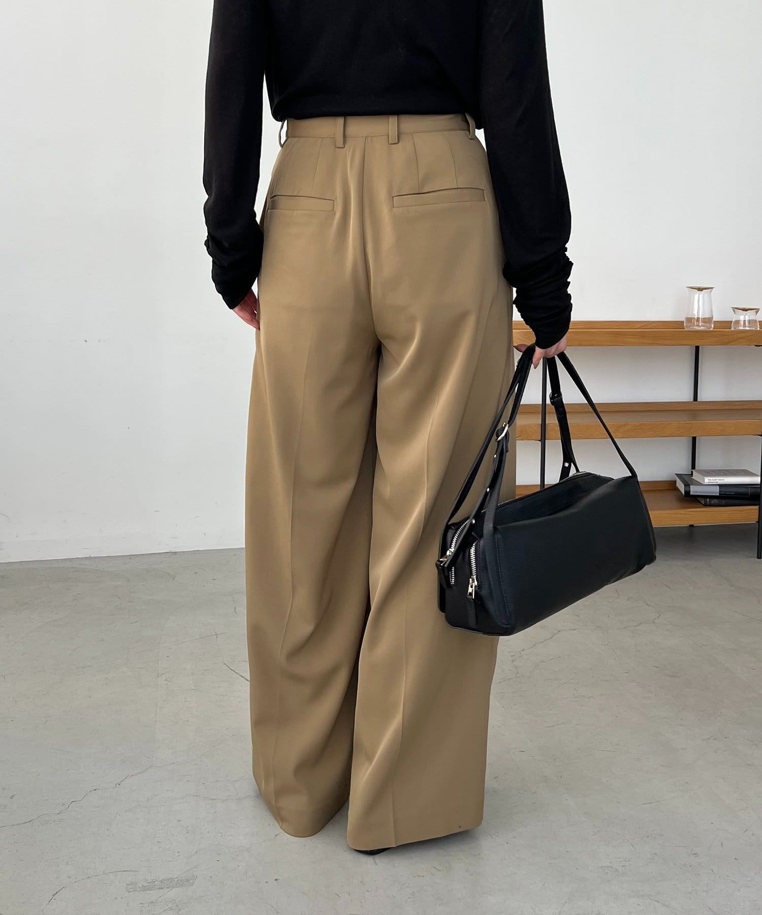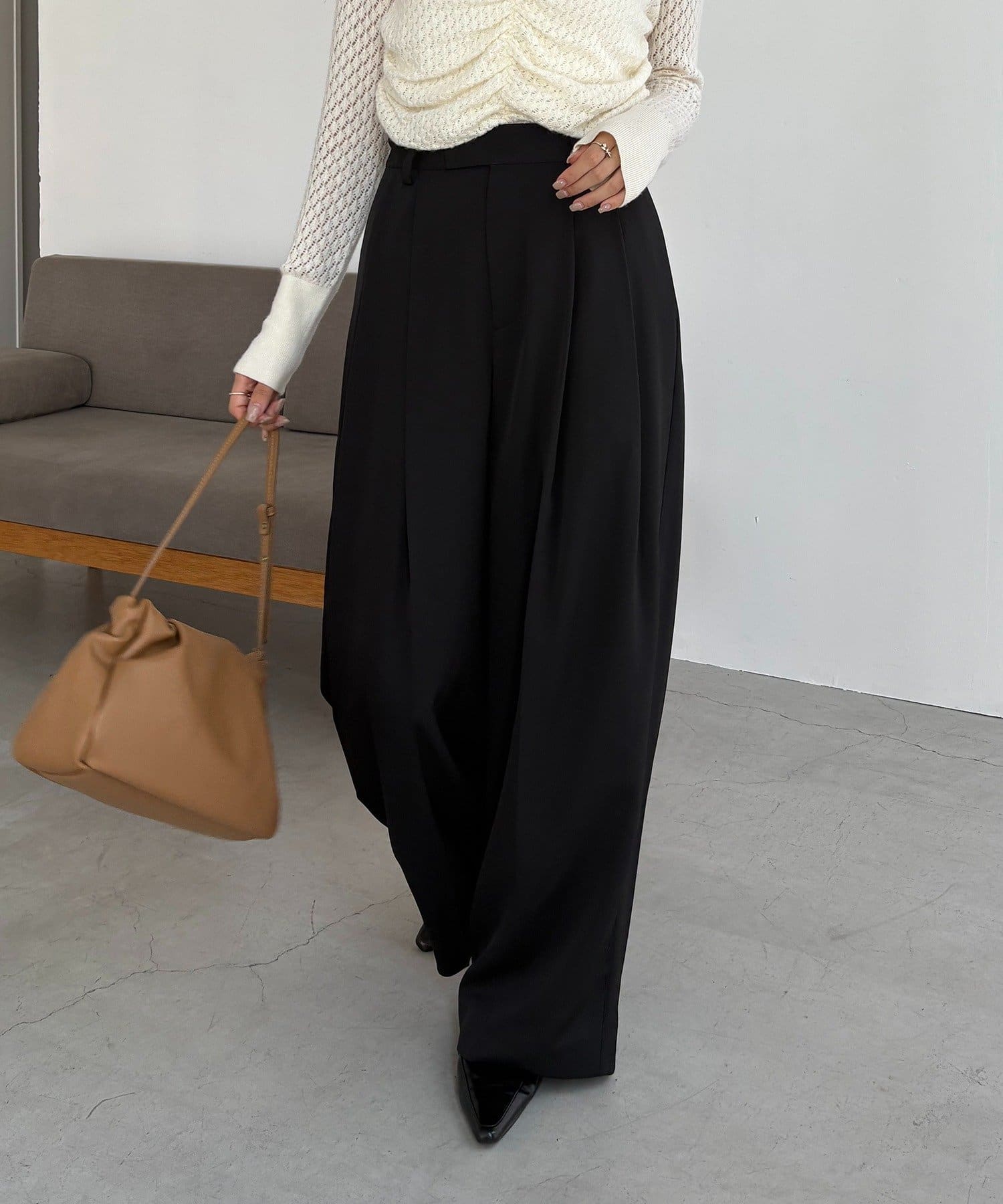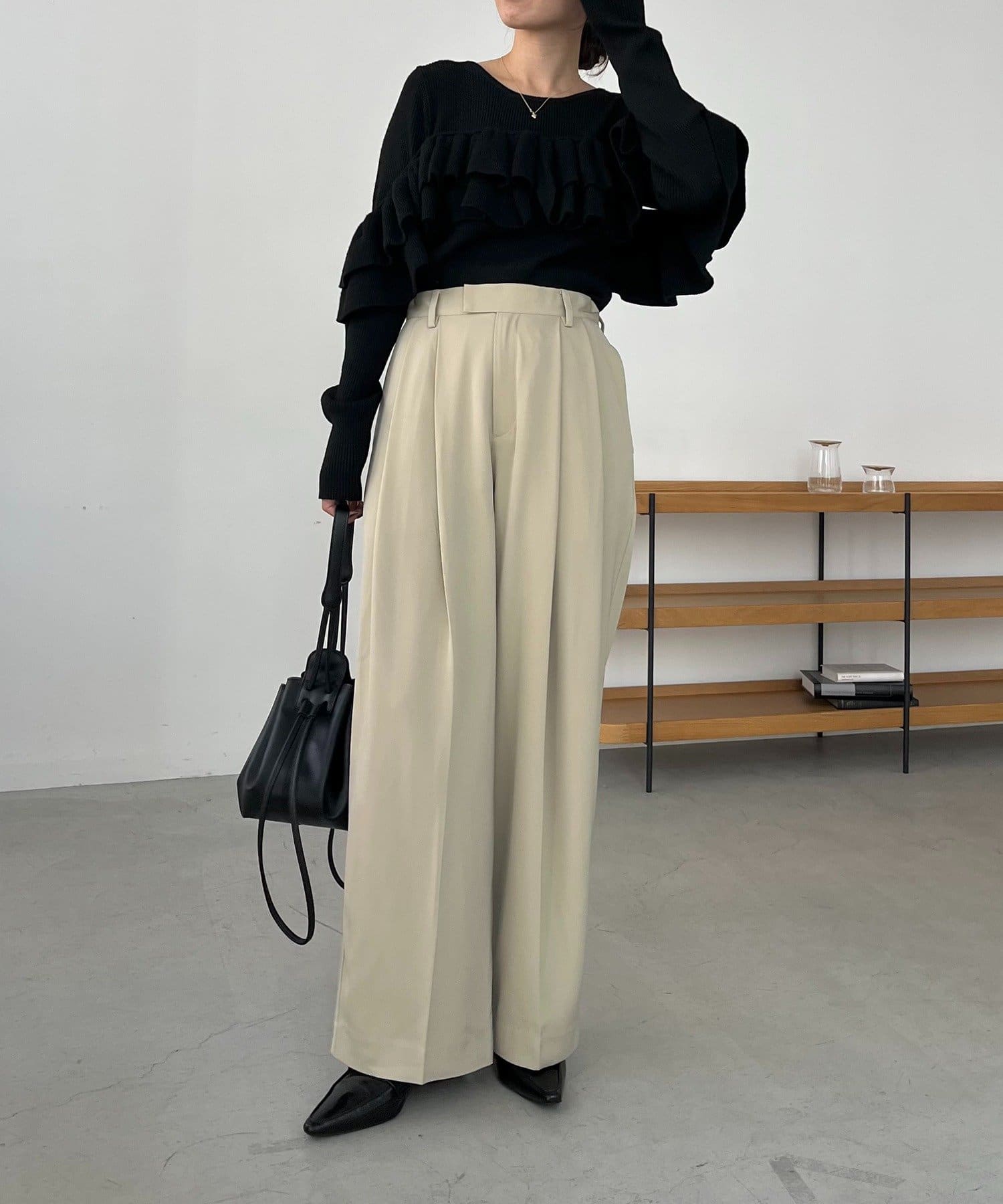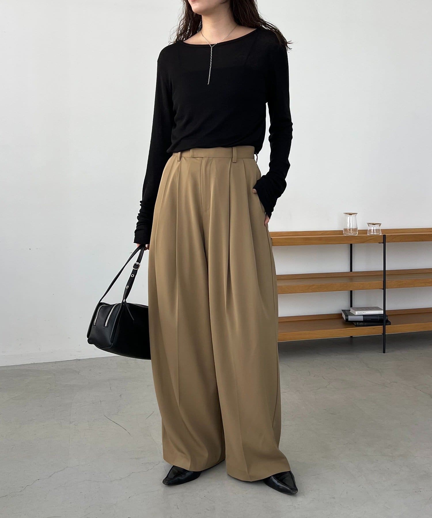 ・レマージュでロングセラーの2タックワイドパンツに比べより落ち感のある生地