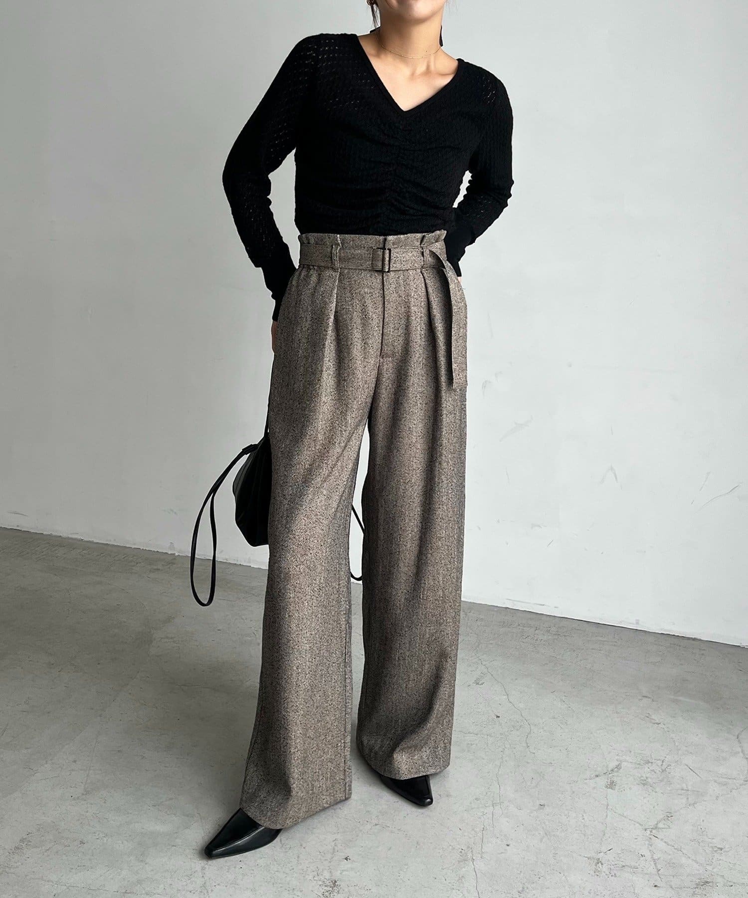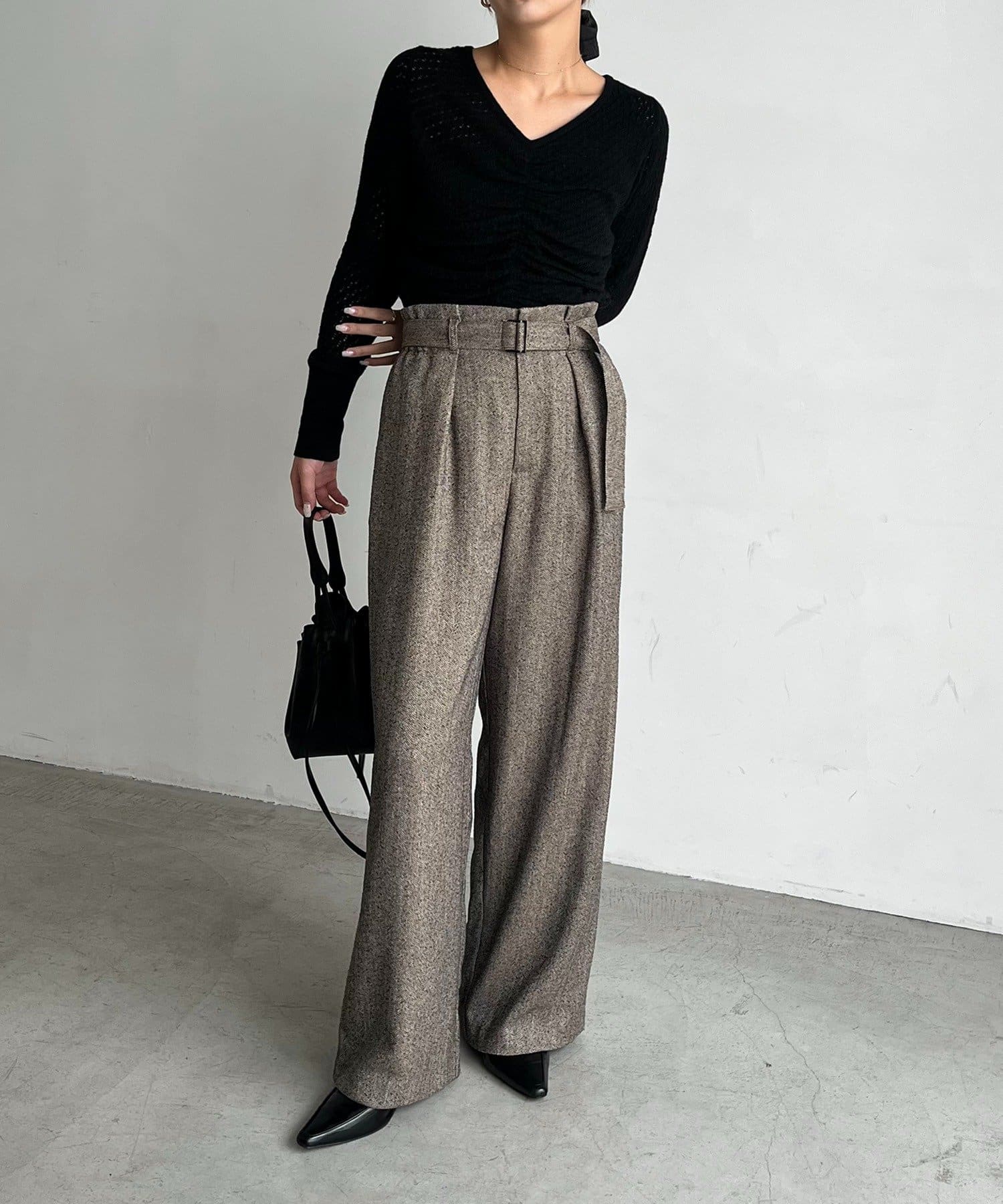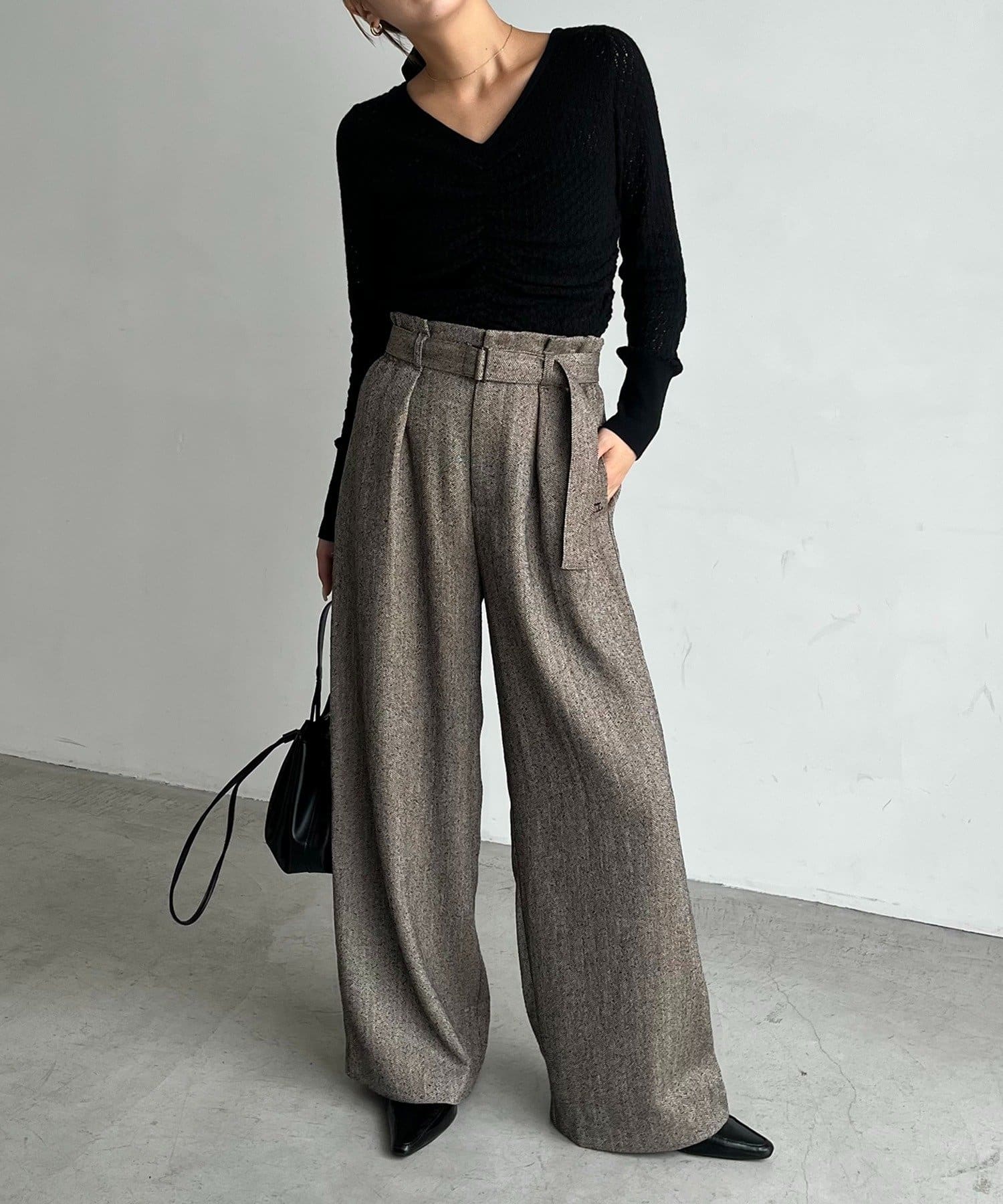 ・ハイウエストのワイドシルエットでメリハリのあるスタイリングに