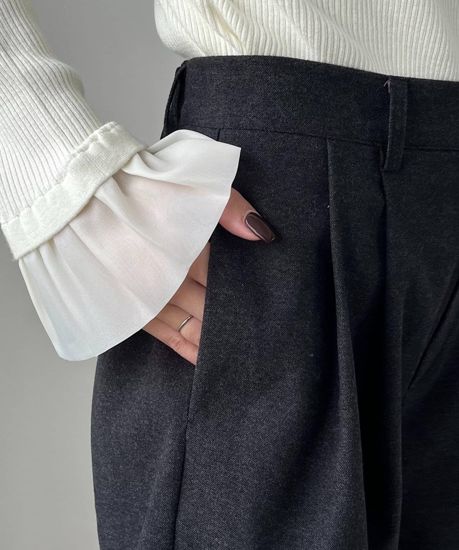 【チャコールグレー着用アイテム②】アウター:Wテーラージャケット、インナー:フレアカフスニット