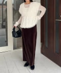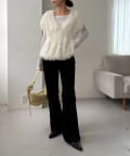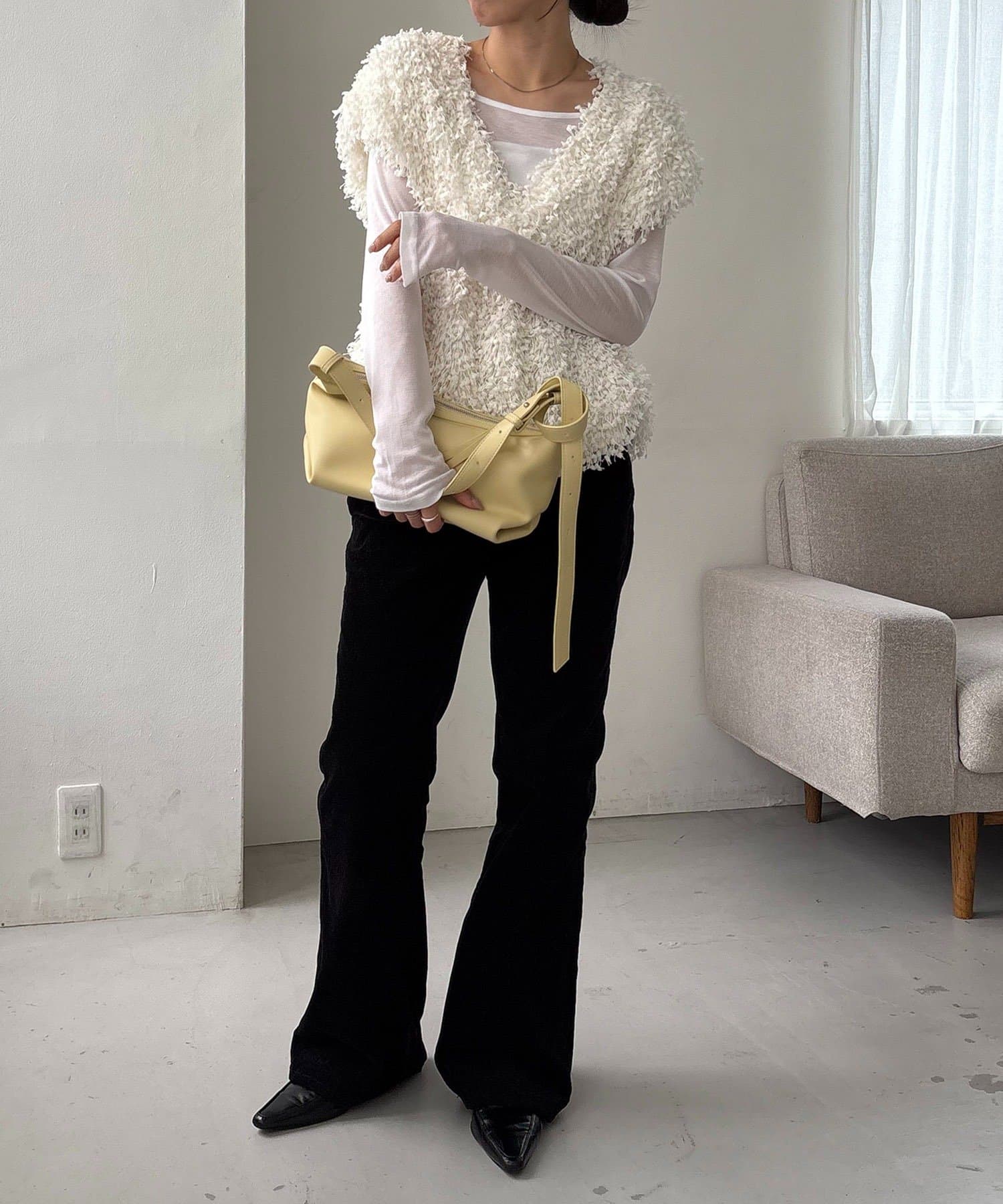 【オフホワイト着用アイテム】インナー:2WAYボートネックシアーロンT、パンツ:コーデュロイフレアパンツ